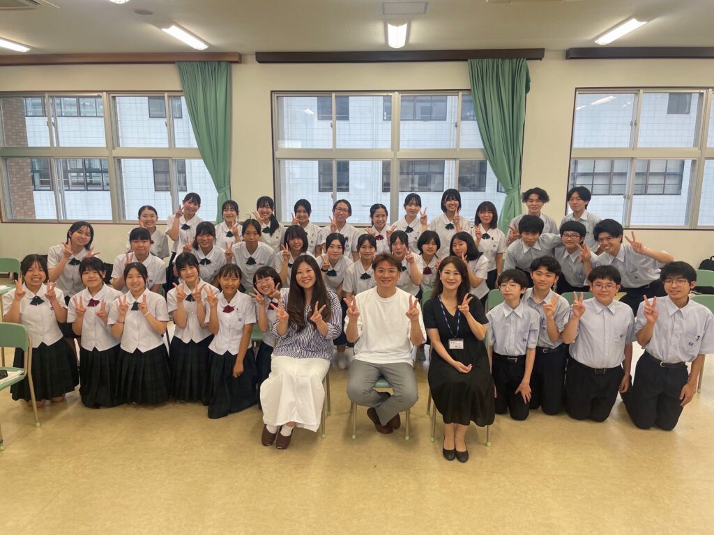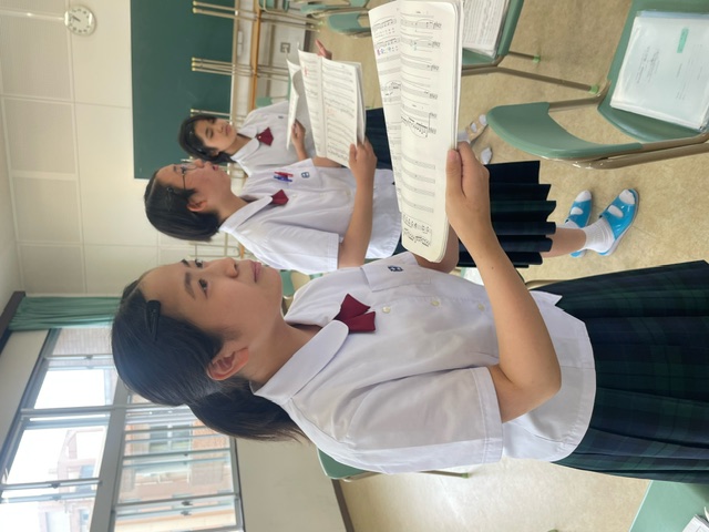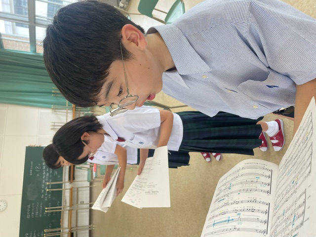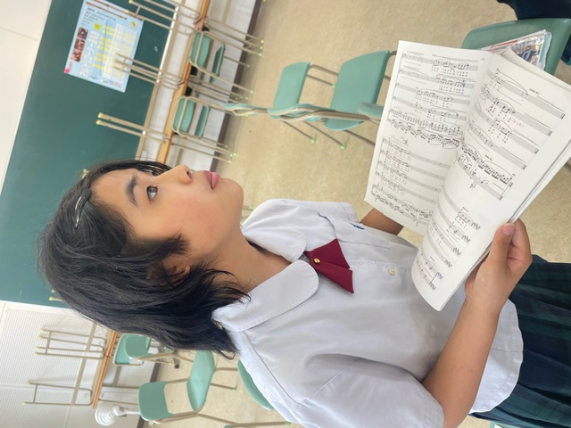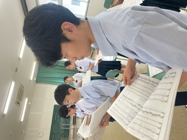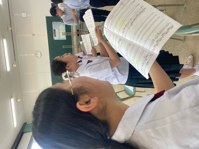 宮崎出身でオペラの殿堂・ウィーン国立歌劇場に鮮烈にデビューし、世界で活躍されているカウンターテナーオペラ歌手の藤木大地さんが合唱部の歌声を聞きに来てくださいました。藤木大地さんは平成29年に文化発表会でコンサートをしてくださり、そこから鵬翔中学校合唱部を自身がプロデュースされるコンサートに出演させてくださったりと、いつも気にかけてくださっています。合唱部員の憧れの存在の藤木さんを目の前にし、緊張しながら、瞳をキラキラさせながら歌っていました。