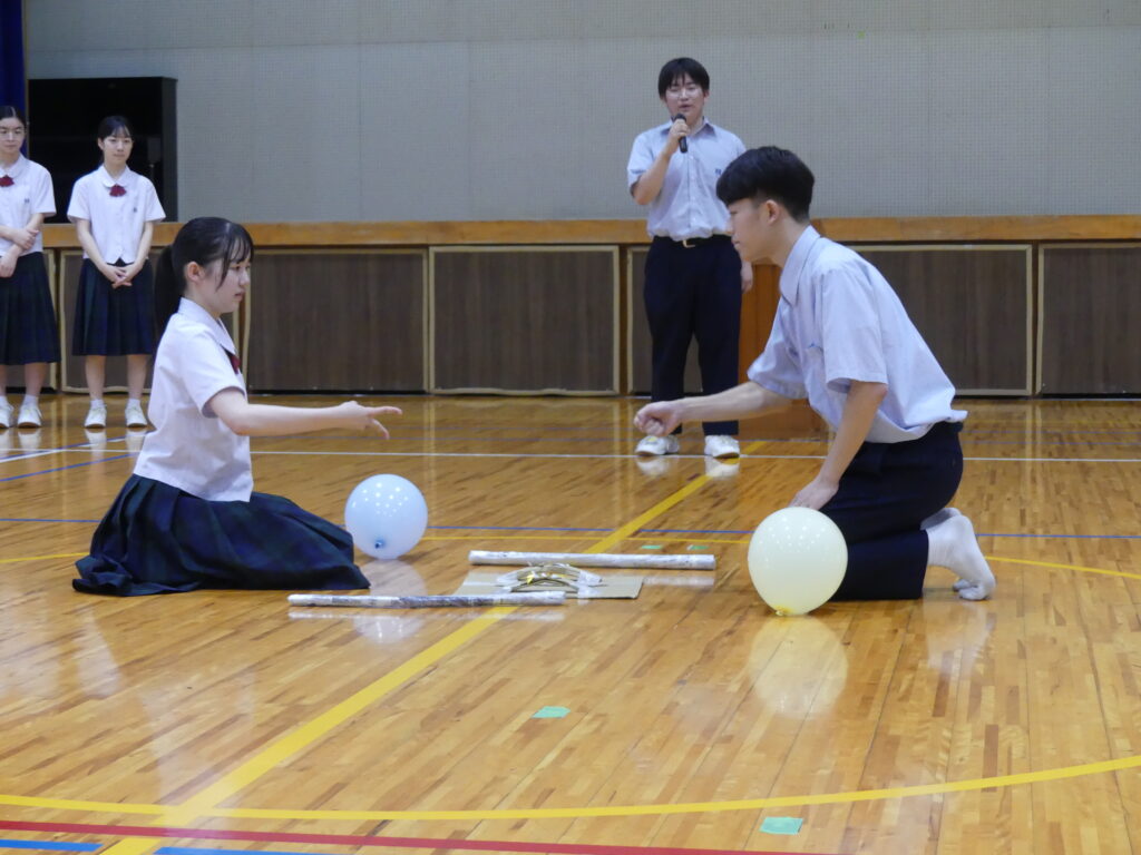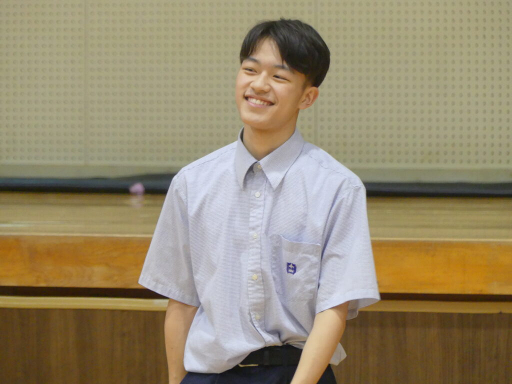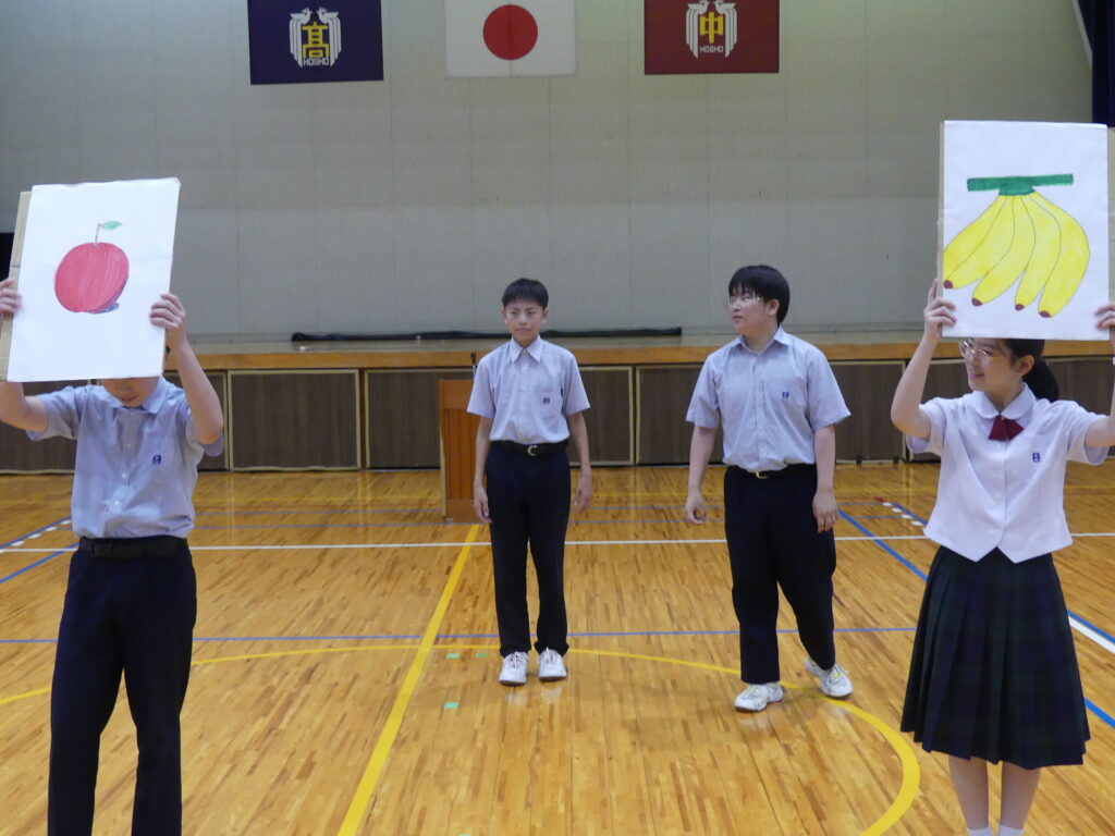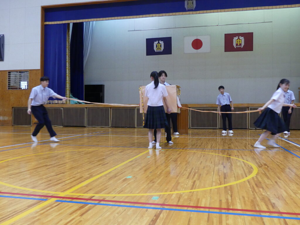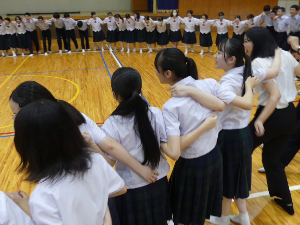 昨日7月18日の1学期終業式・中学部集会のあと、中学部全生徒及び職員が体育館に集まり、体育大会に向けての結団式が行われました。まず生徒会による団編成を決定するイベントがあり、その後、各団にて結団式が行われました。今年度は、赤団(J3A・J2A・J1A、団顧問:福永)、白団(J3B・J2B・J1B、団顧問:吉田亮)という編成になりました。各団ともに、団長・副団長・リーダー・団顧問のあいさつ等のあと、優勝に向けて一致団結して頑張ろうという気合入れで盛り上がりを見せていました。