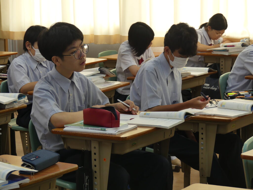 各教科の授業を受けて、各教科から出された課題に、自学の時間などを活用して真剣に取り組んでいました。また、放課後は文化発表会や体育大会に向けた練習や準備を、3年生を中心として、全力投球で取り組んでいます。