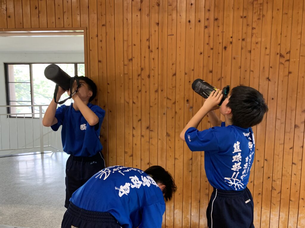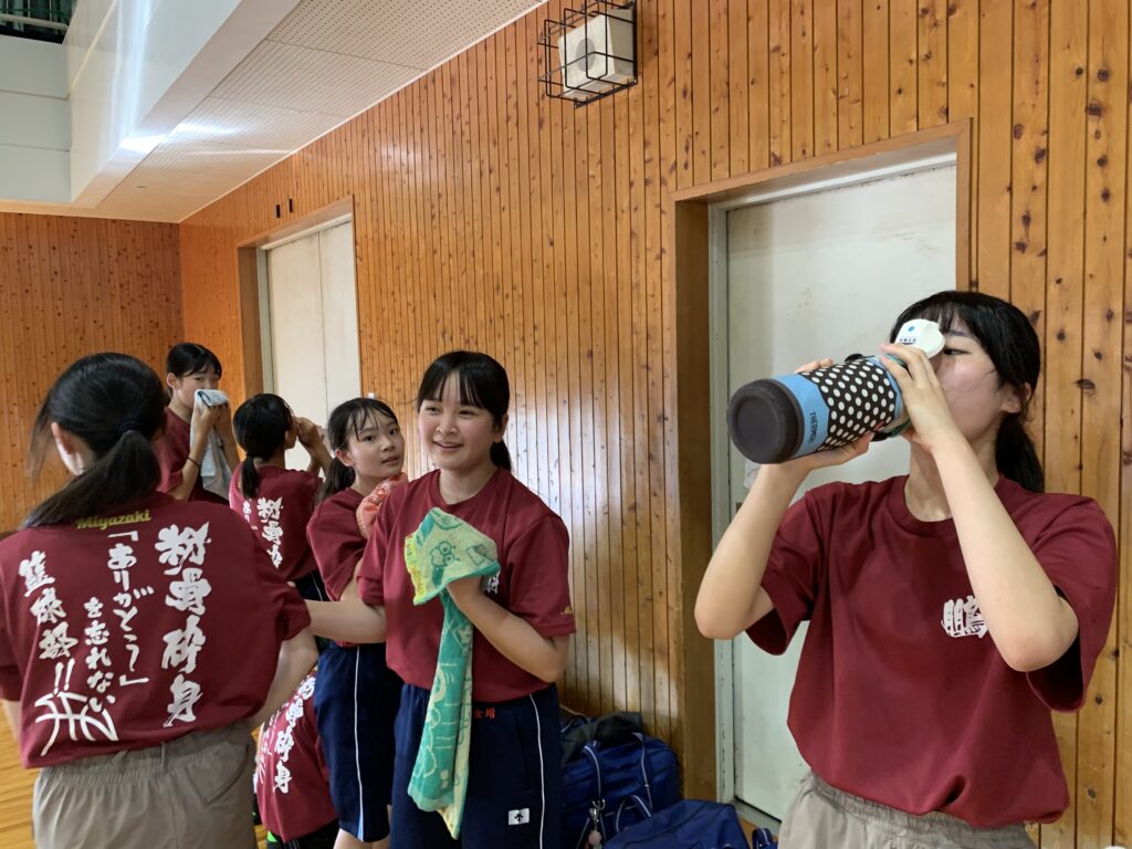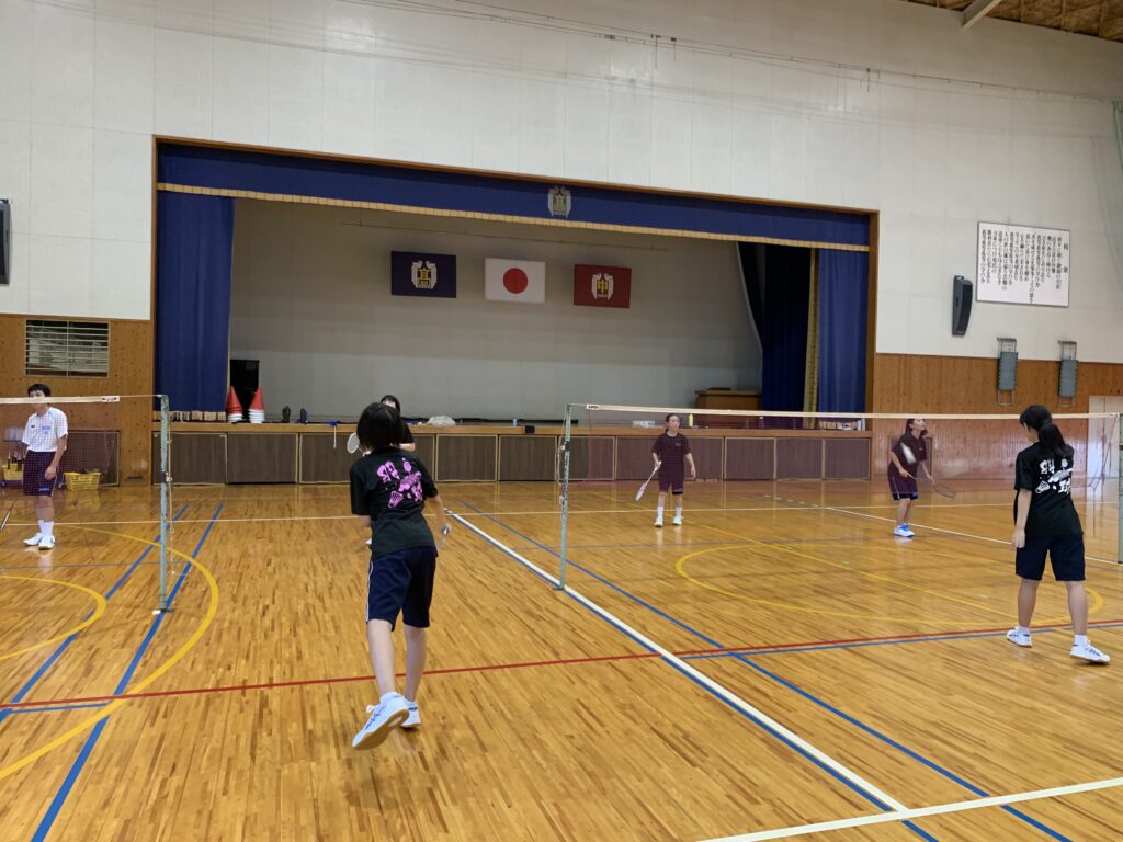 夏期課外7日目です。夏期課外中もバドミントン部とバスケ部は体育館で練習に励んでいます。両部活とも、準備運動アップを入念に行い、こまめに水分補給をしながら練習に取り組んでいました。