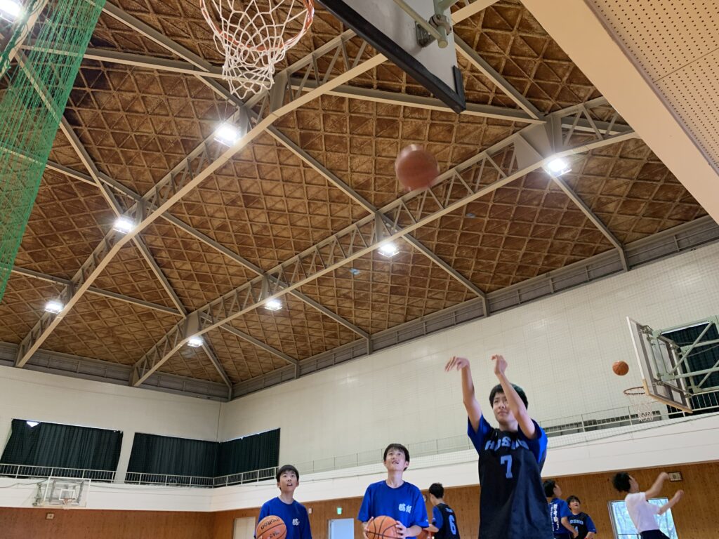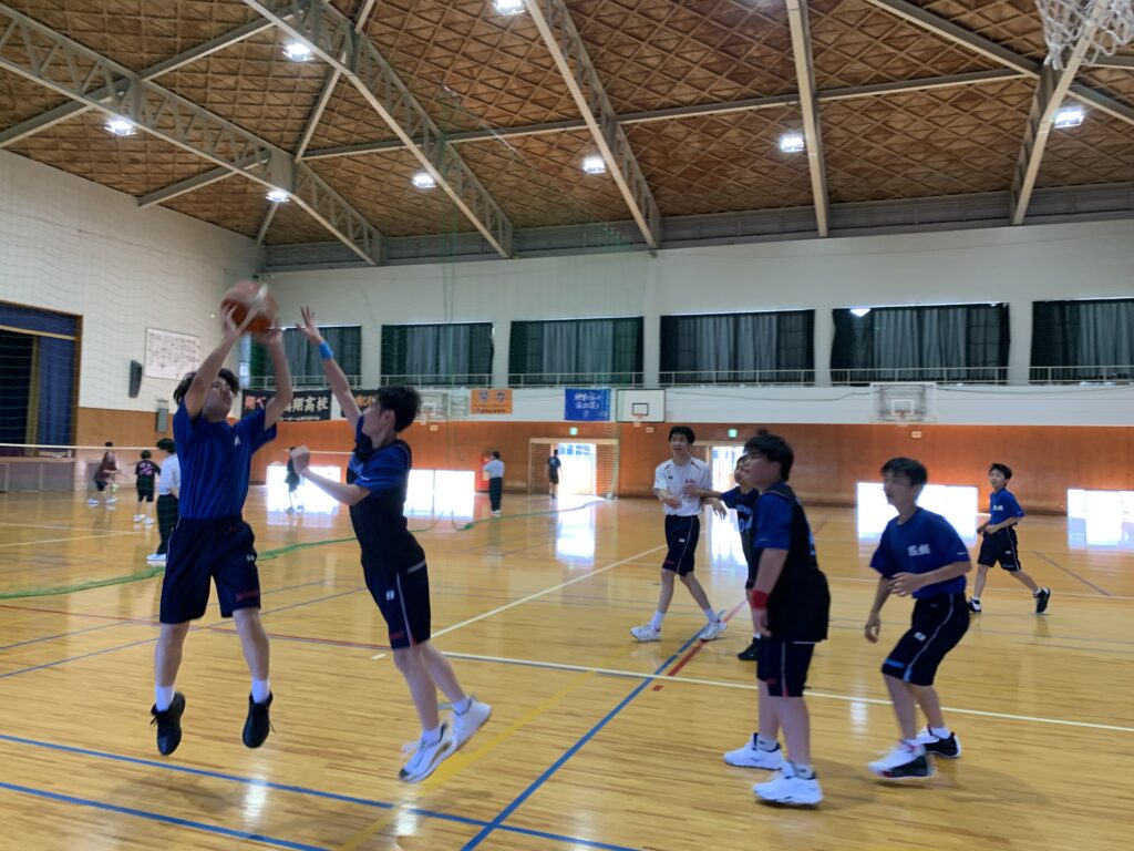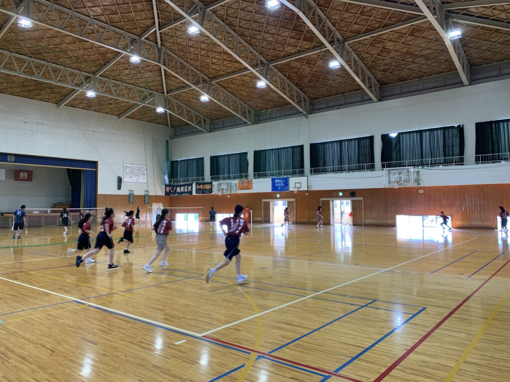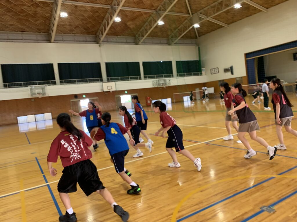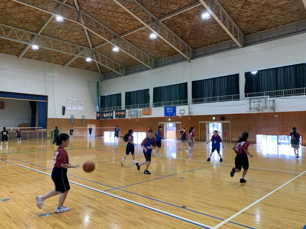 バドミントン部は、顧問の宮﨑先生より、基本ステップ(足の使い方)を教わっていました。バスケ部は、3日に予定している練習試合に向けて、ゲーム形式で実践練習をしていました。