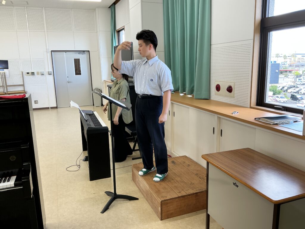 友納先生の指導の下、完成に向けて全員で曲と向き合っていました。