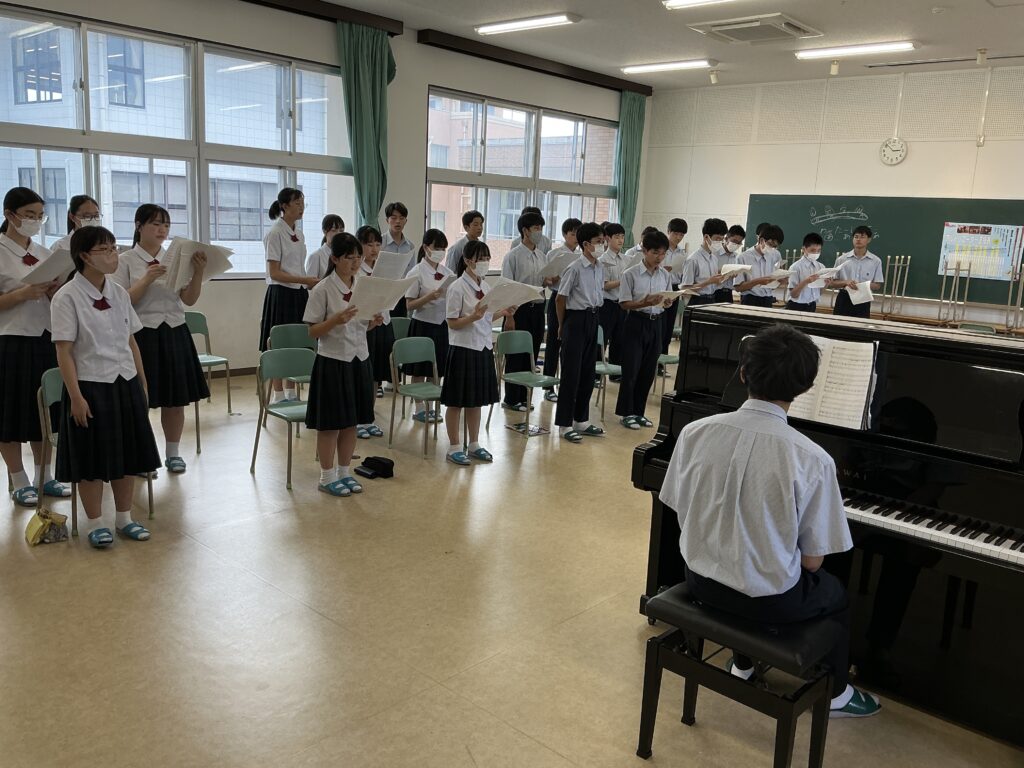 この自学の時間を利用して、各クラスが順番で文化発表会の合唱練習を行っています。