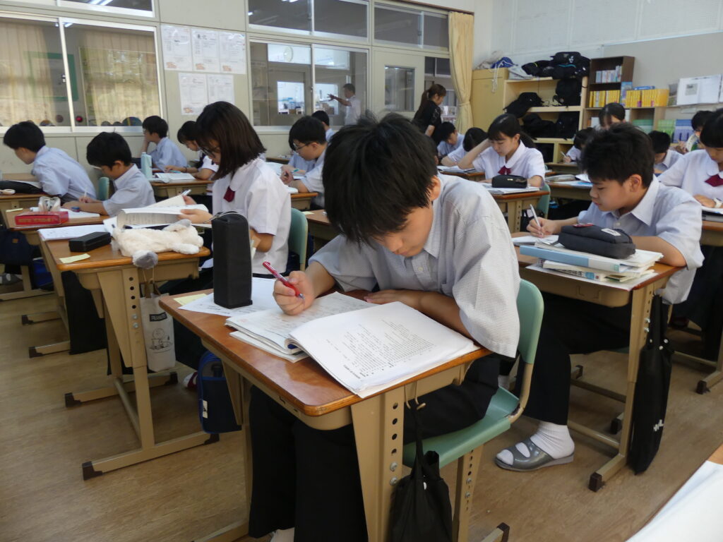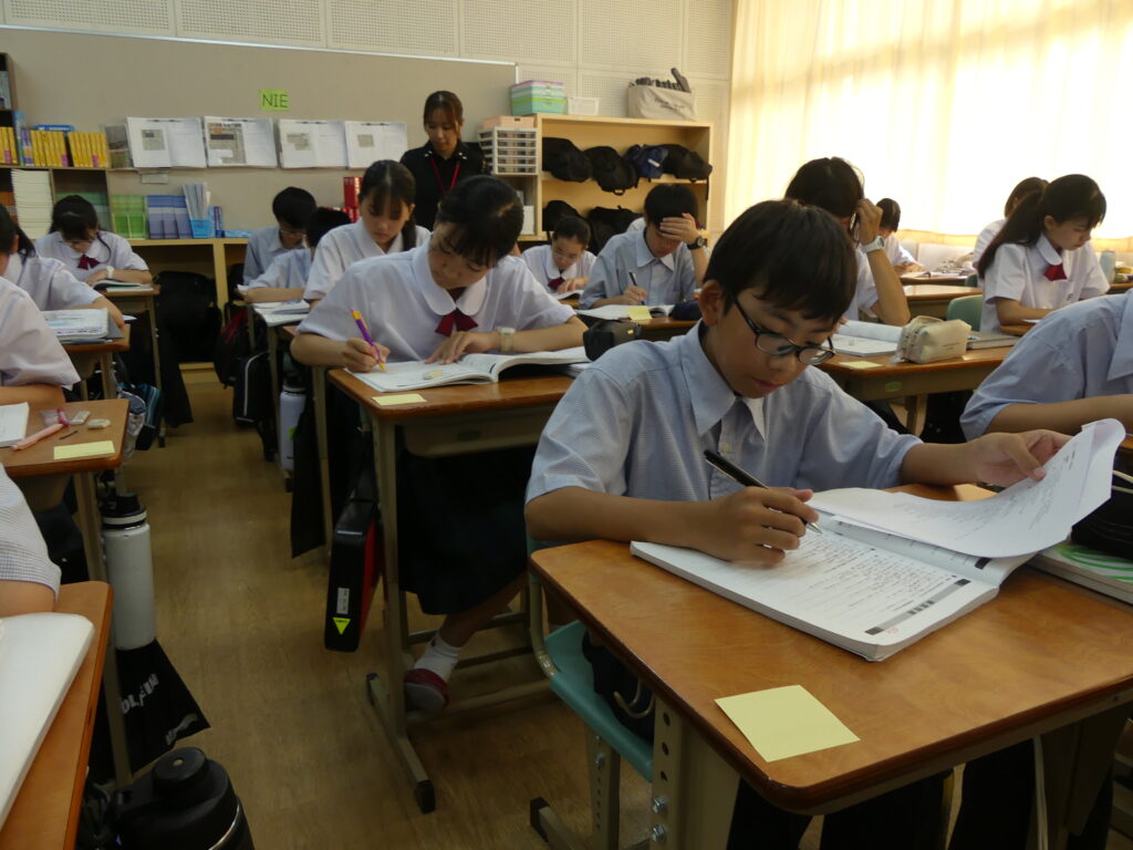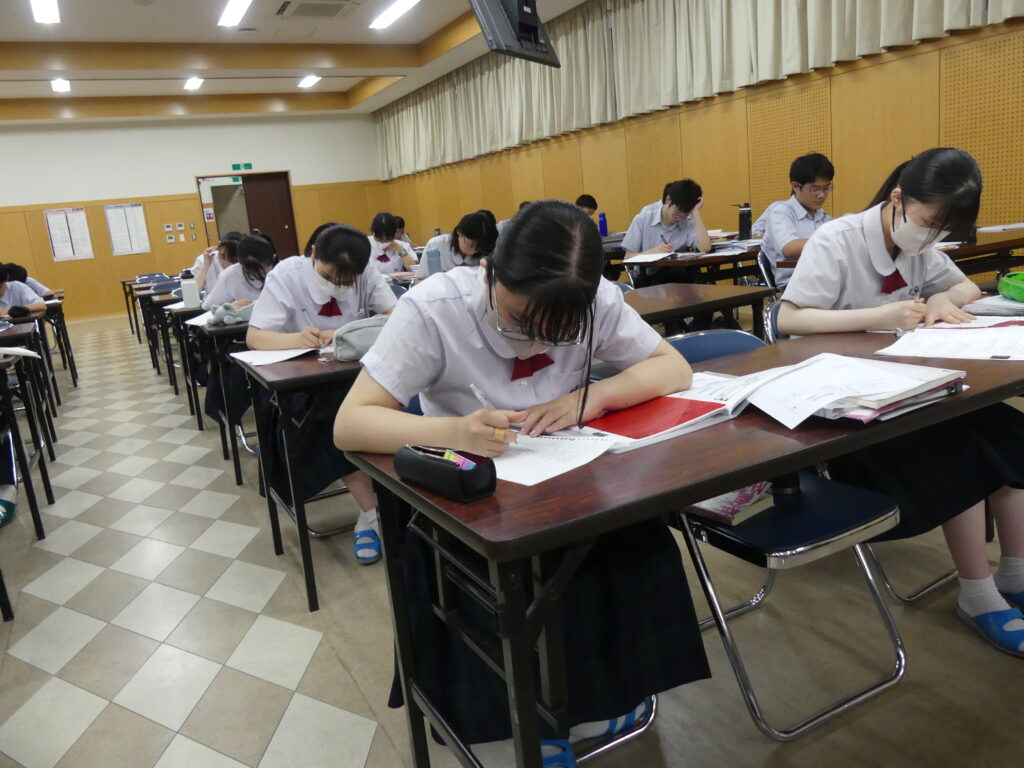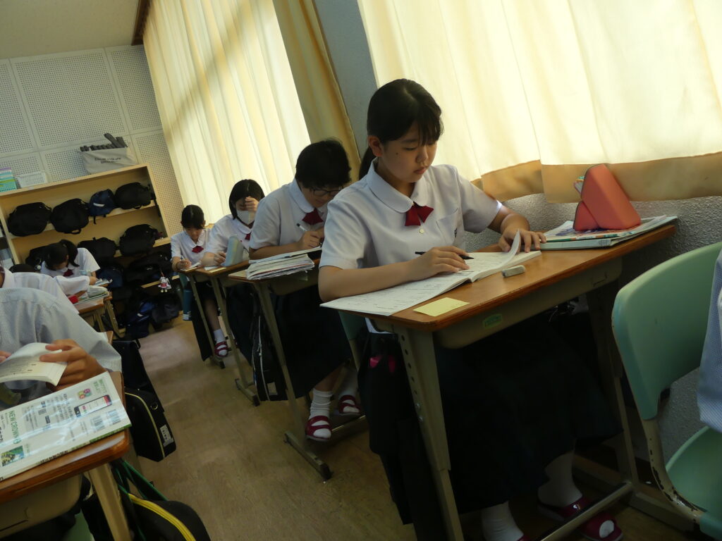 今日から夏の恒例行事、チャレンジ3が3日間行われます。このチャレンジ3は自分で課題を見つけ、計画を立てて1限目から7限目まで自学に取り組みます。そして、わからない問題にぶつかった時は、質問シートに質問をすると、各教科の先生から説明や答えが後で返ってきます。生徒たちは集中して真剣に取り組んでいました。