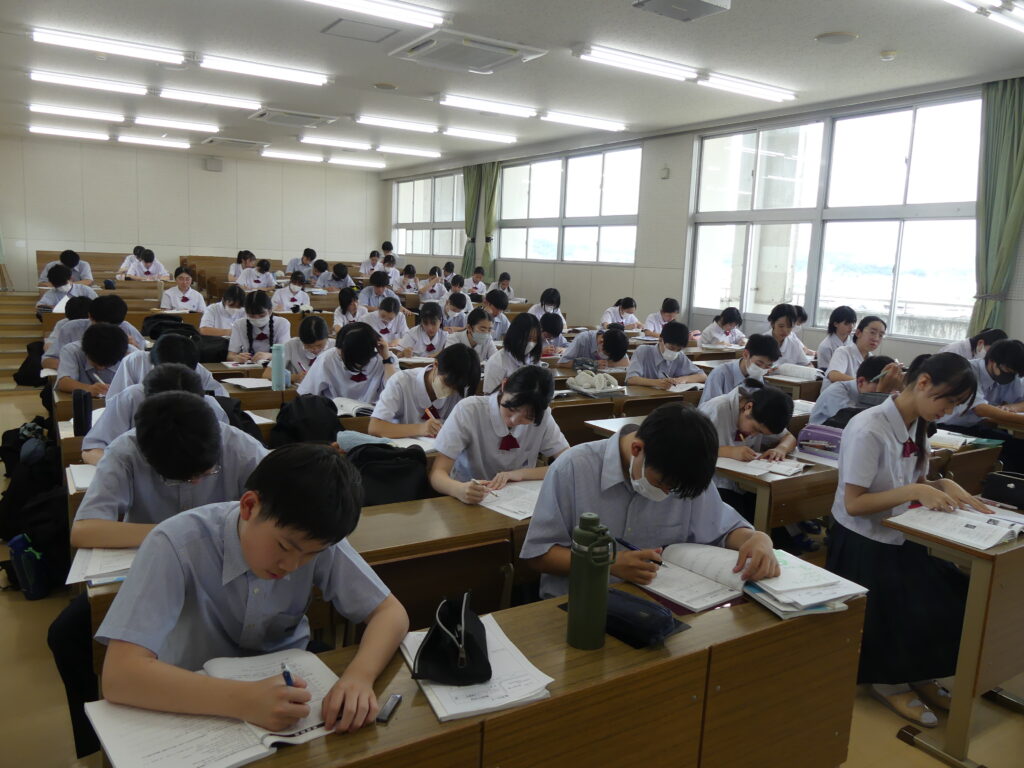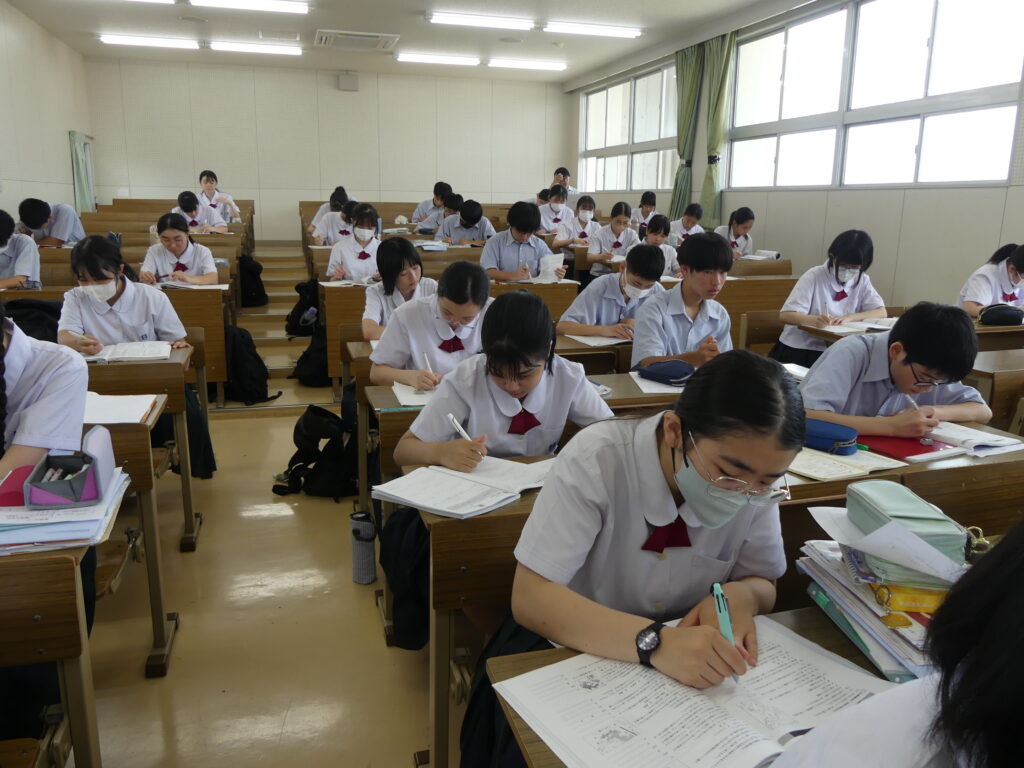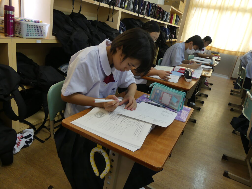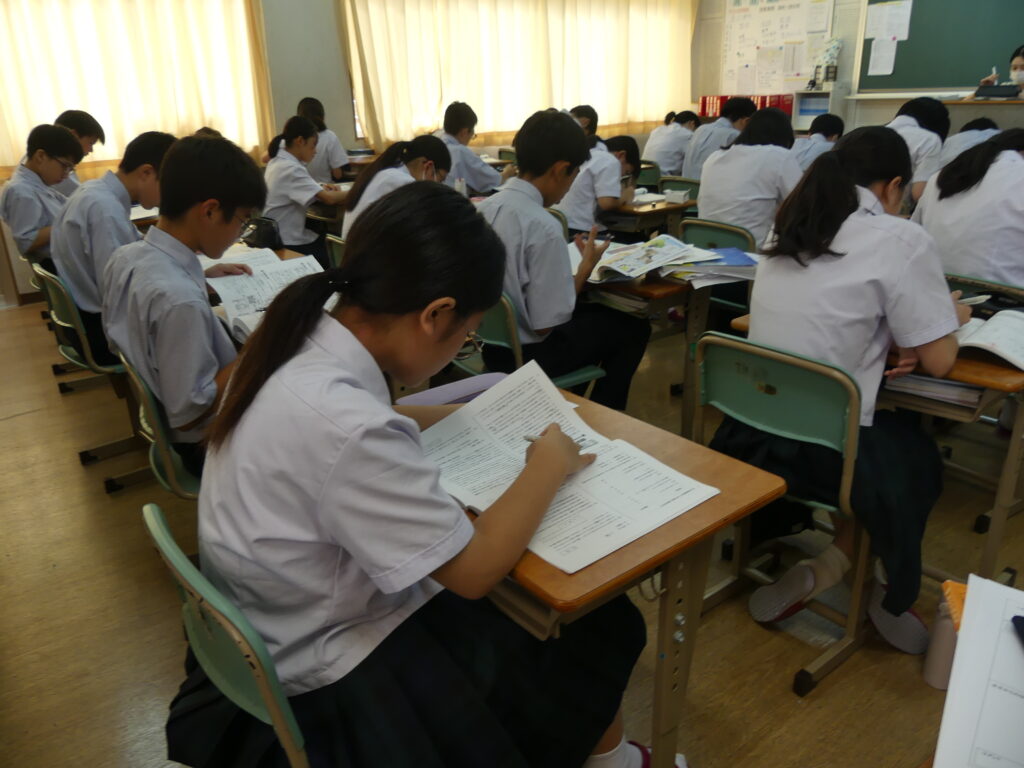 今日から夏の恒例行事、チャレンジ3が3日間行われます。このチャレンジ3は自分で課題を見つけ、計画を立てて1限目から7限目まで自学に取り組みます。そして、わからない問題にぶつかった時は、質問シートに質問をすると、各教科の先生から説明や答えが後で返ってきます。生徒たちは集中して真剣に取り組んでいました。