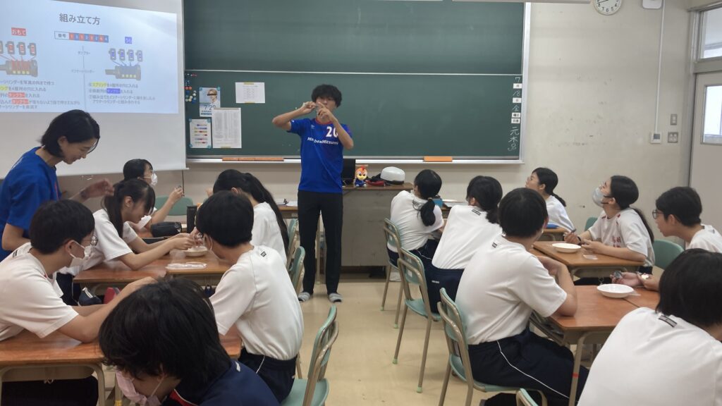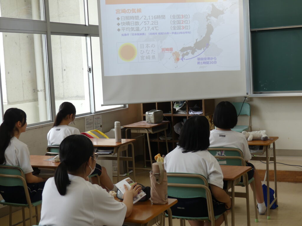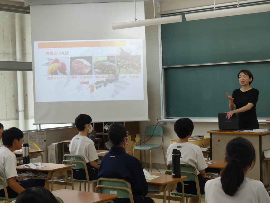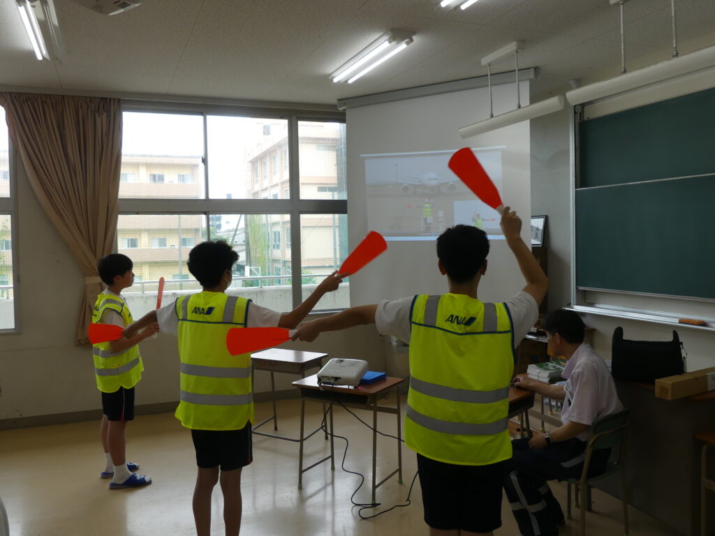 さて、課外の最終日にJ2生はもう一つ新しい体験が出来ました。本日「鵬翔中学校職業理解・体験ガイダンス」として、宮崎地区建設業協会様、フェニックスリゾート株式会社様、宮崎交通(株)航空部様、ミネベアアクセスソリューションズ株式会社様にお越しいただきました。