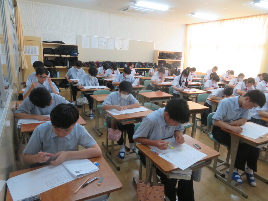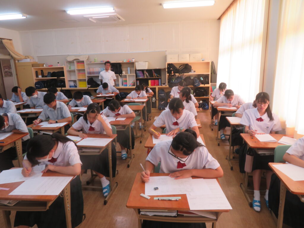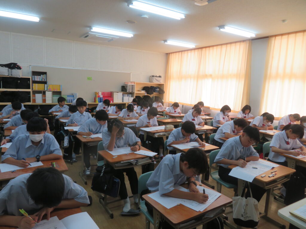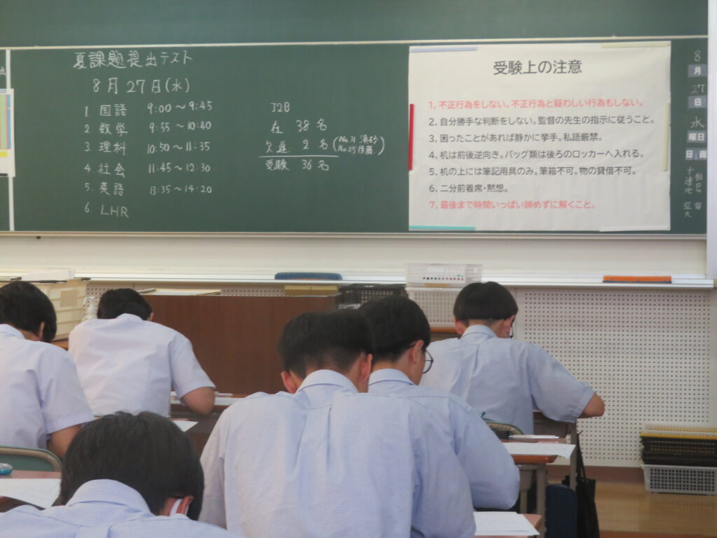 テストは本日で終了ですが、夏期課題が未提出の生徒が一部見受けられます。『提出物を完了させる』『テストのやり直し提出』までが夏課題定着テストですので、気を緩めすぎないよう、充実した学校生活を送れるように身辺を整えましょう。