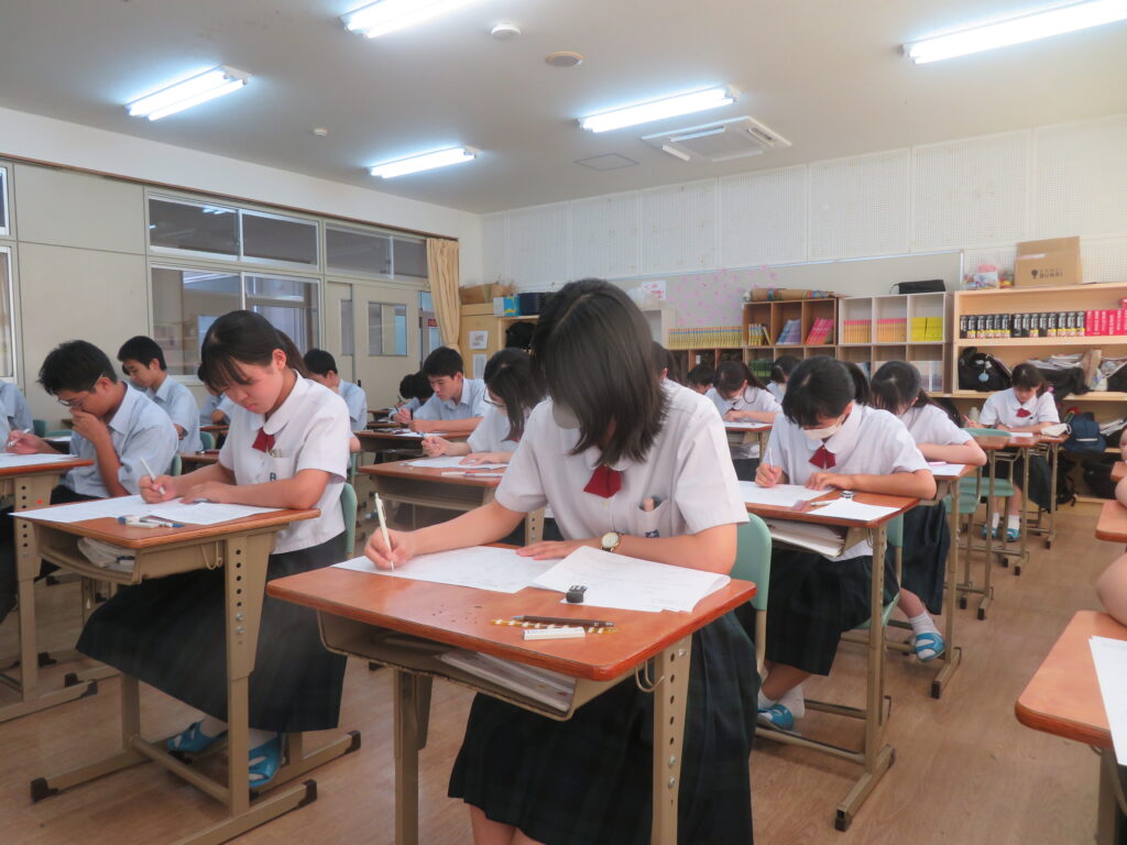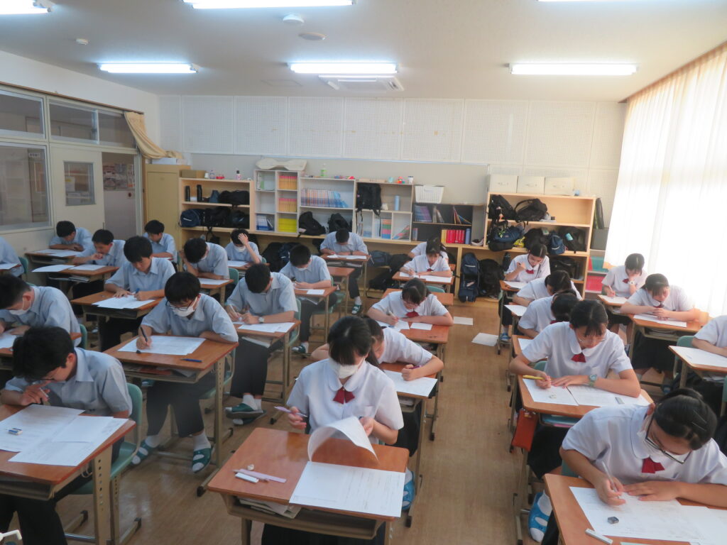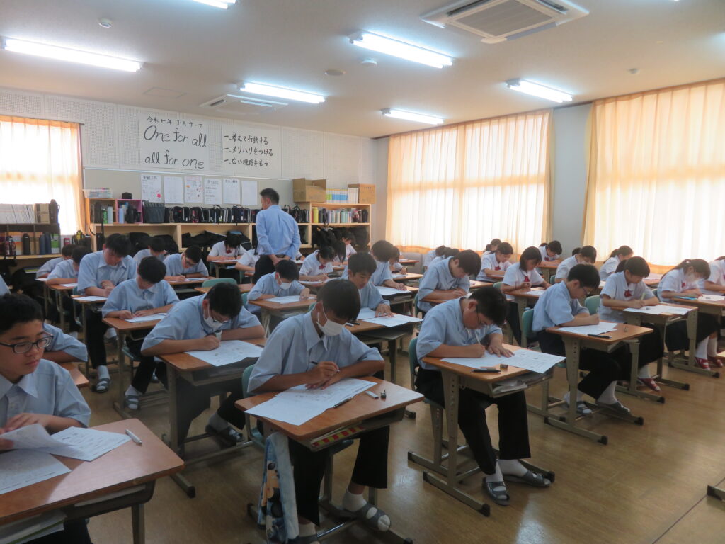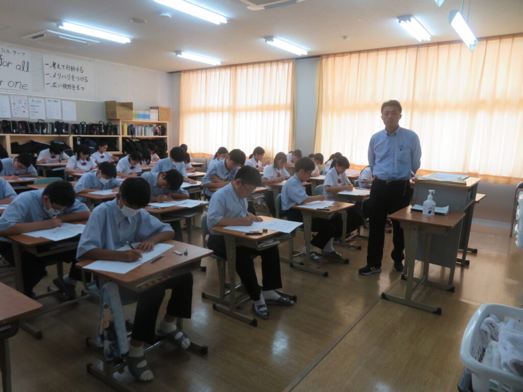 テストは本日で終了ですが、夏期課題が未提出の生徒が一部見受けられます。『提出物を完了させる』『テストのやり直し提出』までが夏課題定着テストですので、気を緩めすぎないよう、充実した学校生活を送れるように身辺を整えましょう。