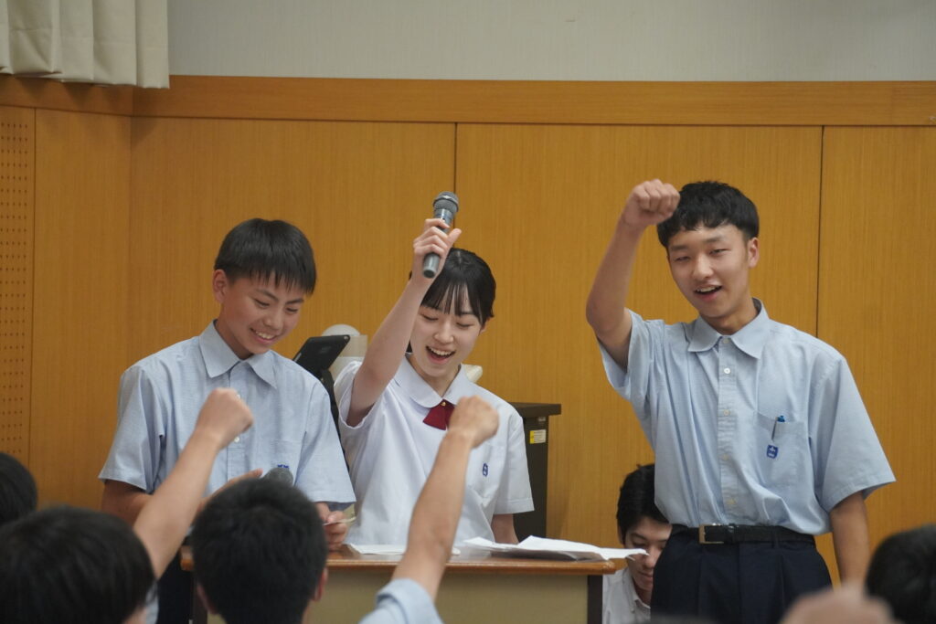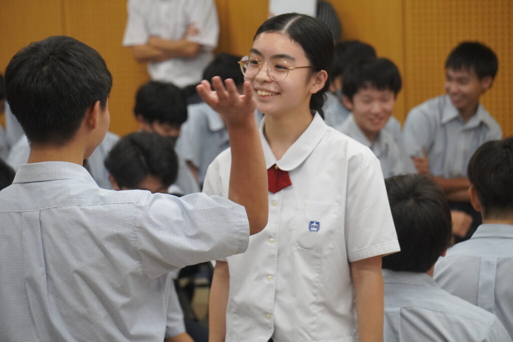 休憩時間には生徒会企画のジェスチャー伝言ゲームをして楽しみ会場にはたくさんの笑顔が溢れていました。