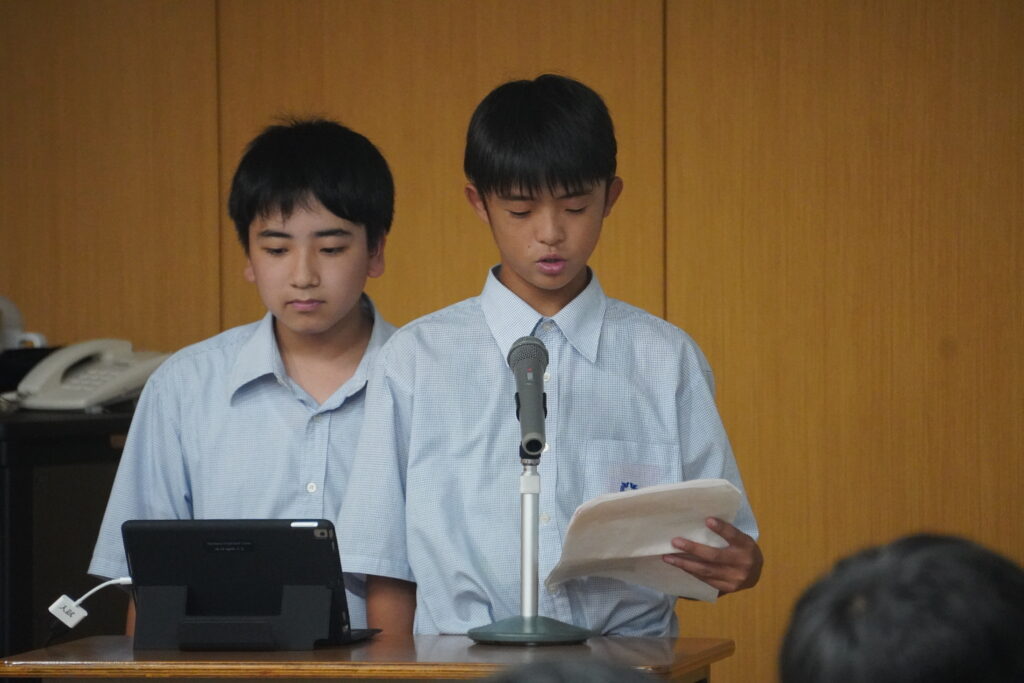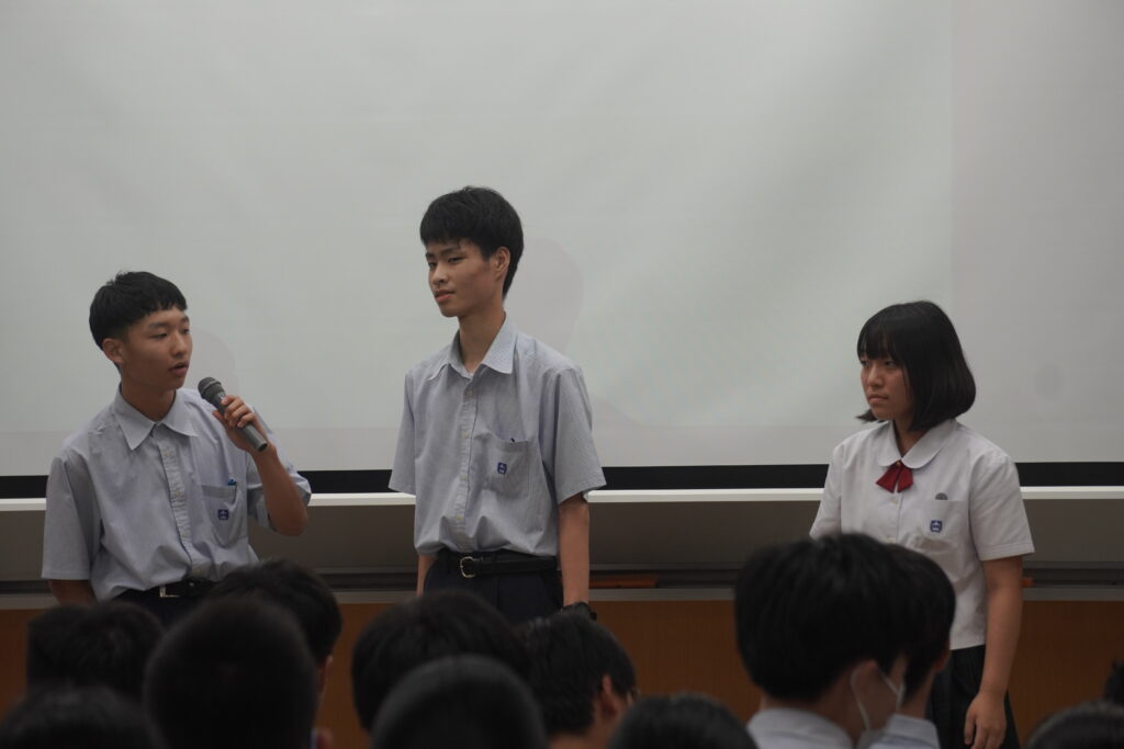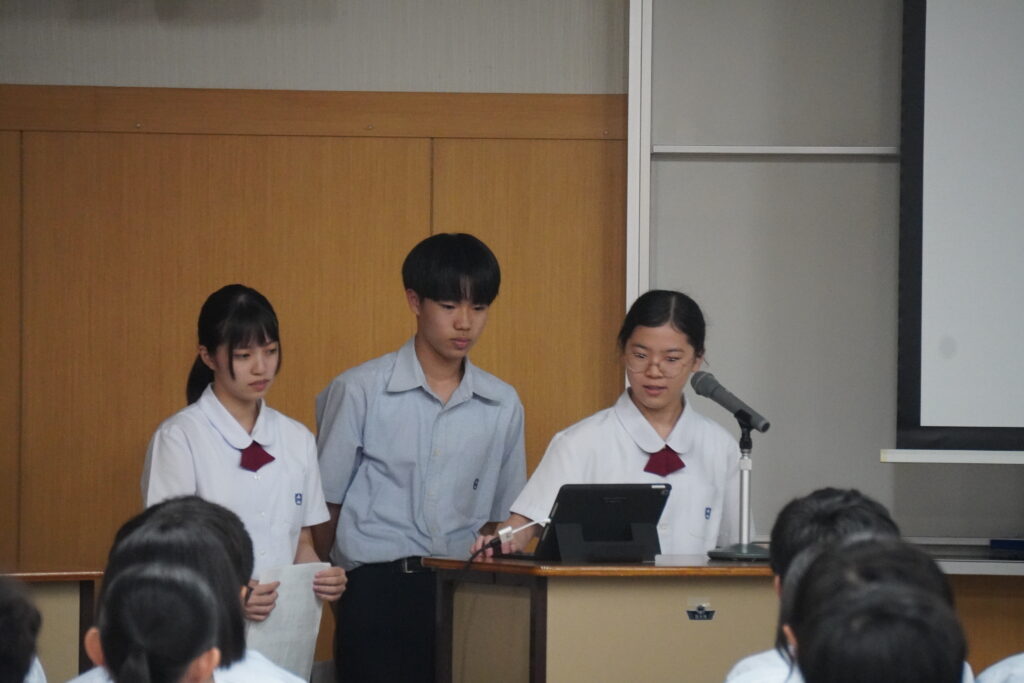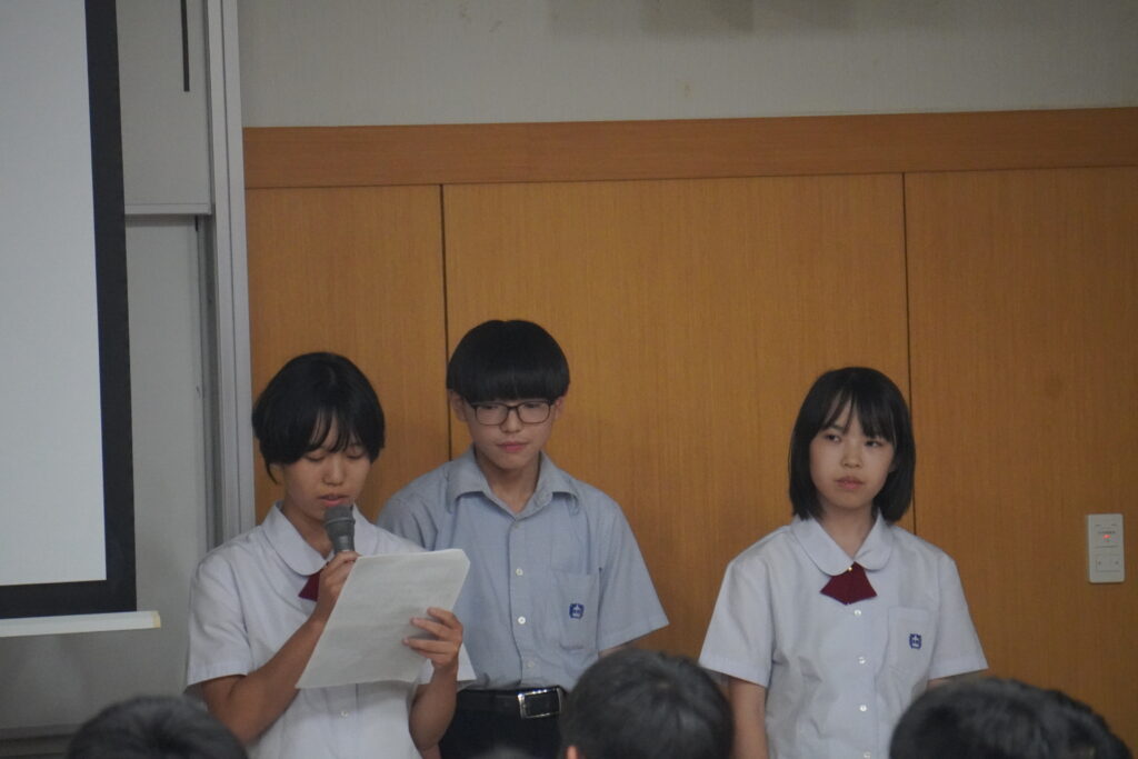 生徒会の司会はJ3A 柴田弘輝さん、J3B 山田心遥さん、J2B 河野裕斗さんが行ってくれました。素敵な司会をありがとうございます!