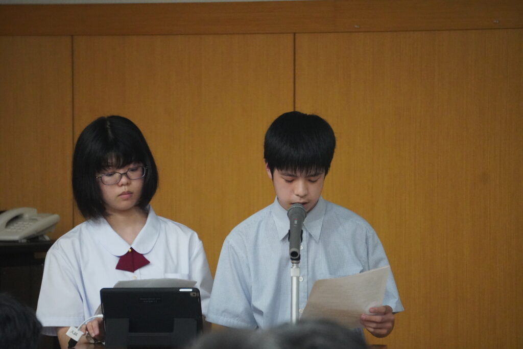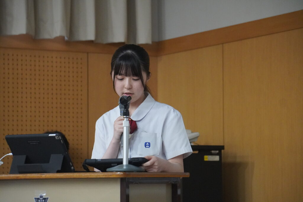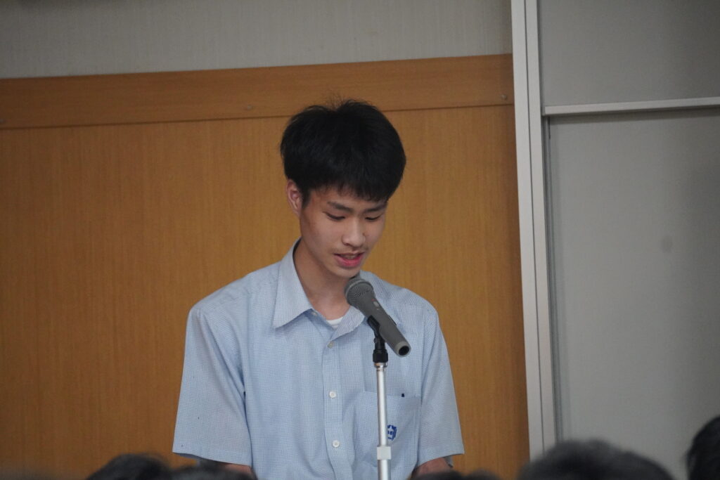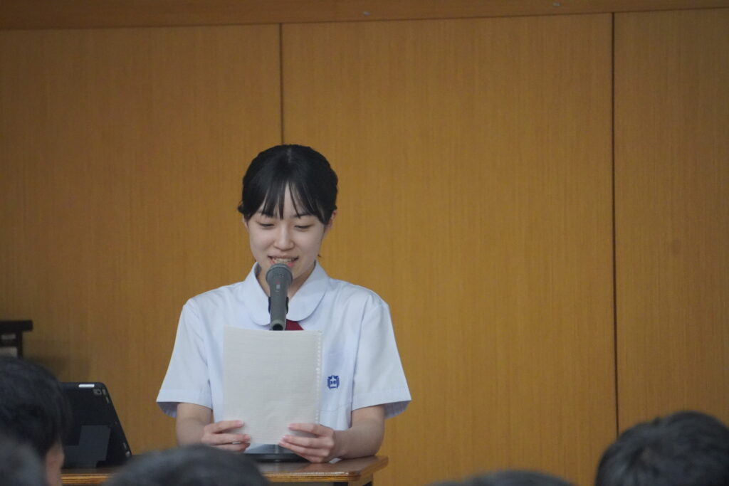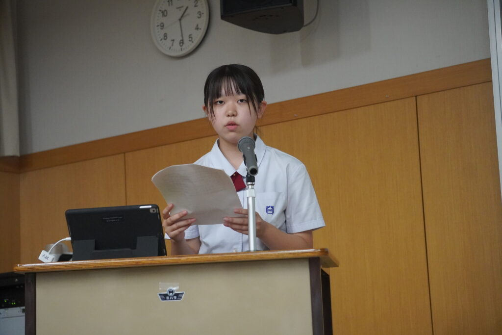 生徒会の司会はJ3A 柴田弘輝さん、J3B 山田心遥さん、J2B 河野裕斗さんが行ってくれました。素敵な司会をありがとうございます!