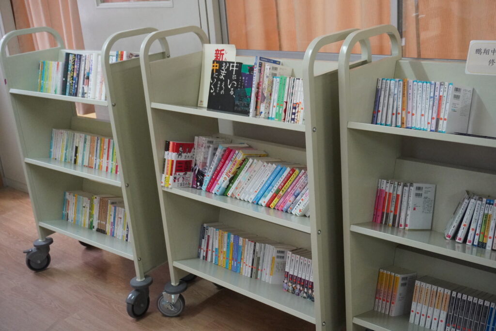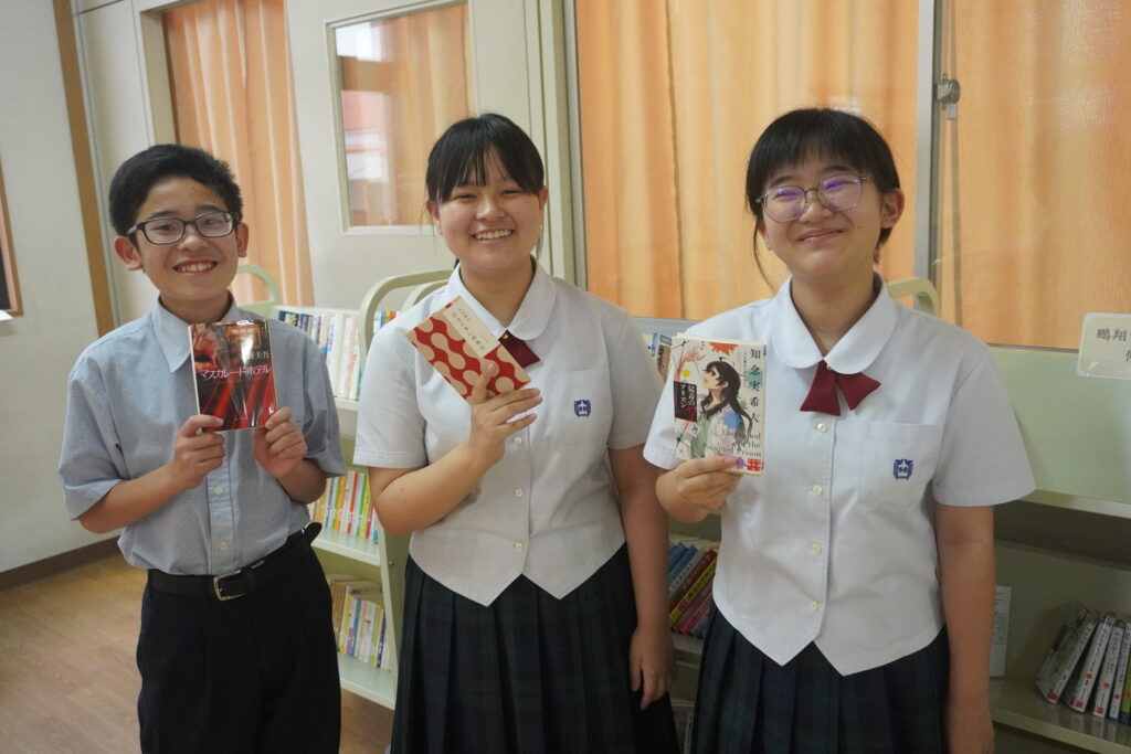 次は廊下に設置している書庫の紹介です。鵬翔中学校では、手に取りたくなる本を多数導入して、多くの生徒がいつでも本に触れる時間を取れるよう、図書室とは別に、教室横に書庫を設置しています。毎年約300冊の本を導入しているため、新刊も今読みたい本も図書館に行かずにすぐ読める点から多くの子どもたちが休み時間利用しています。