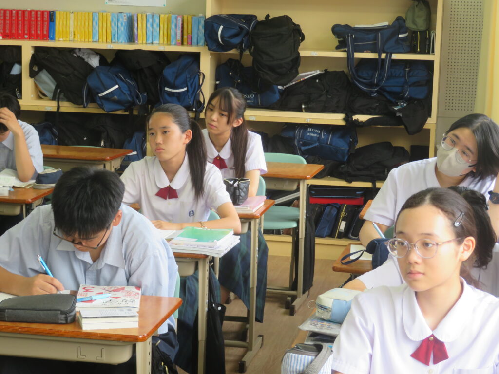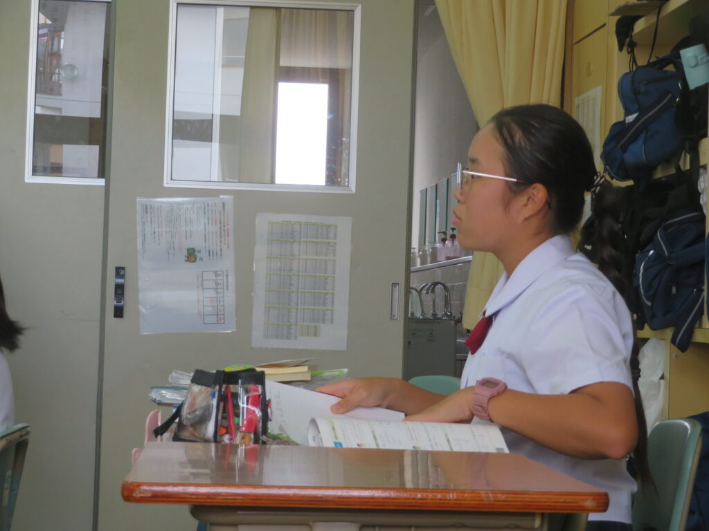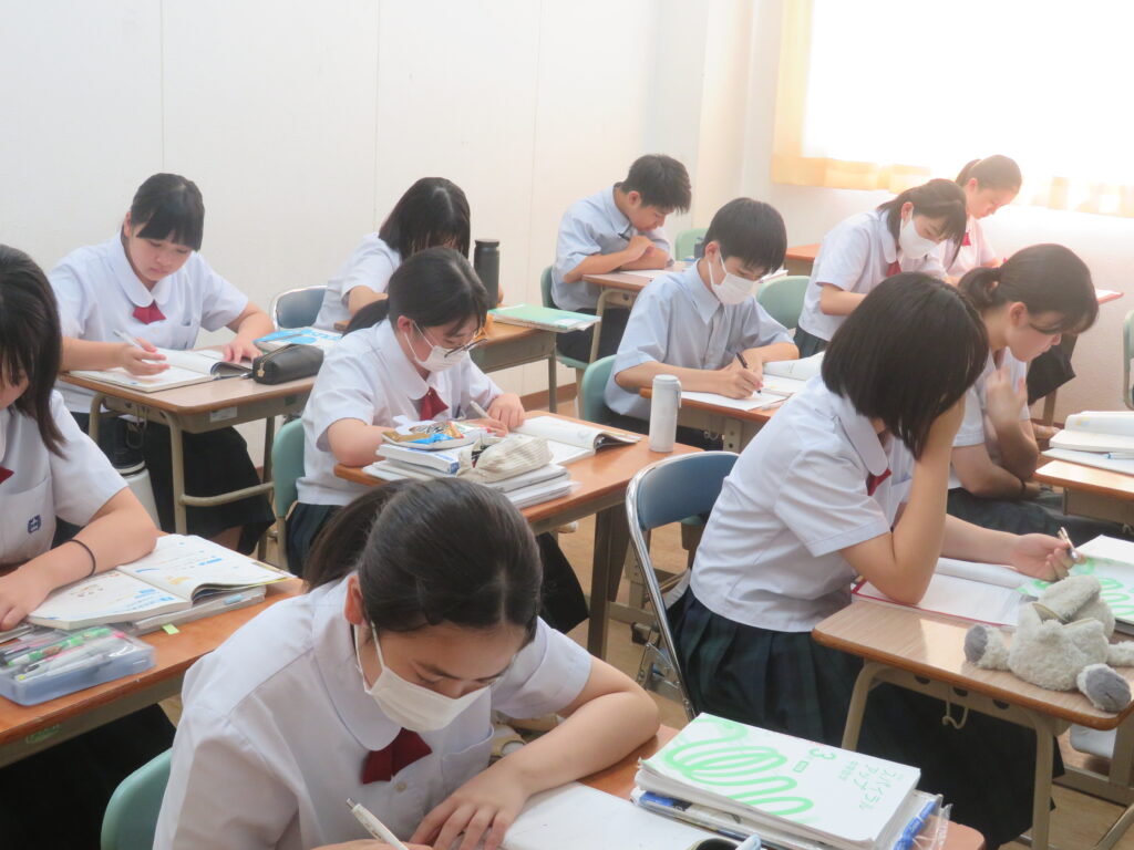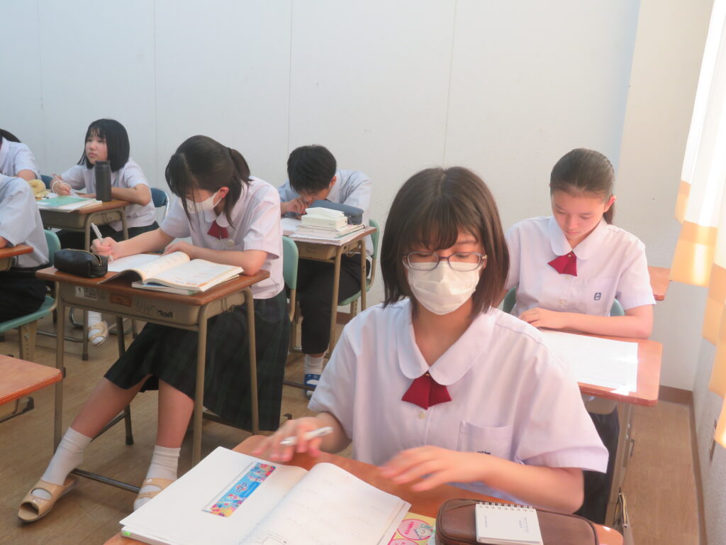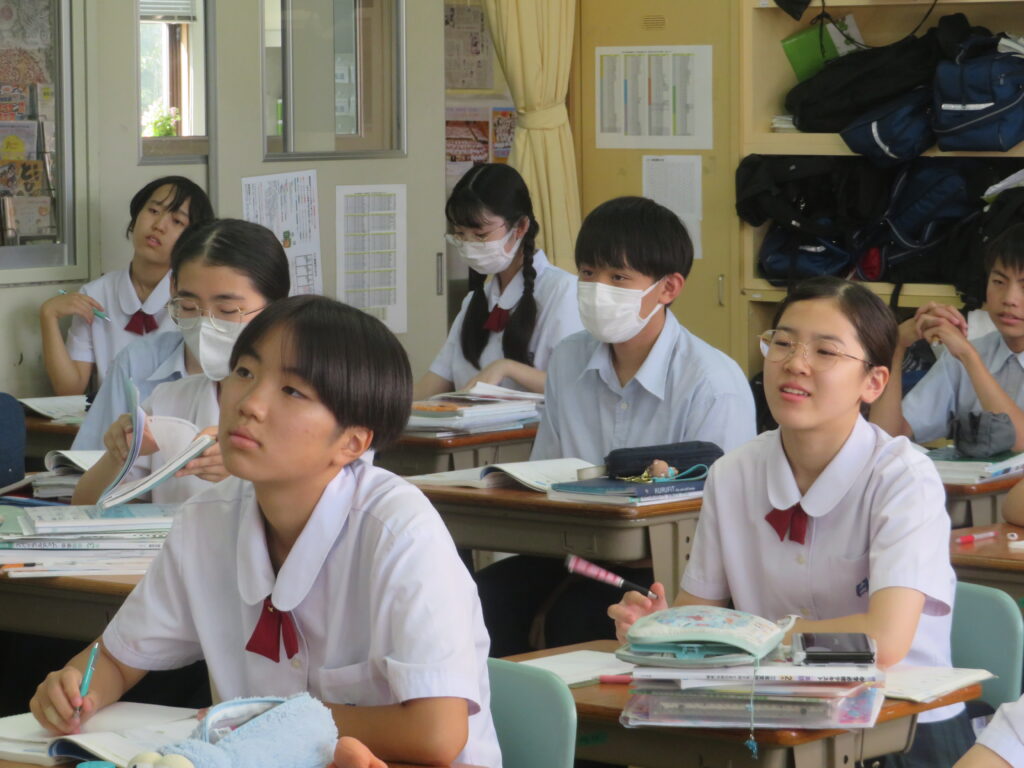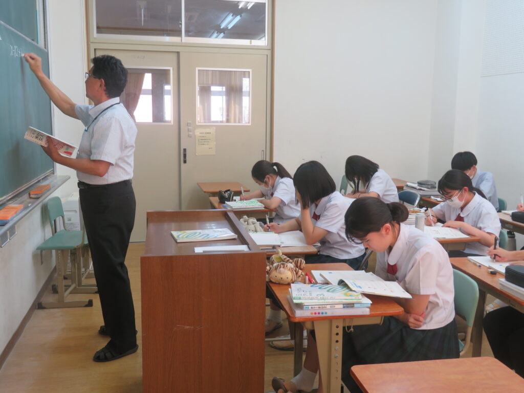 バドミントン部の生徒は、中体連に参加のため、本日は公欠でした。また、顧問の鳥原先生も大会に参加のため、授業の代行を永田先生がつとめていらっしゃいました。昼食後の授業は注意力散漫になりやすいのですが、生徒たちは各先生の説明を熱心に聞いていました。第3回定期考査まであと8日。教科のバランスも考えながら、残された時間を有効に使ってテスト対策を頑張ってほしいと思います。