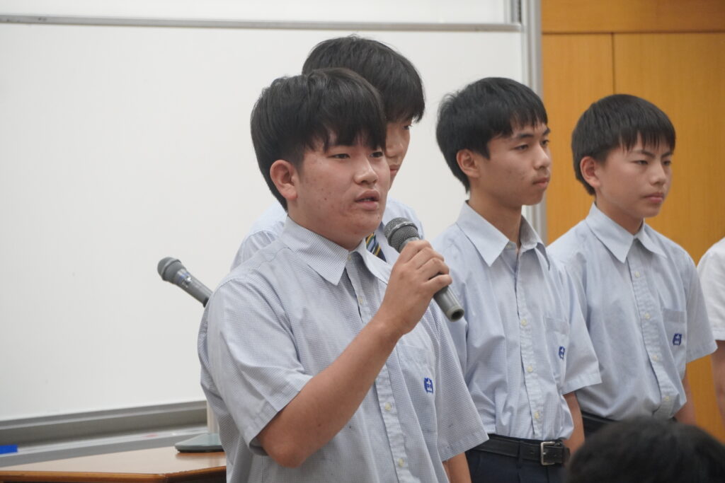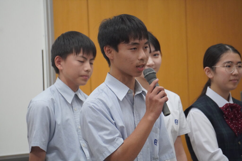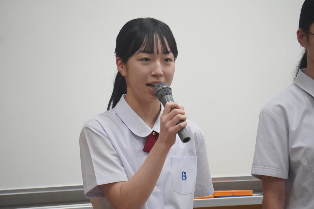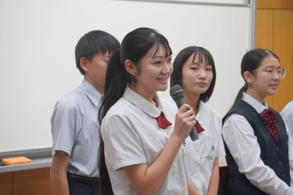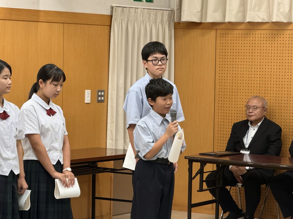 本日は,先日行われた生徒会選挙の結果を踏まえて,多目的ホールにて生徒会役員の新旧交代式が行われました。まず土肥校長より,旧生徒会への感謝の言葉とともに1人1人へ感謝状が贈られました。そのあと,旧生徒会それぞれの思いが詰まった挨拶がありました。