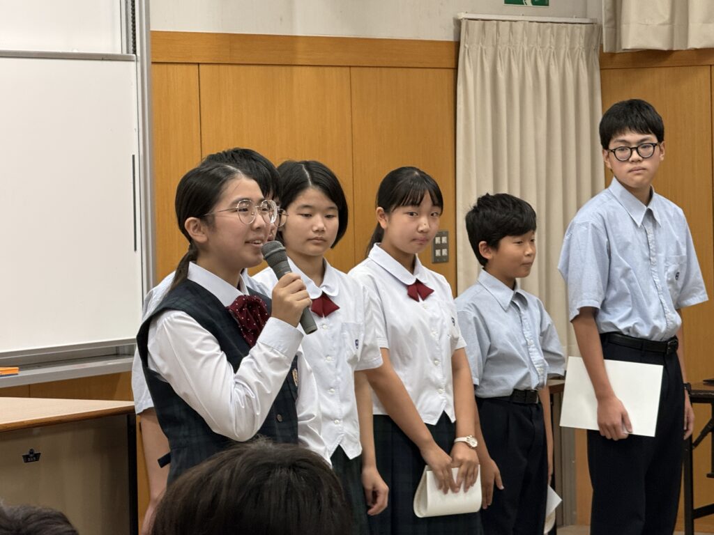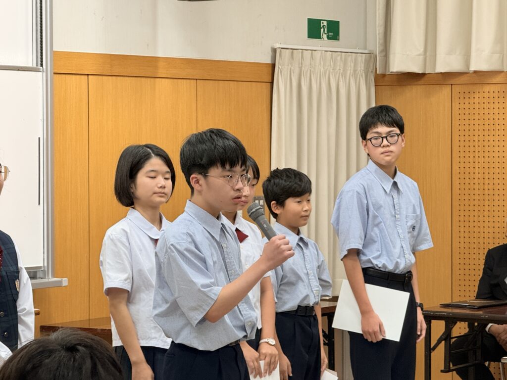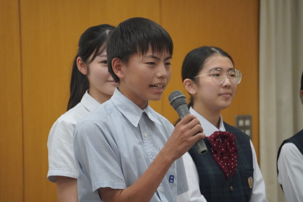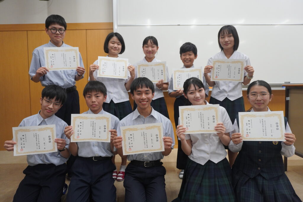 後半は,新生徒会役員へ校長より任命証の授与があり,新生徒会長の弓削さんから順に1人1人挨拶がありました。新しいメンバーで,鵬翔中生みんなが楽しめるイベントを企画・運営してくれると思います。