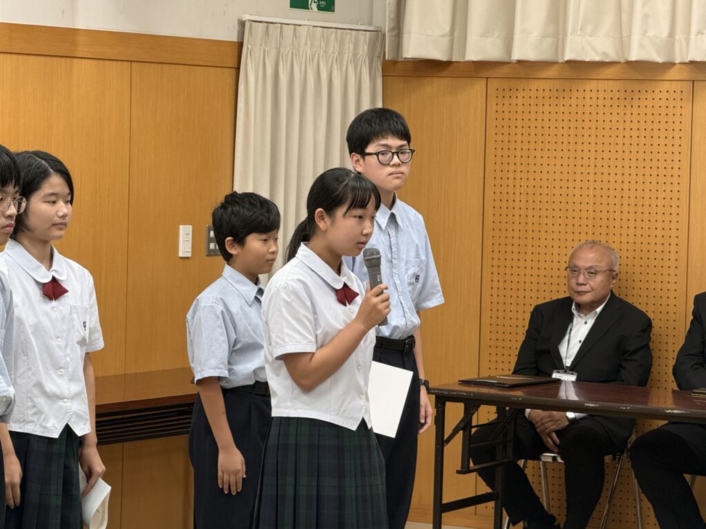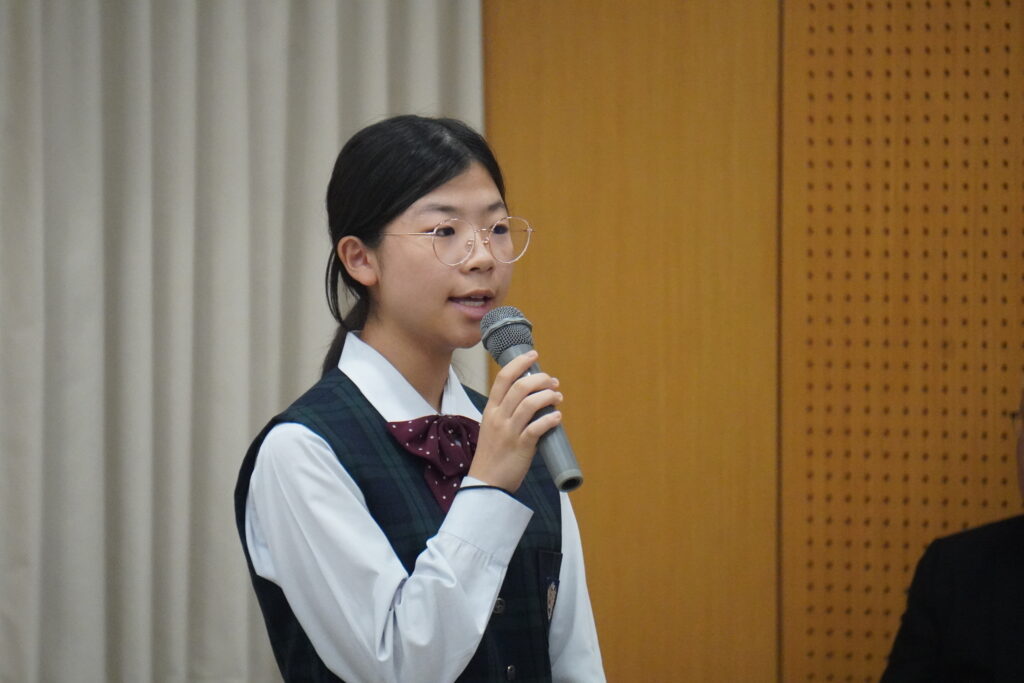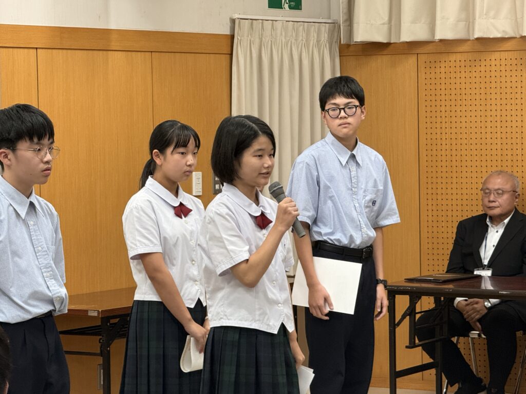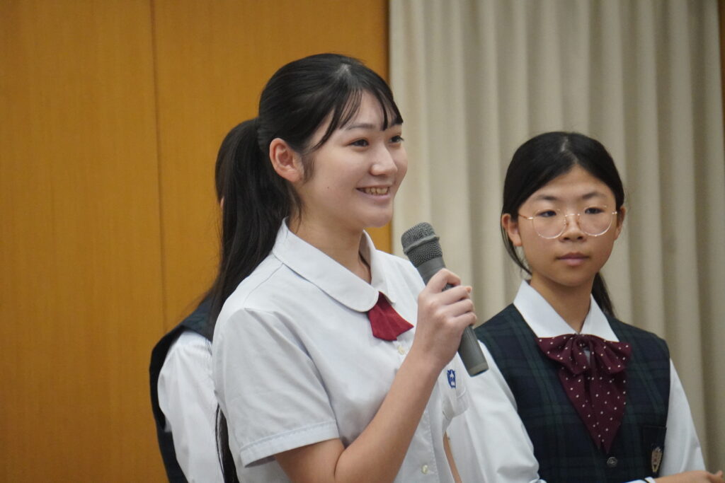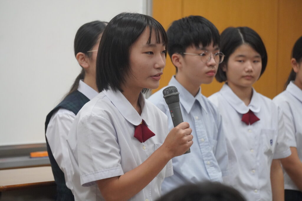後半は,新生徒会役員へ校長より任命証の授与があり,新生徒会長の弓削さんから順に1人1人挨拶がありました。新しいメンバーで,鵬翔中生みんなが楽しめるイベントを企画・運営してくれると思います。