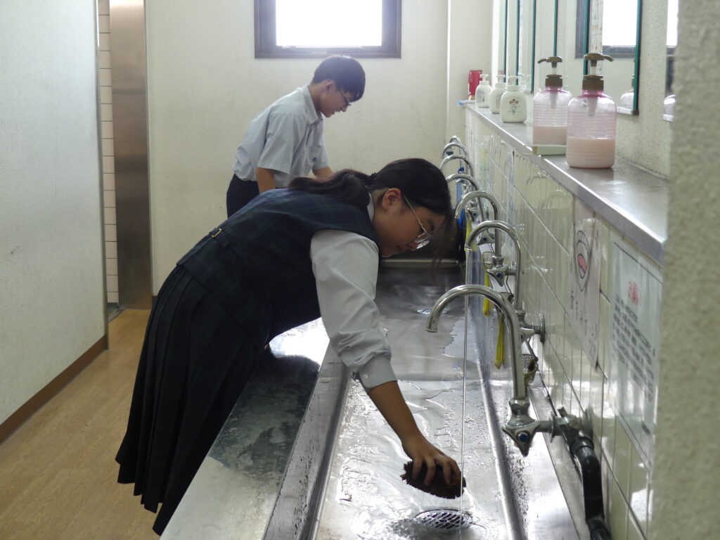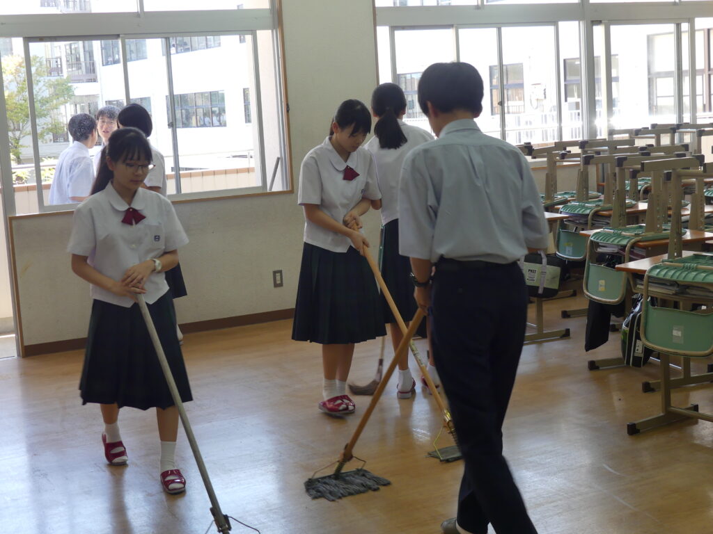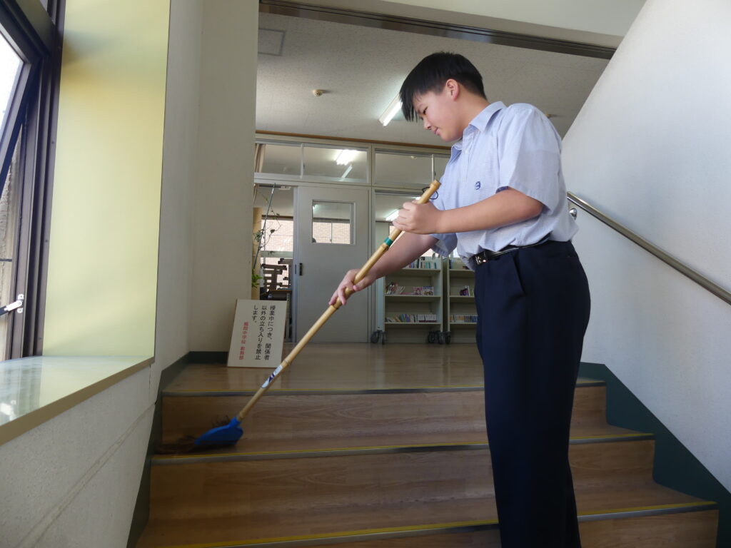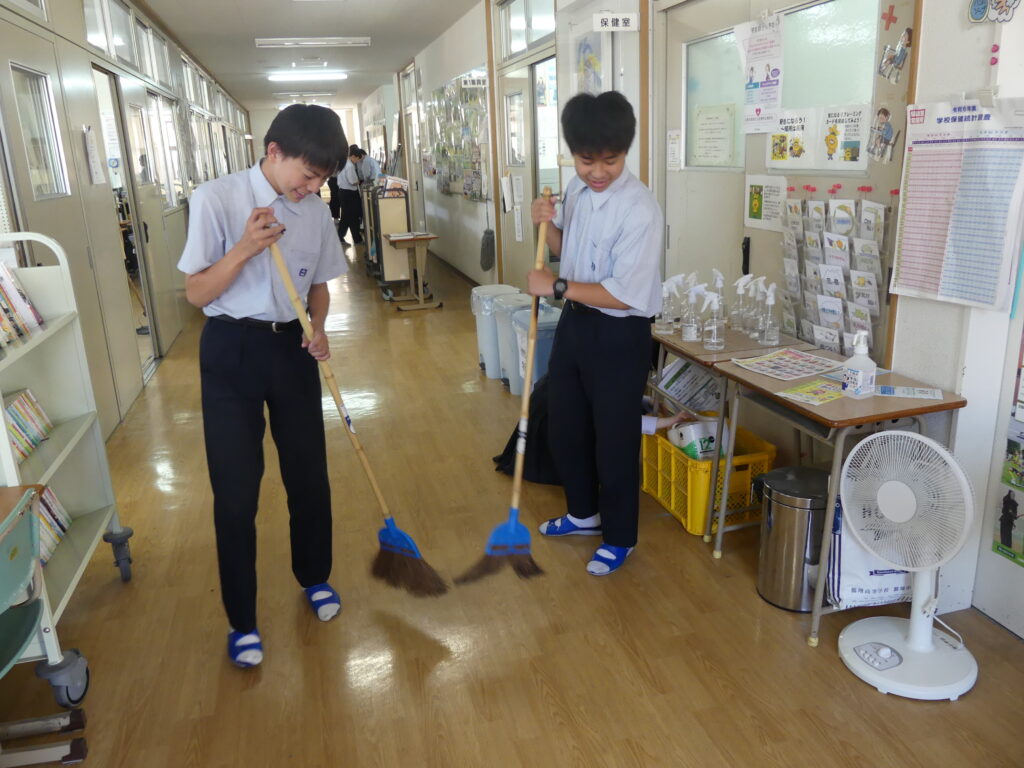 本日は定期考査最終日。3日間のテスト期間を終えて、子どもたちは清掃活動に取り組みます。