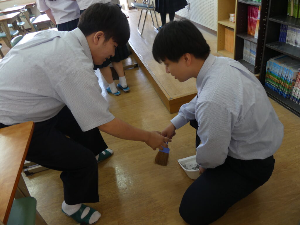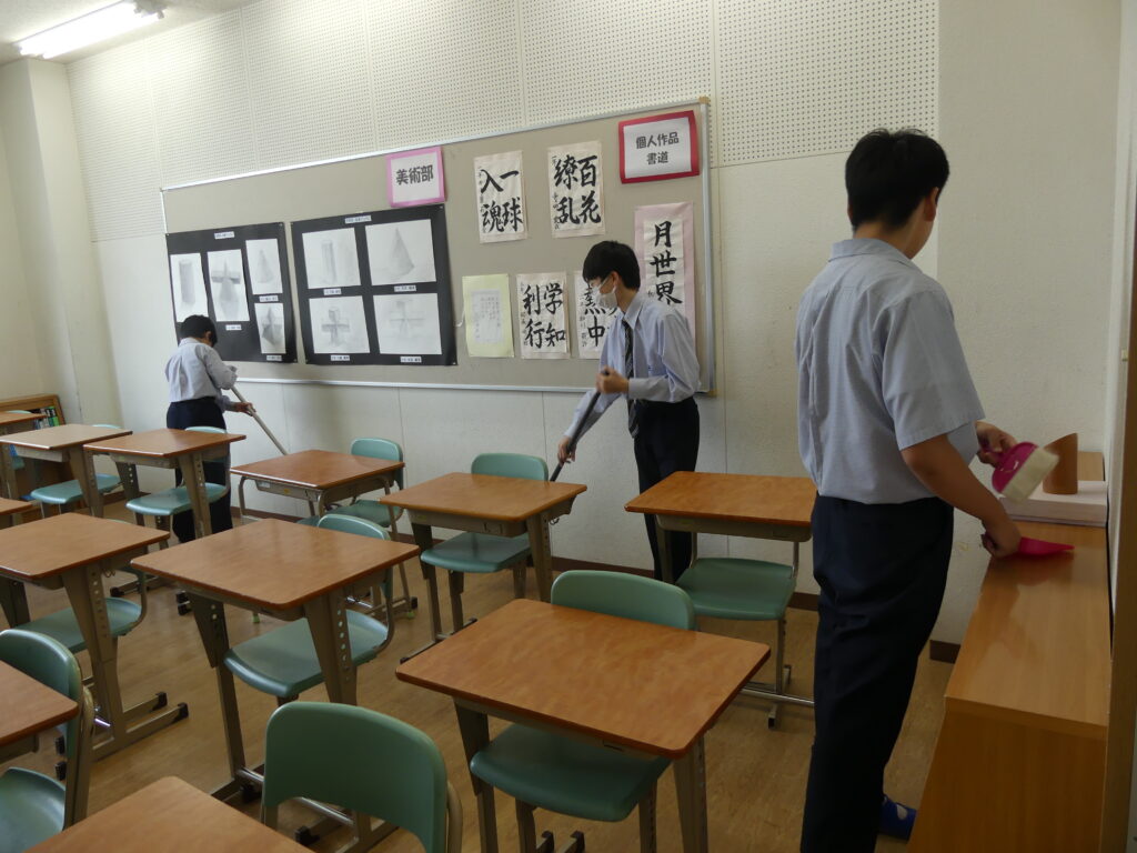 日々使用している教室や廊下がきれいな状況であり続けるのは皆さんのおかげです。テスト期間は多くの生徒が朝早くから遅くまで教室や演習室で自学に臨みました。「来たときよりも美しく」という言葉の通り、今週も過ごした学び舎をしっかりときれいにしようという気持ちが、取り組む姿から分かりました。いつもありがとう!