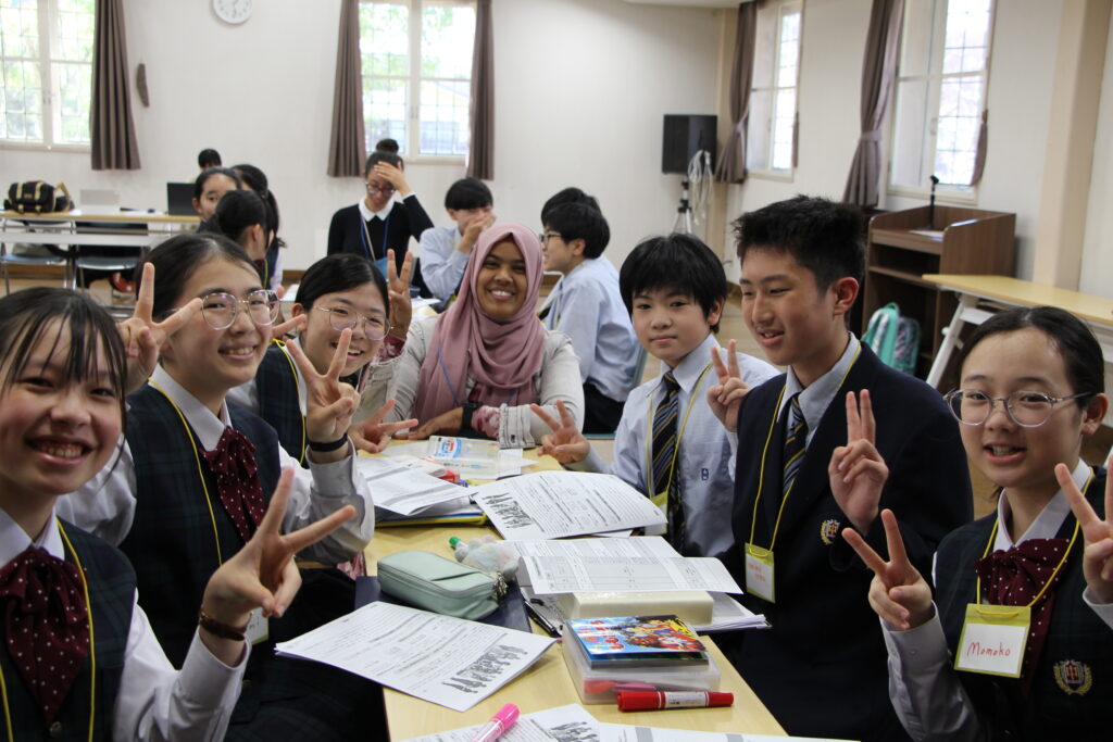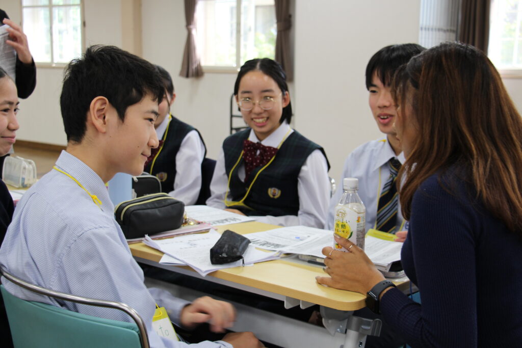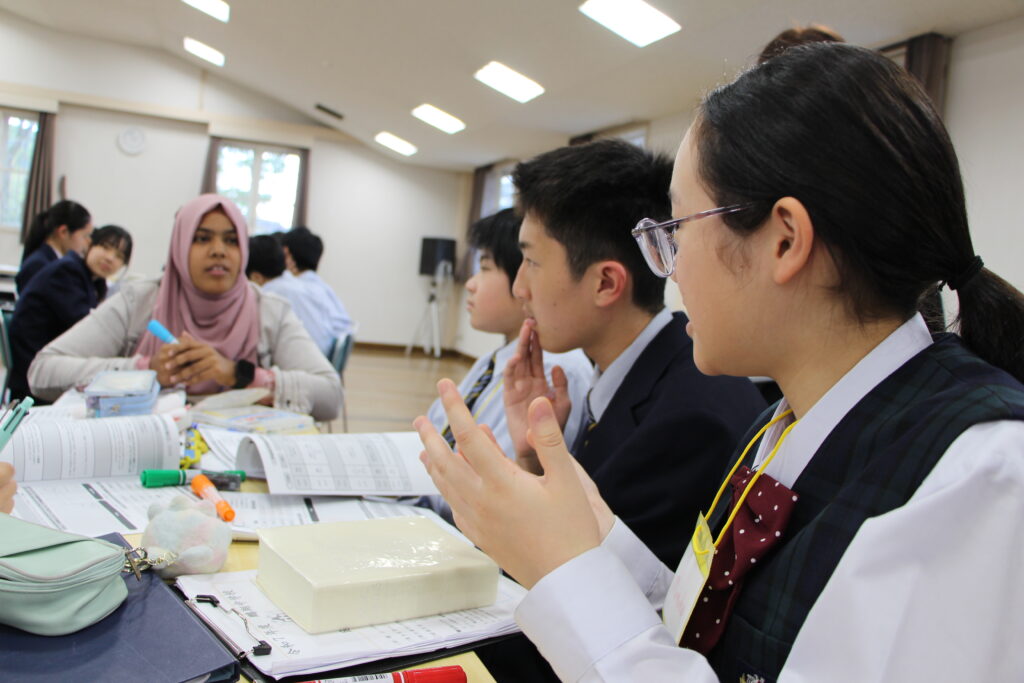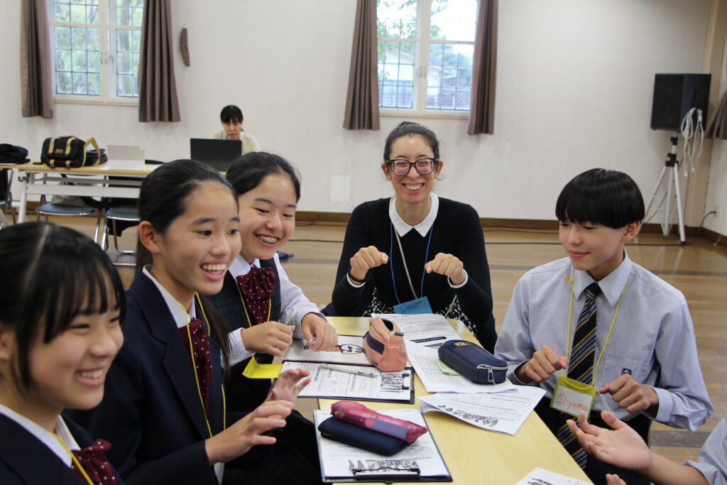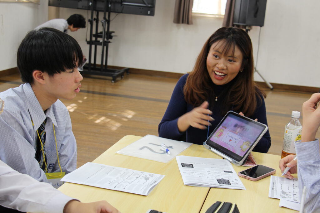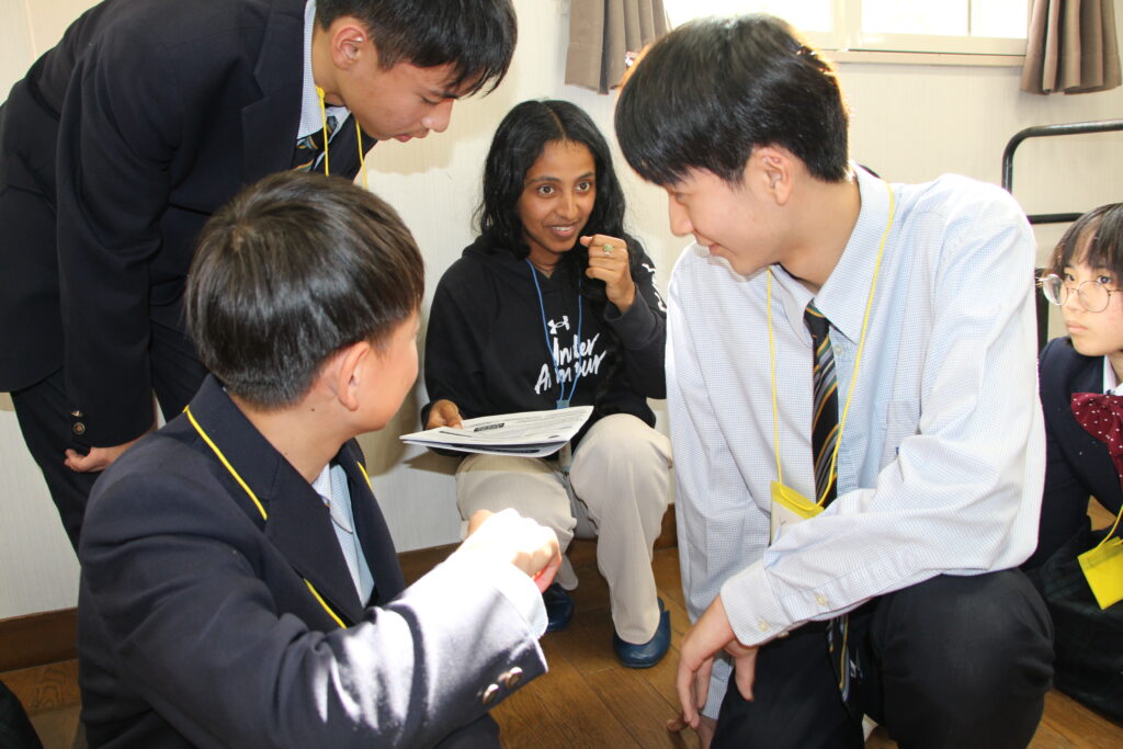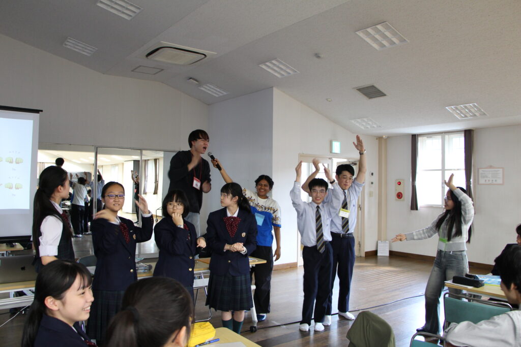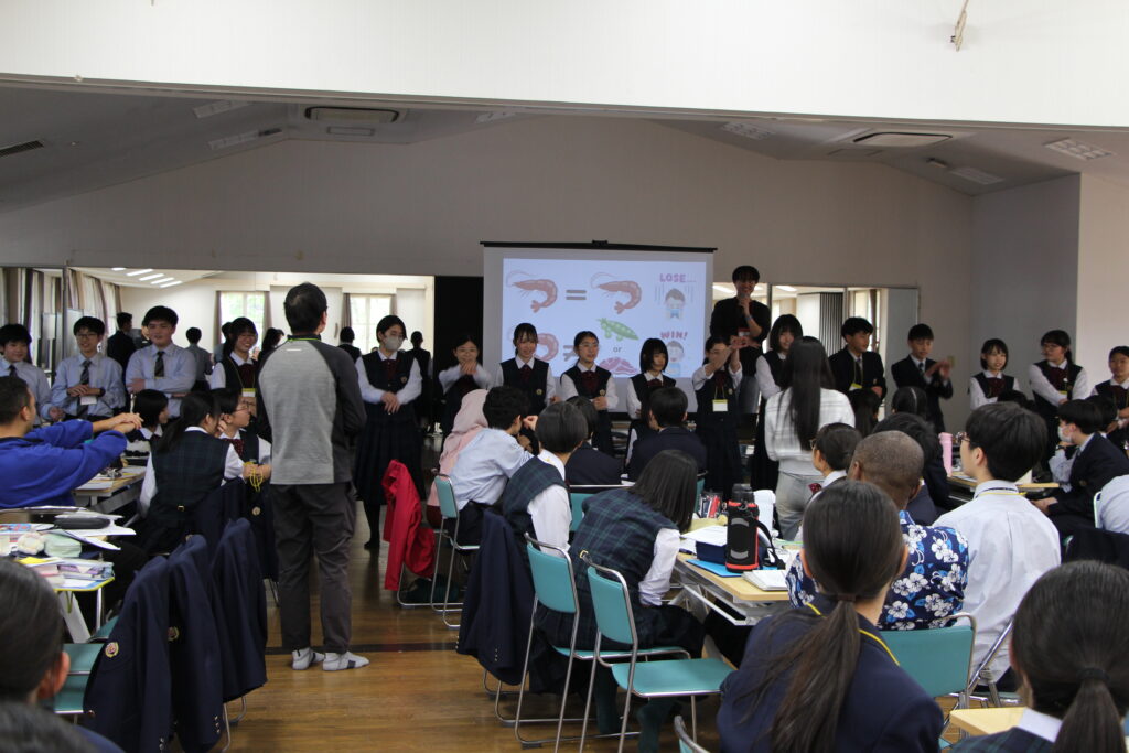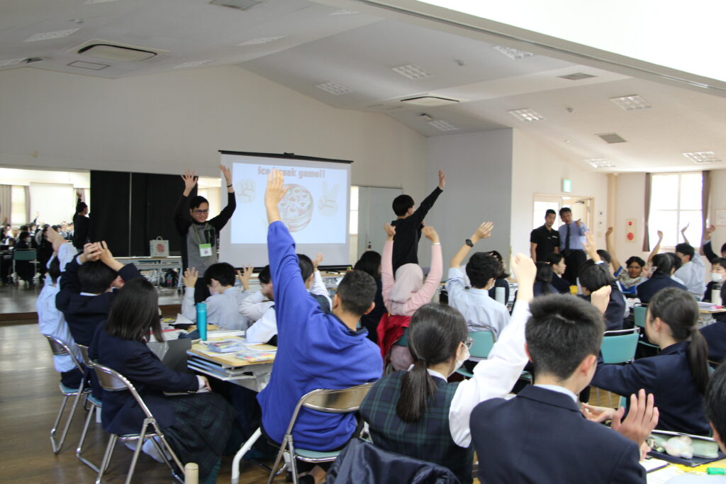 午後の活動の様子です。今回お世話になるグローバルリーダーの統括であるChivaさんより、グローバルビレッジプログラムのルールでもある、①Don’t be shy! ②Speak only English! ③Mistakes are OK! ④Leave no one behind!の説明がありました。その後、アイスブレイク「シューマイじゃんけん」です。この「シューマイじゃんけん」は、鵬翔中中高一貫の先輩たちも英語研修で行ったアイスブレイクの活動です。