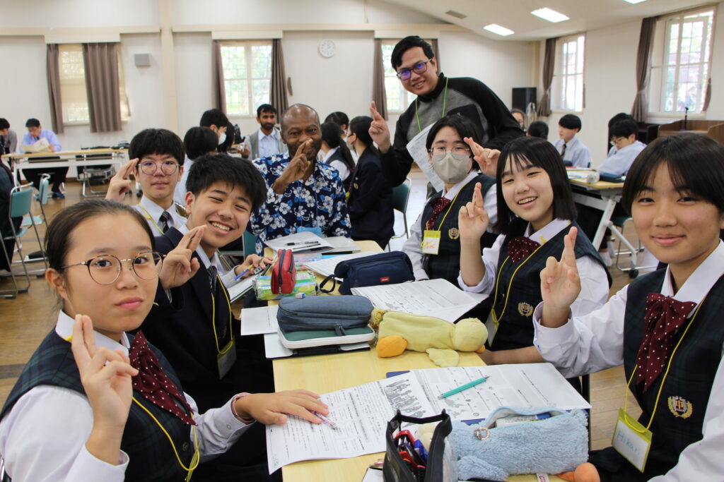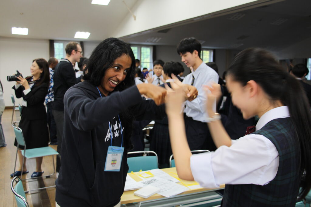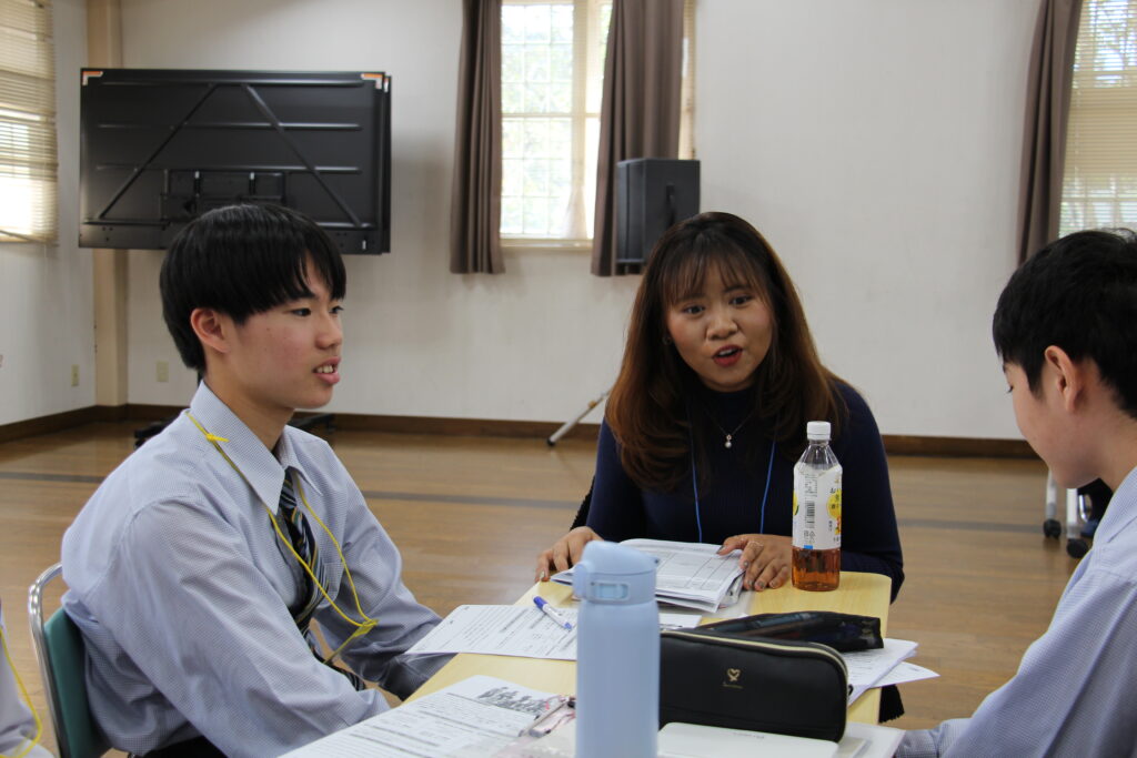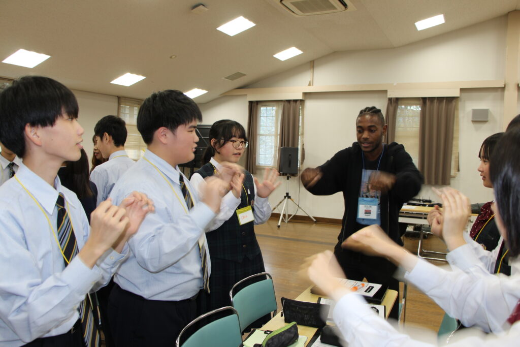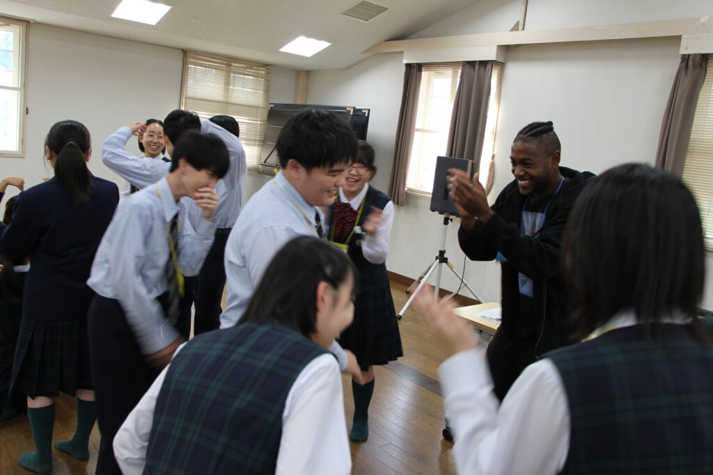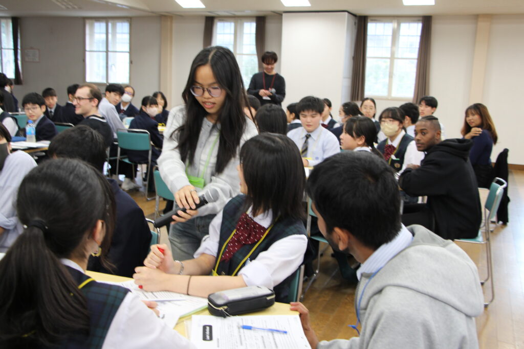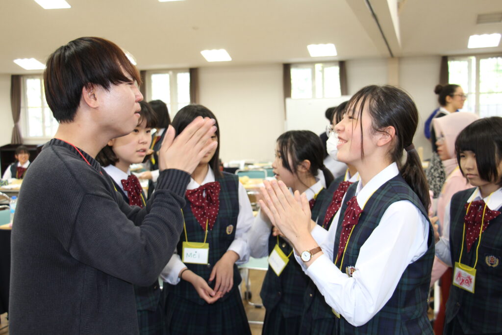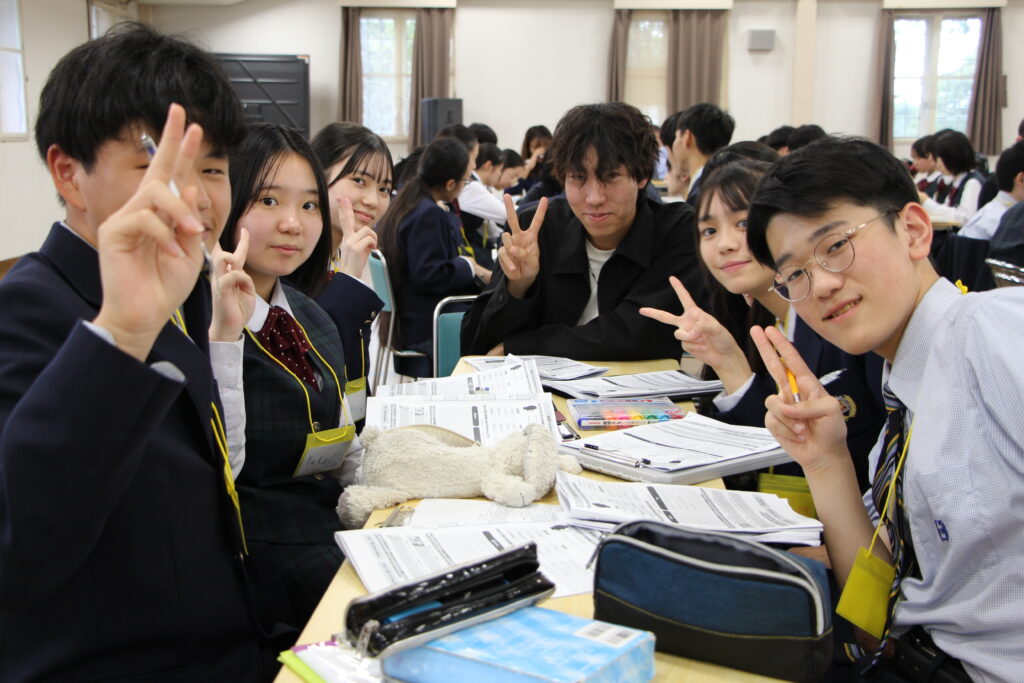 午後の活動の様子です。今回お世話になるグローバルリーダーの統括であるChivaさんより、グローバルビレッジプログラムのルールでもある、①Don’t be shy! ②Speak only English! ③Mistakes are OK! ④Leave no one behind!の説明がありました。その後、アイスブレイク「シューマイじゃんけん」です。この「シューマイじゃんけん」は、鵬翔中中高一貫の先輩たちも英語研修で行ったアイスブレイクの活動です。