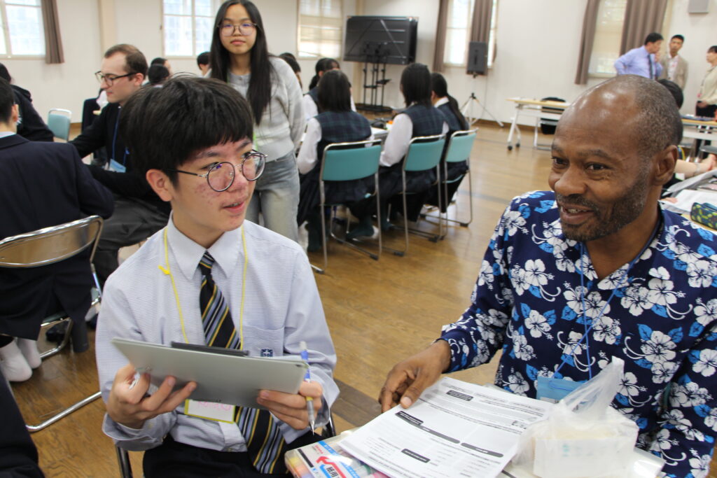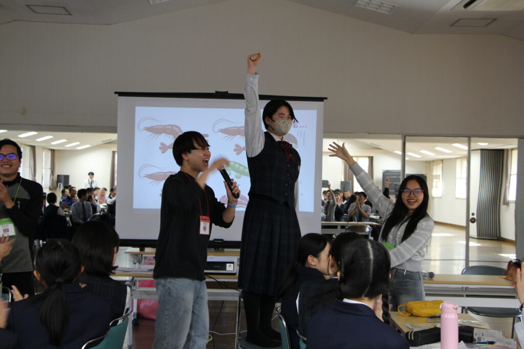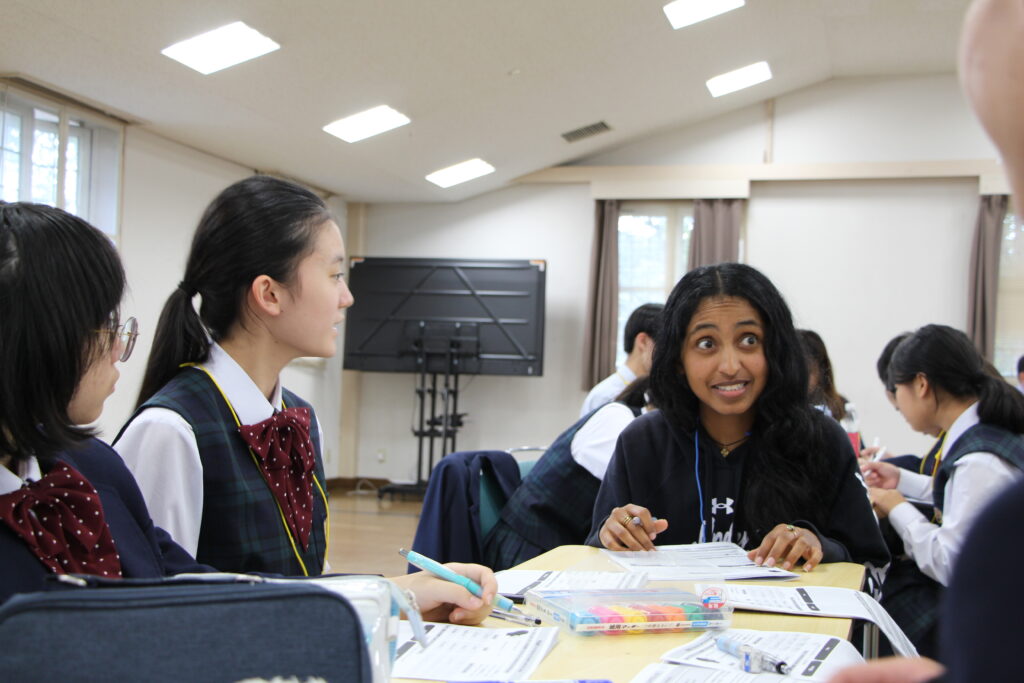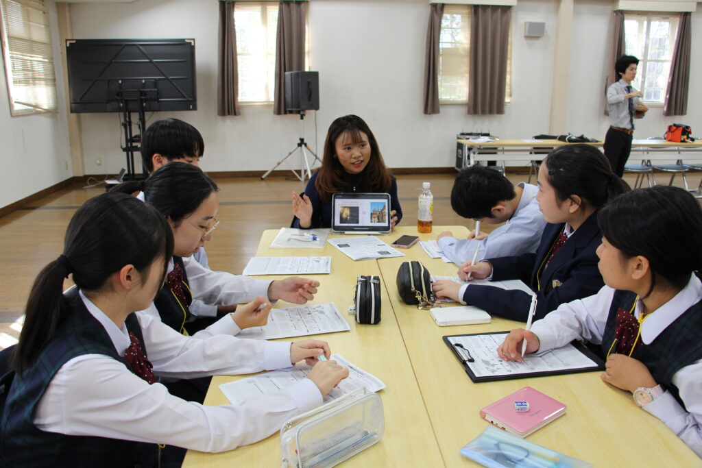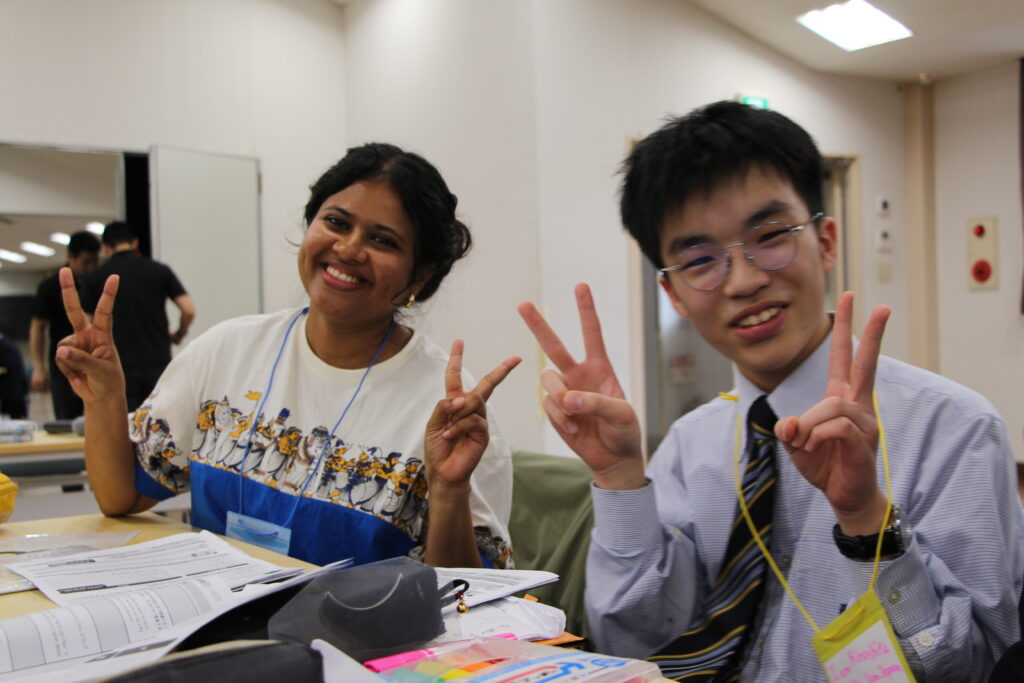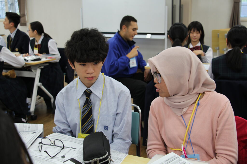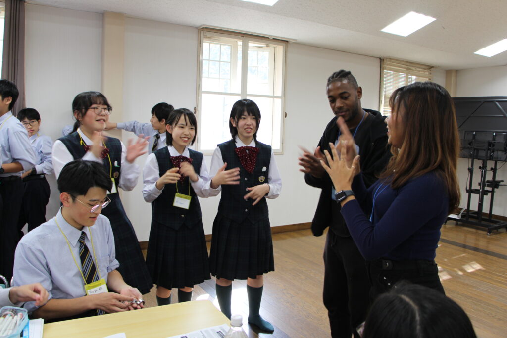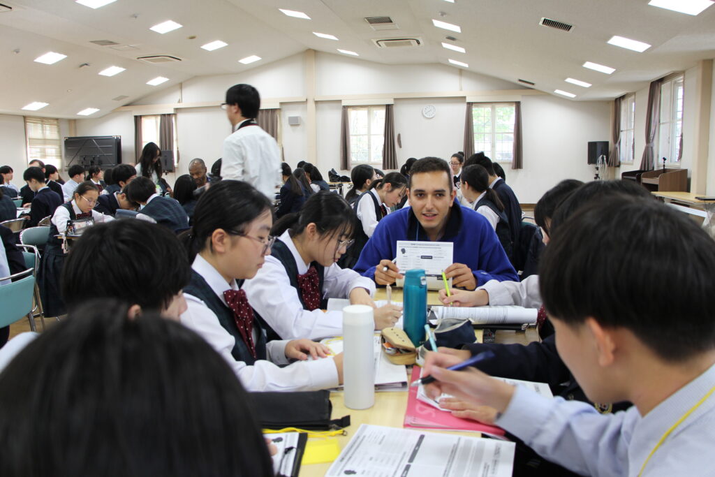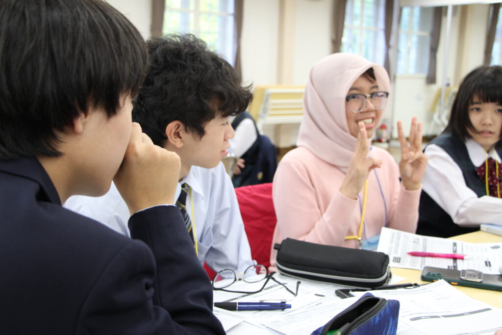 午後の活動の様子です。今回お世話になるグローバルリーダーの統括であるChivaさんより、グローバルビレッジプログラムのルールでもある、①Don’t be shy! ②Speak only English! ③Mistakes are OK! ④Leave no one behind!の説明がありました。その後、アイスブレイク「シューマイじゃんけん」です。この「シューマイじゃんけん」は、鵬翔中中高一貫の先輩たちも英語研修で行ったアイスブレイクの活動です。