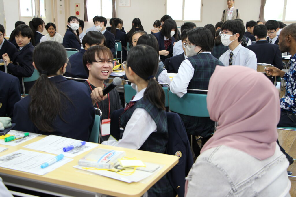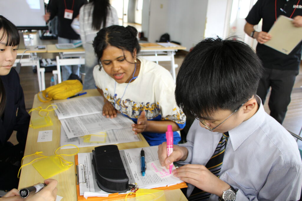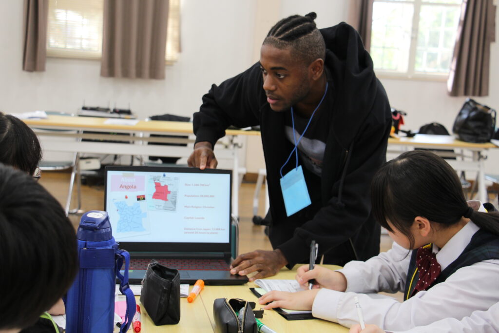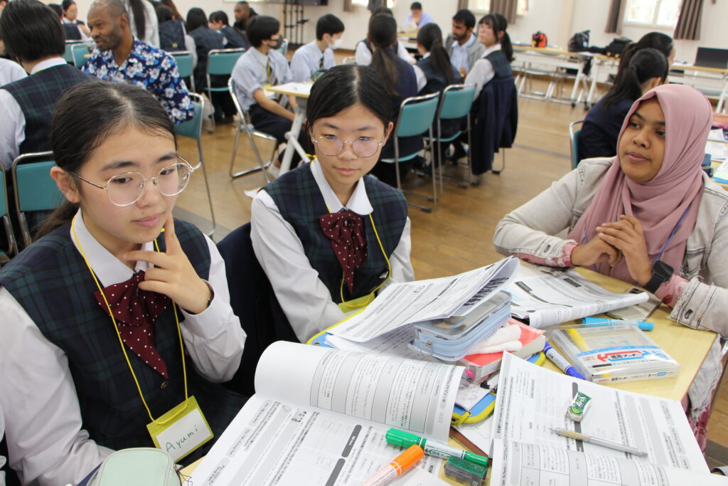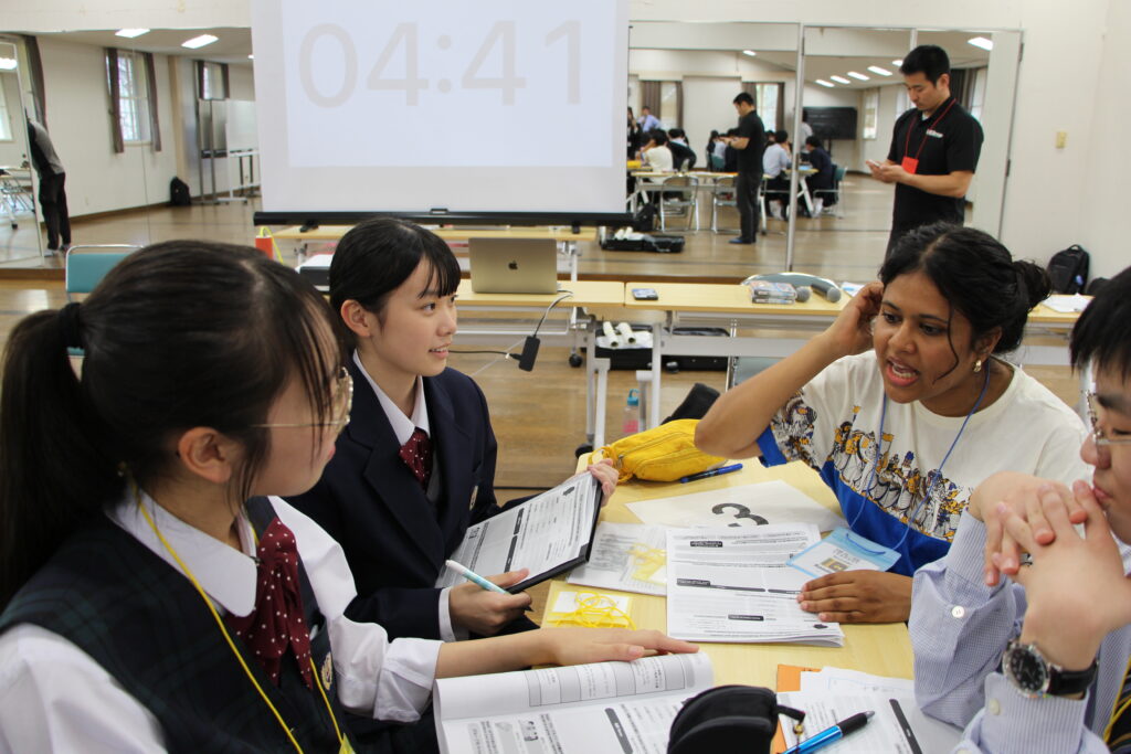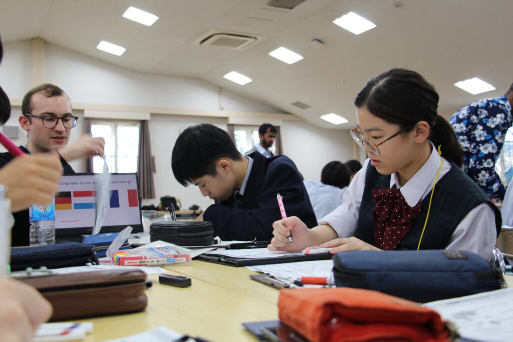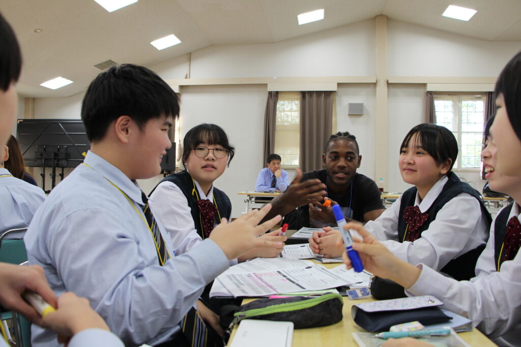 緊張がほぐれたところで、それぞれ自己紹介を行い、各班のグローバルリーダーの母国の紹介をしてもらいました。現在活動が始まり3時間が経とうとしています。子どもたちは元気いっぱい活動しています。