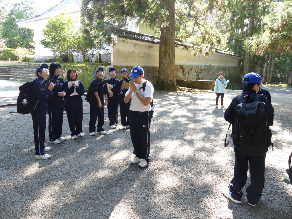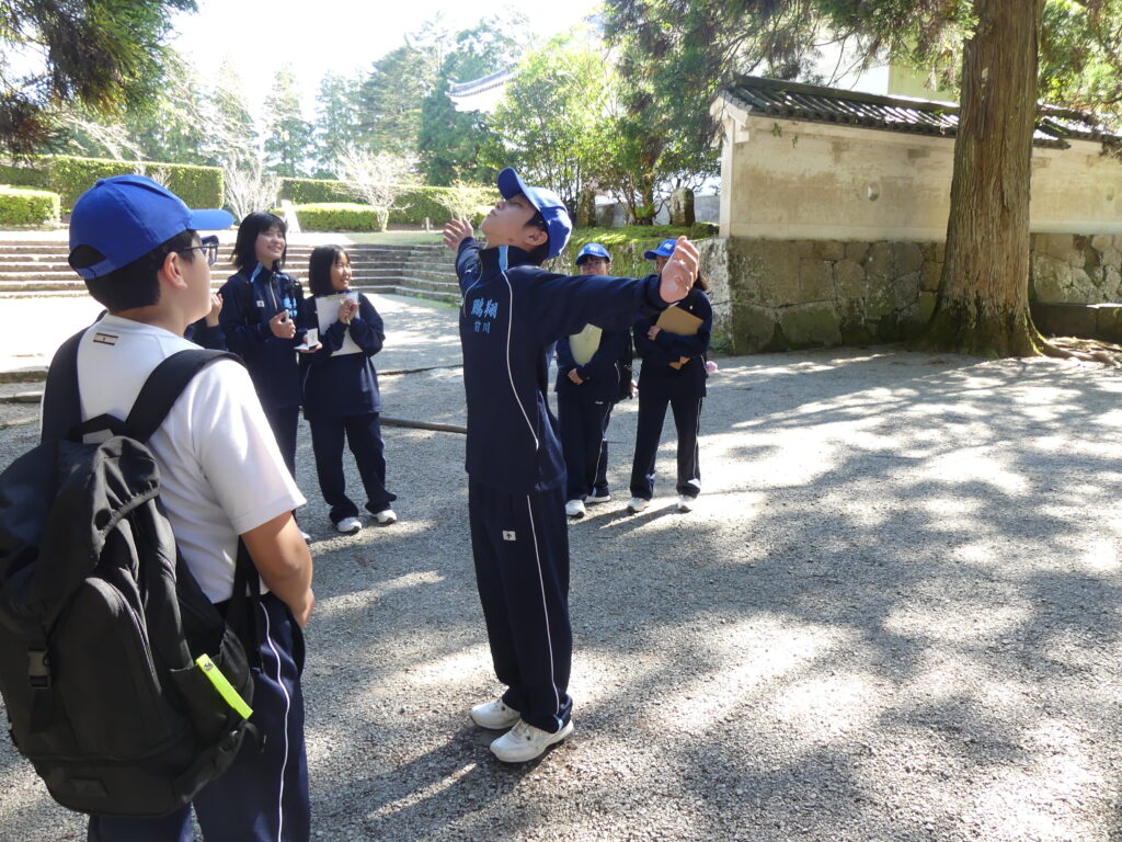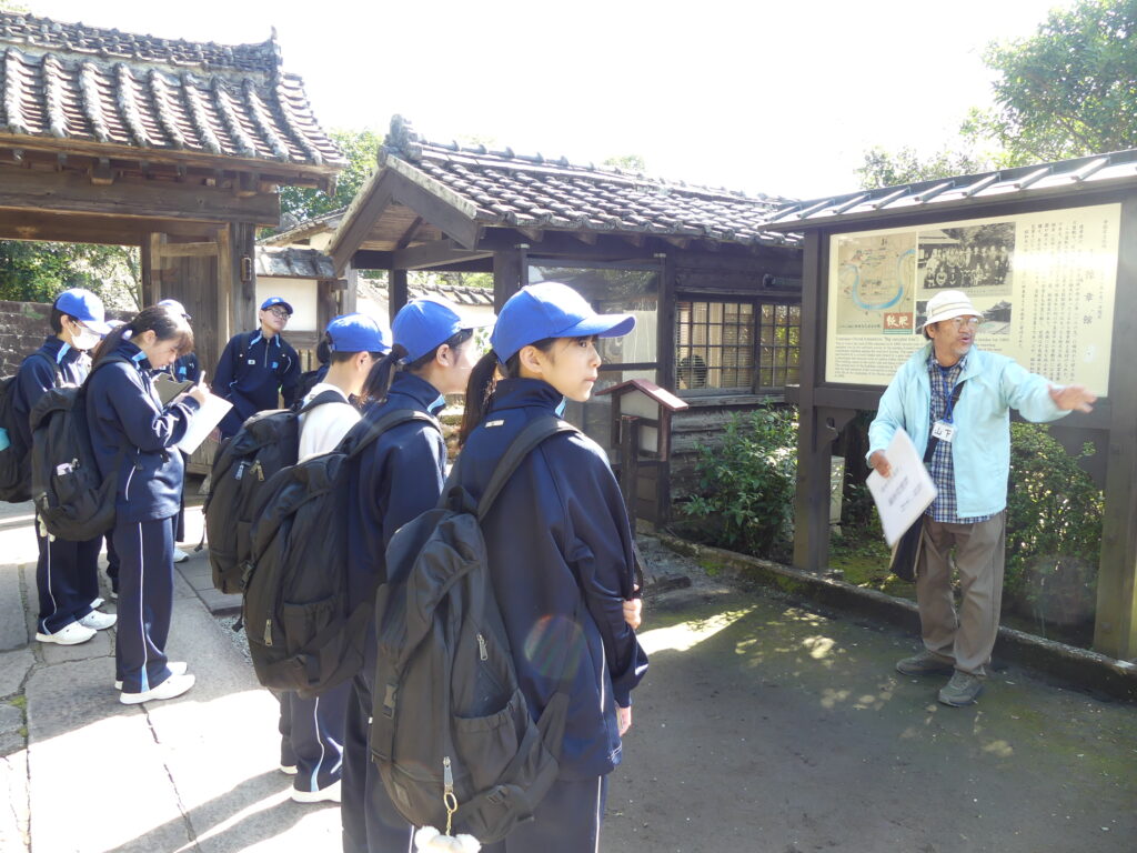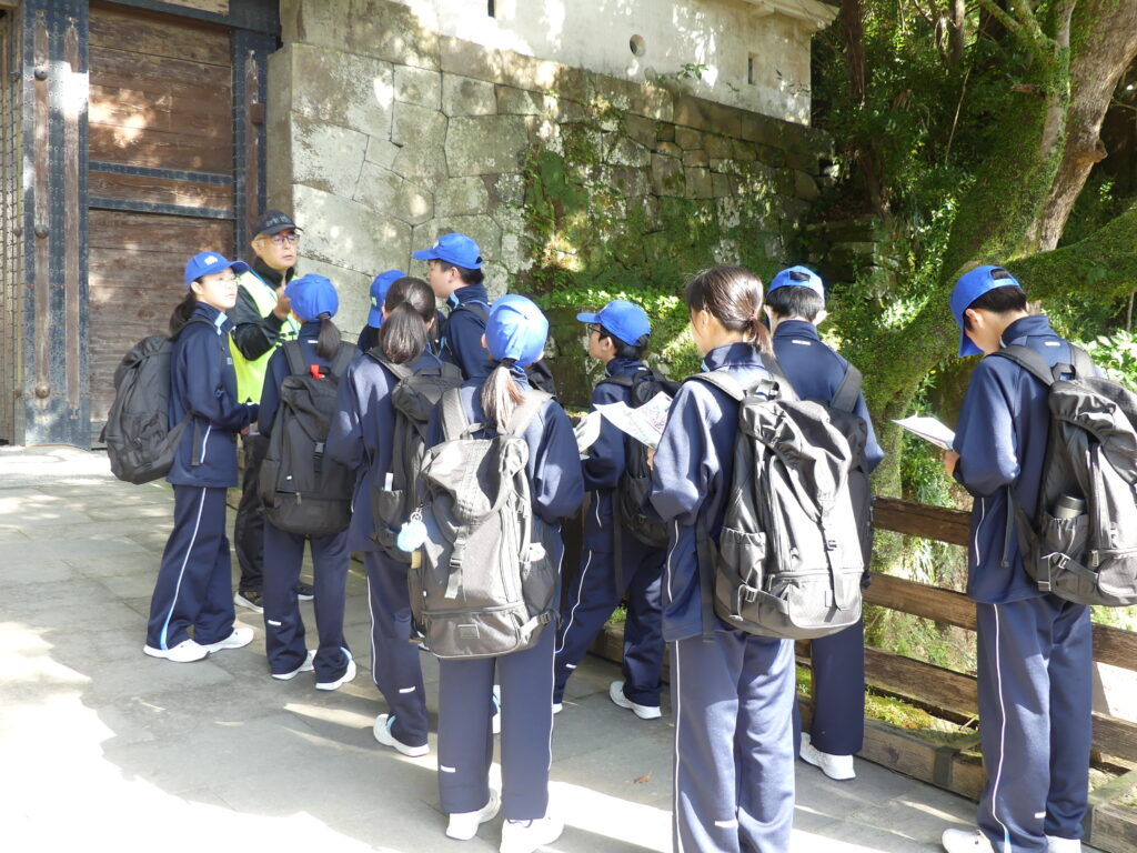 10月28日(火)、J2生が福岡で英語研修を受けている一方で、J1生は 重要伝統的建造物群保存地区 である日南市の飫肥城周辺を散策し、ガイドボランティアの方々の説明・案内をたよりに飫肥城下町の歴史に触れ、地域の歴史に対する理解を深めました。J1生徒80名全員が参加できたこと、また天候にも恵まれ、病気・ケガなどなく終了できたことを本当に嬉しく思います。
