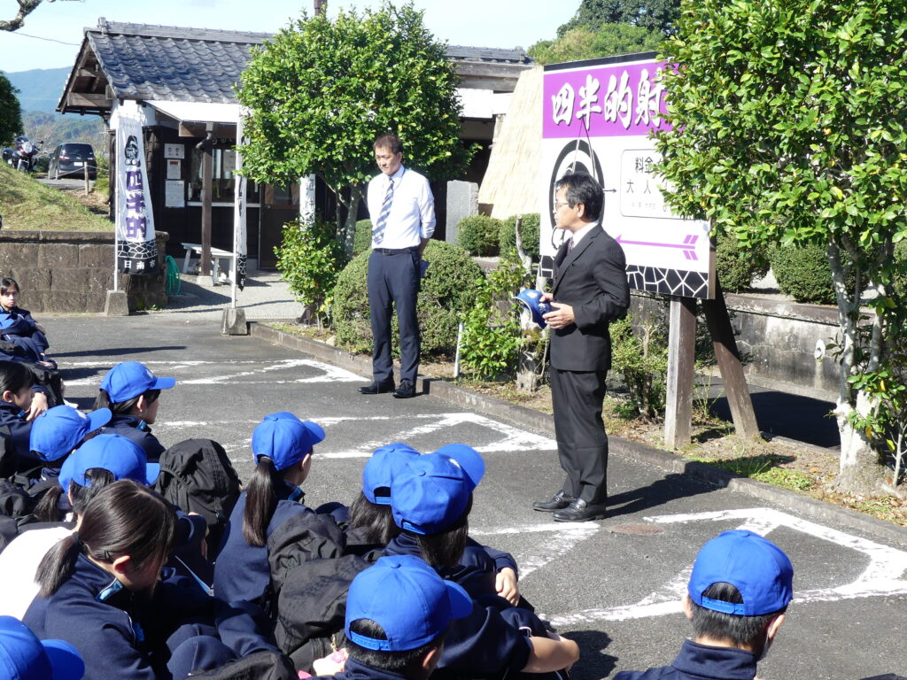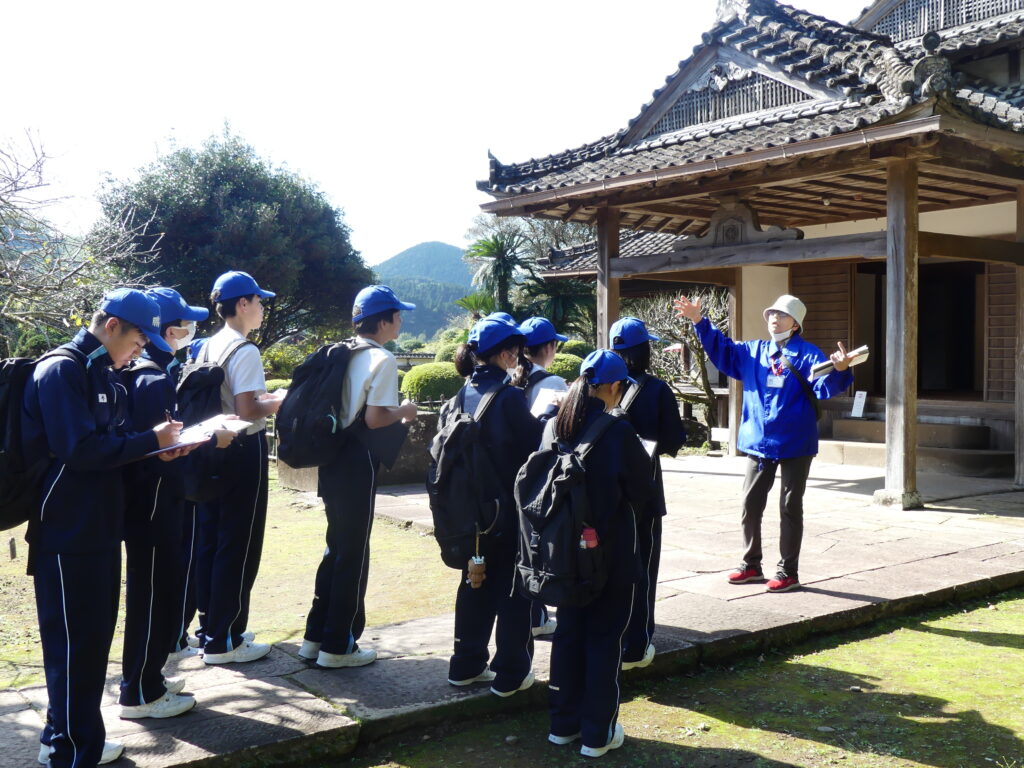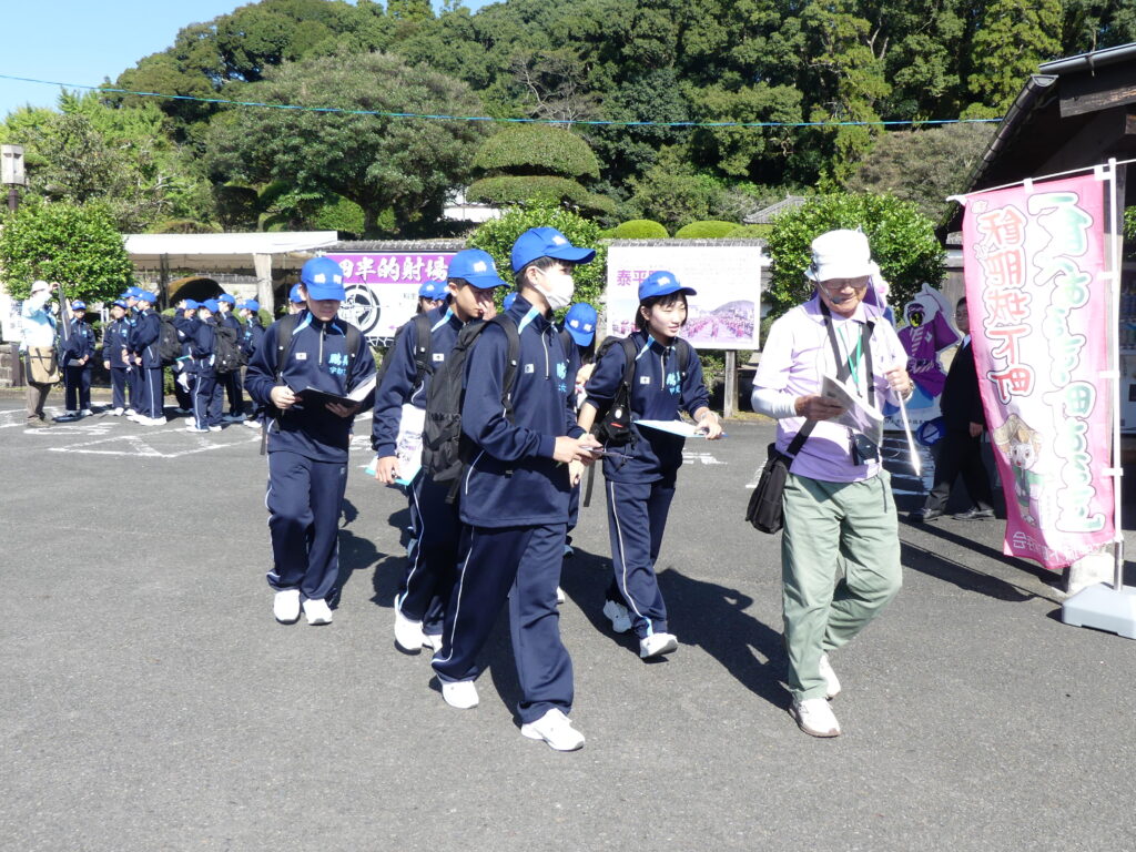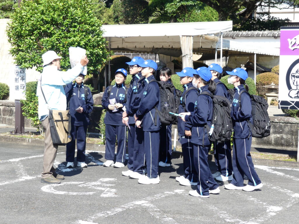 10月28日(火)、J2生が福岡で英語研修を受けている一方で、J1生は 重要伝統的建造物群保存地区 である日南市の飫肥城周辺を散策し、ガイドボランティアの方々の説明・案内をたよりに飫肥城下町の歴史に触れ、地域の歴史に対する理解を深めました。J1生徒80名全員が参加できたこと、また天候にも恵まれ、病気・ケガなどなく終了できたことを本当に嬉しく思います。