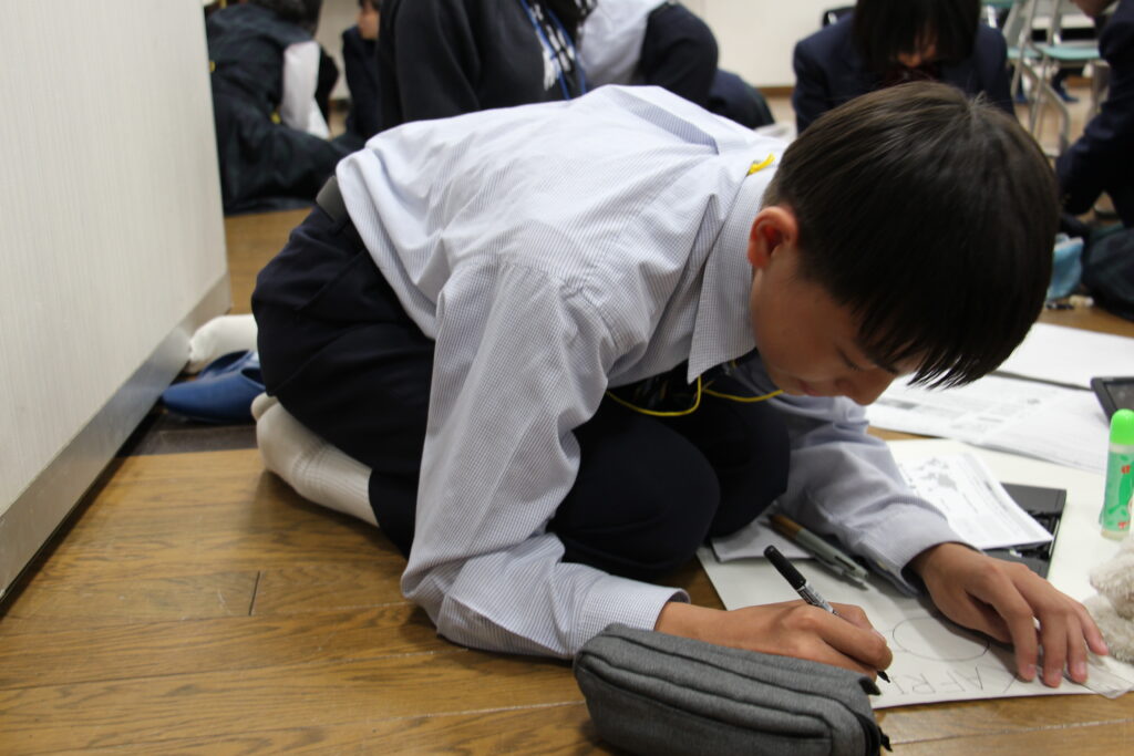 発表の様子です。書き方や伝え方に迷ったときはリーダーにアドバイスをもらいながら、自分たちで工夫を凝らし素晴らしい発表をしてくれました。