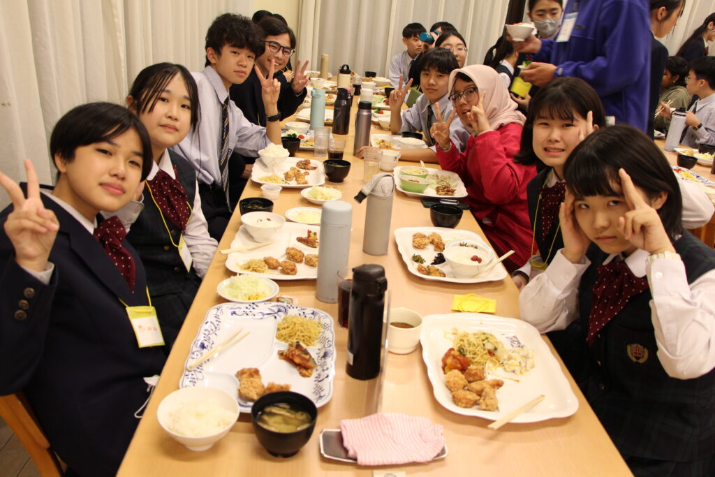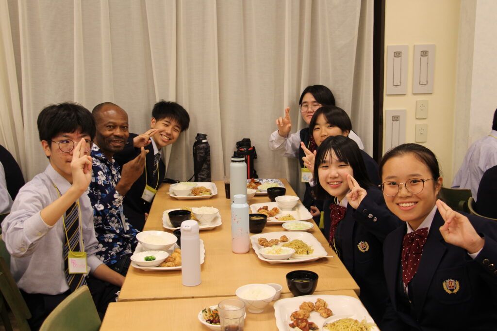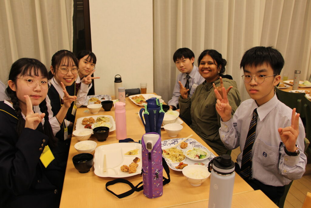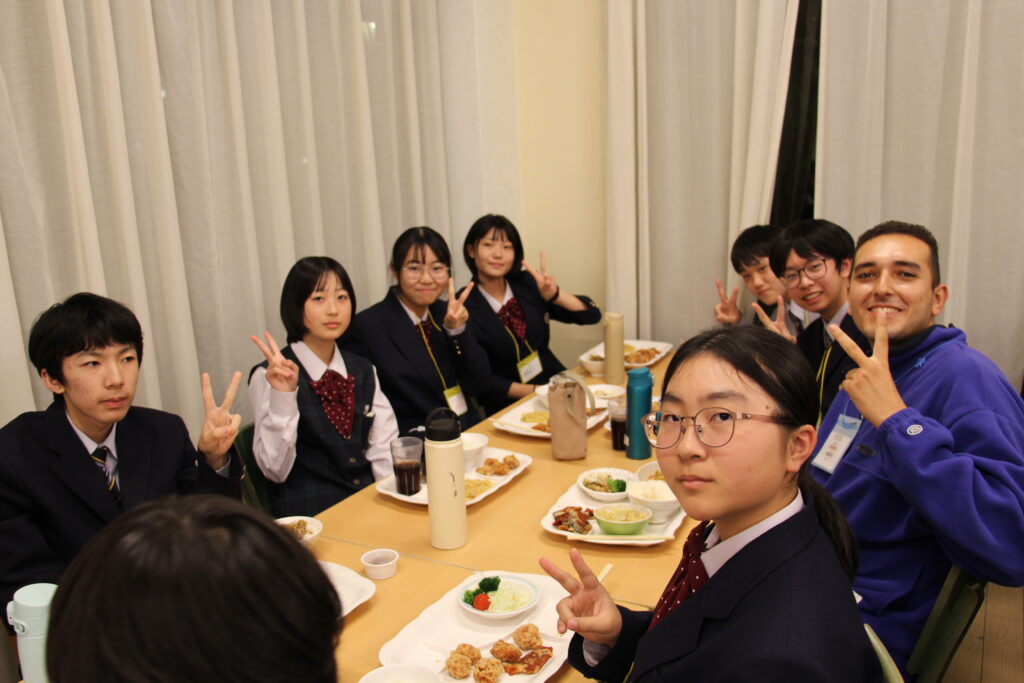 活動後は、グローバルリーダーと一緒に夕食の時間です。