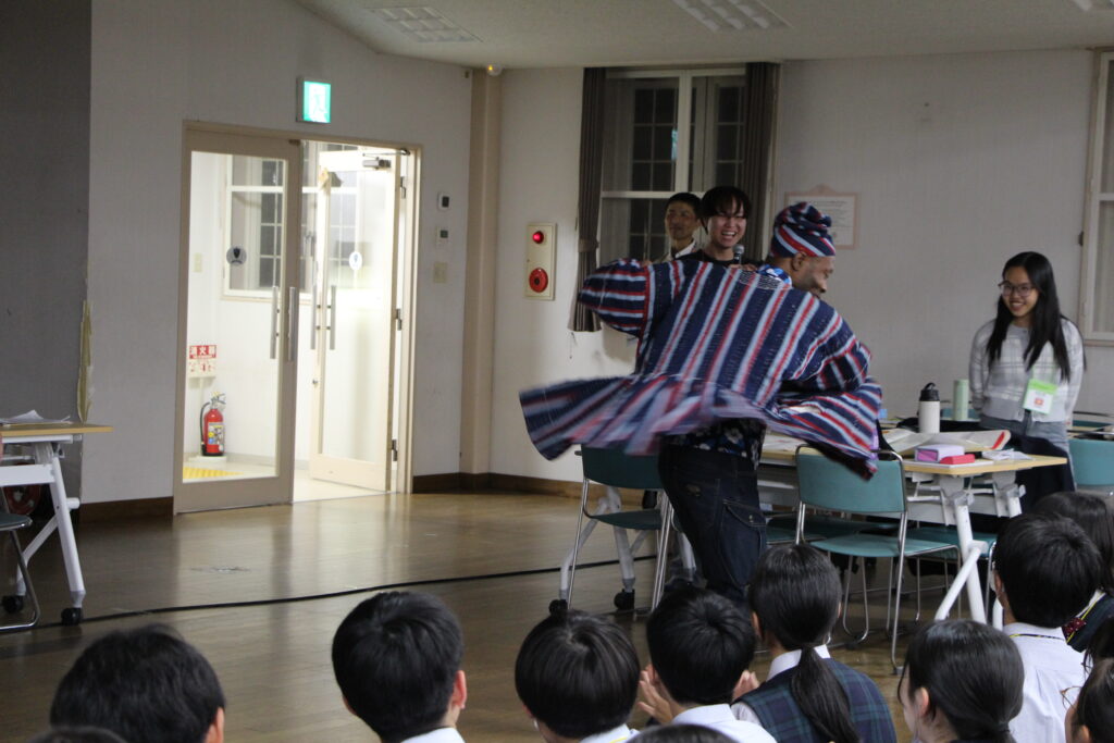 夕食後、本日最後の研修の時間です。グローバルリーダーによるファッションショーです!その後、ソーラン節をみんなで踊りました。大盛り上がりでした!!