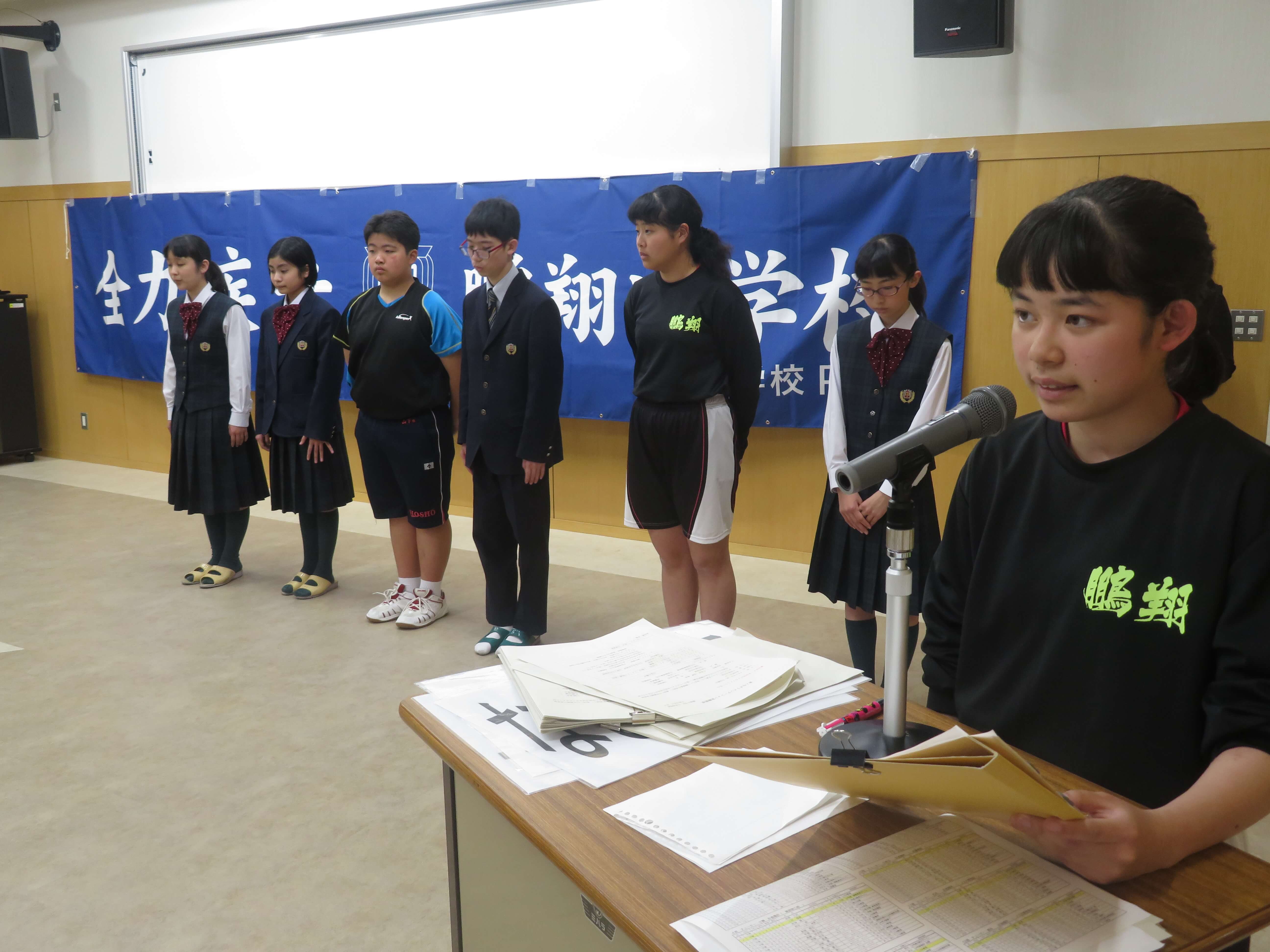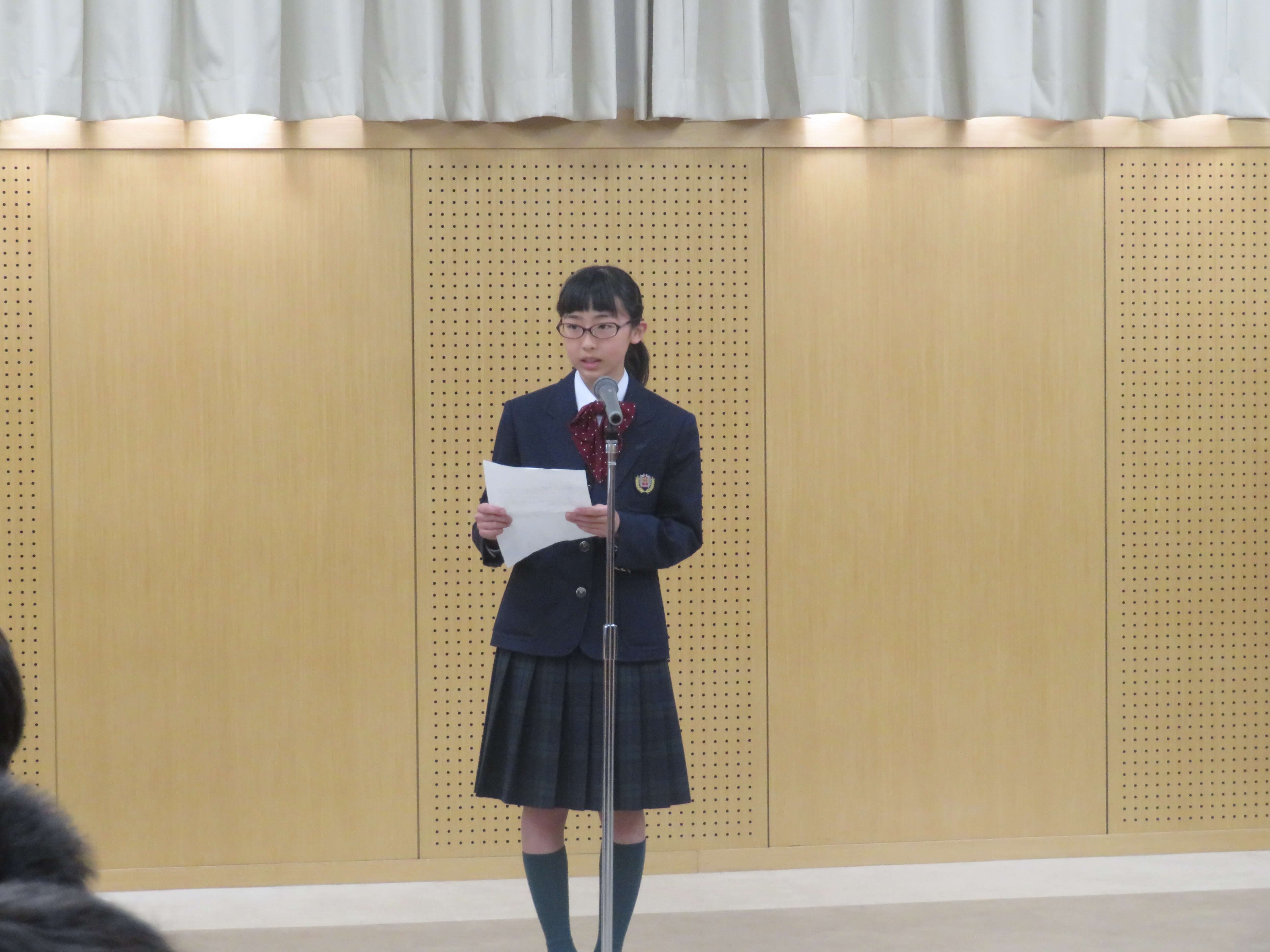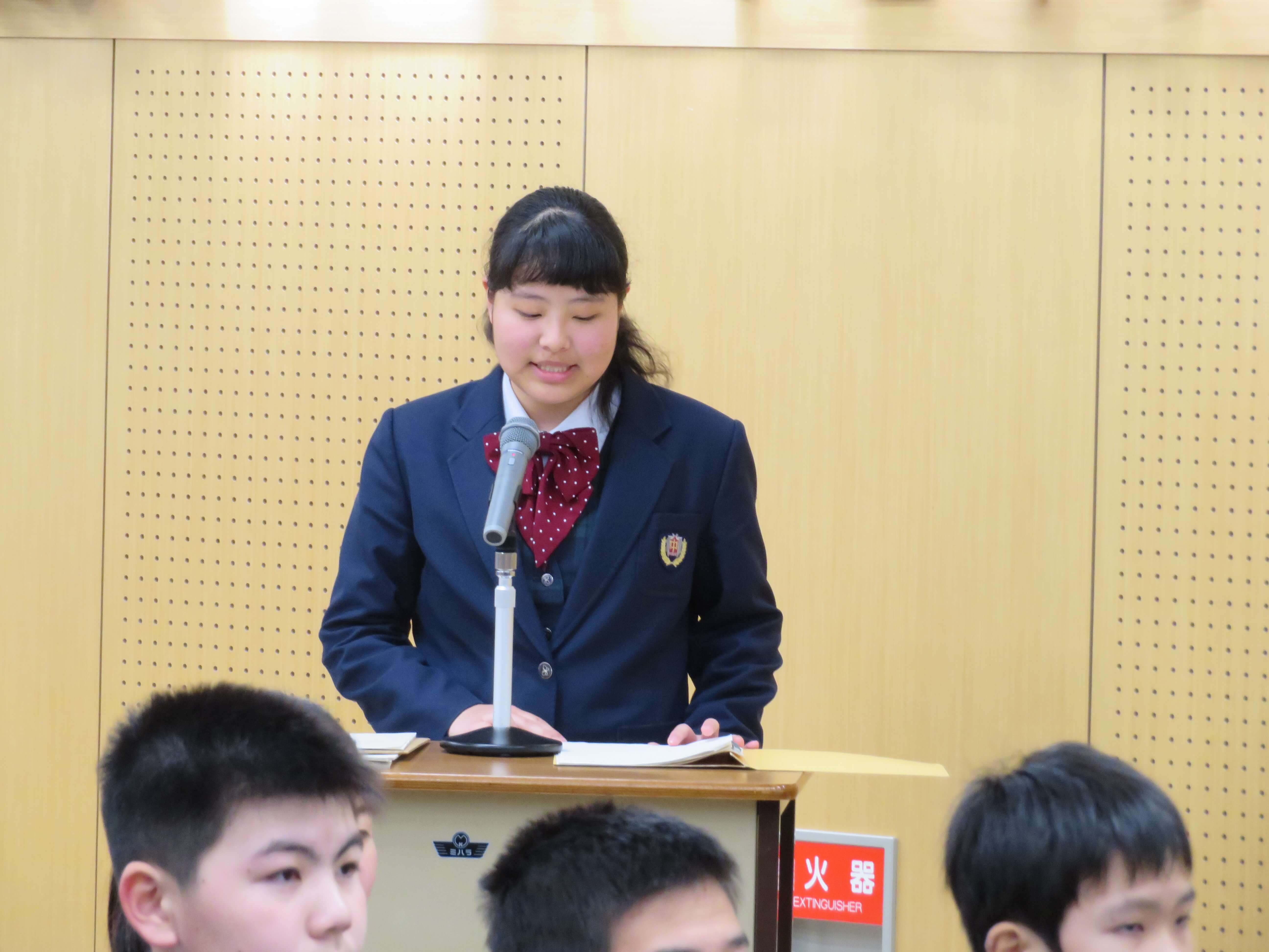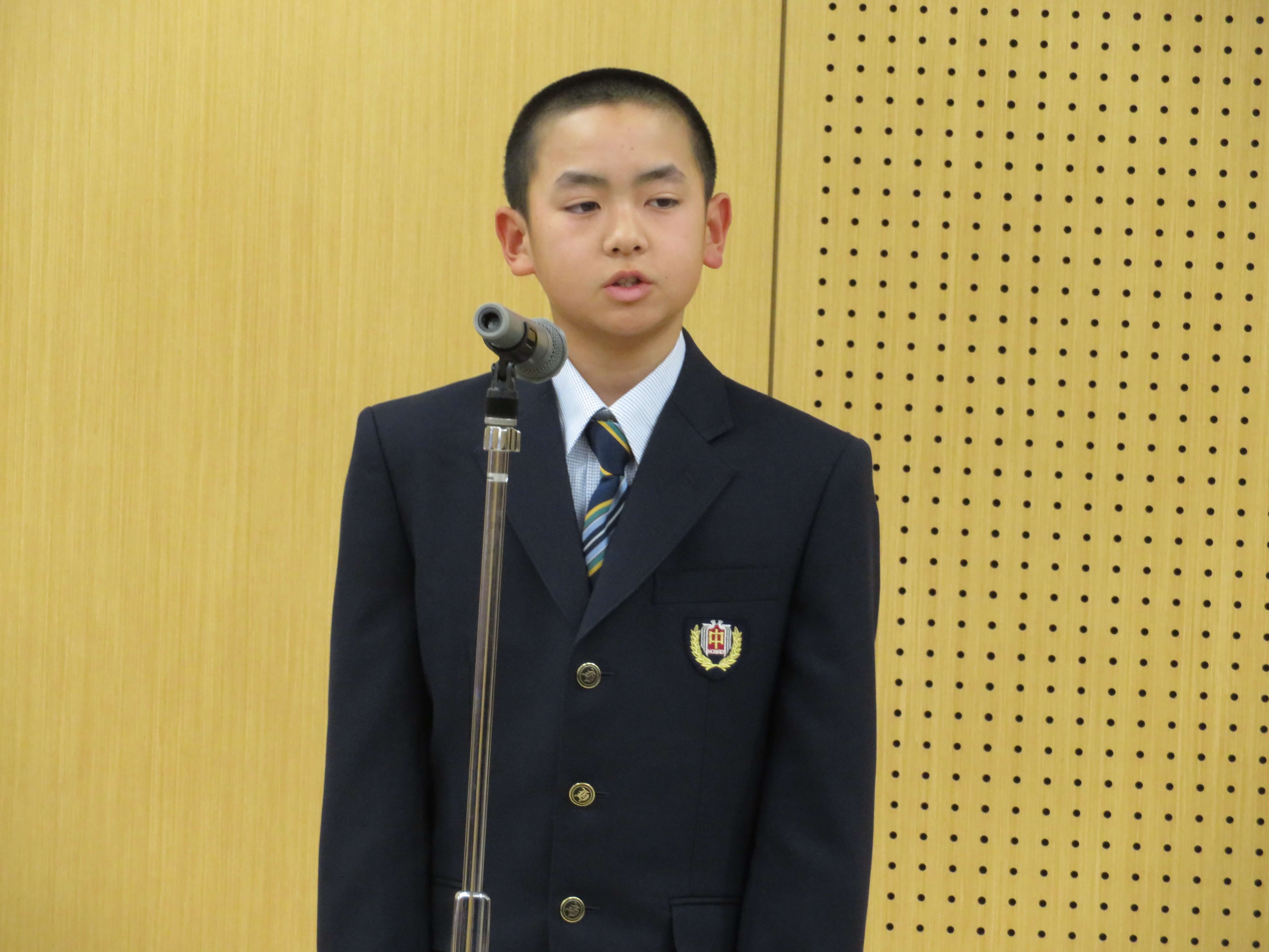 J1生への挨拶は、佐藤知優さん。J1生からJ2・J3生への挨拶を伊藤優音くんが行いました。