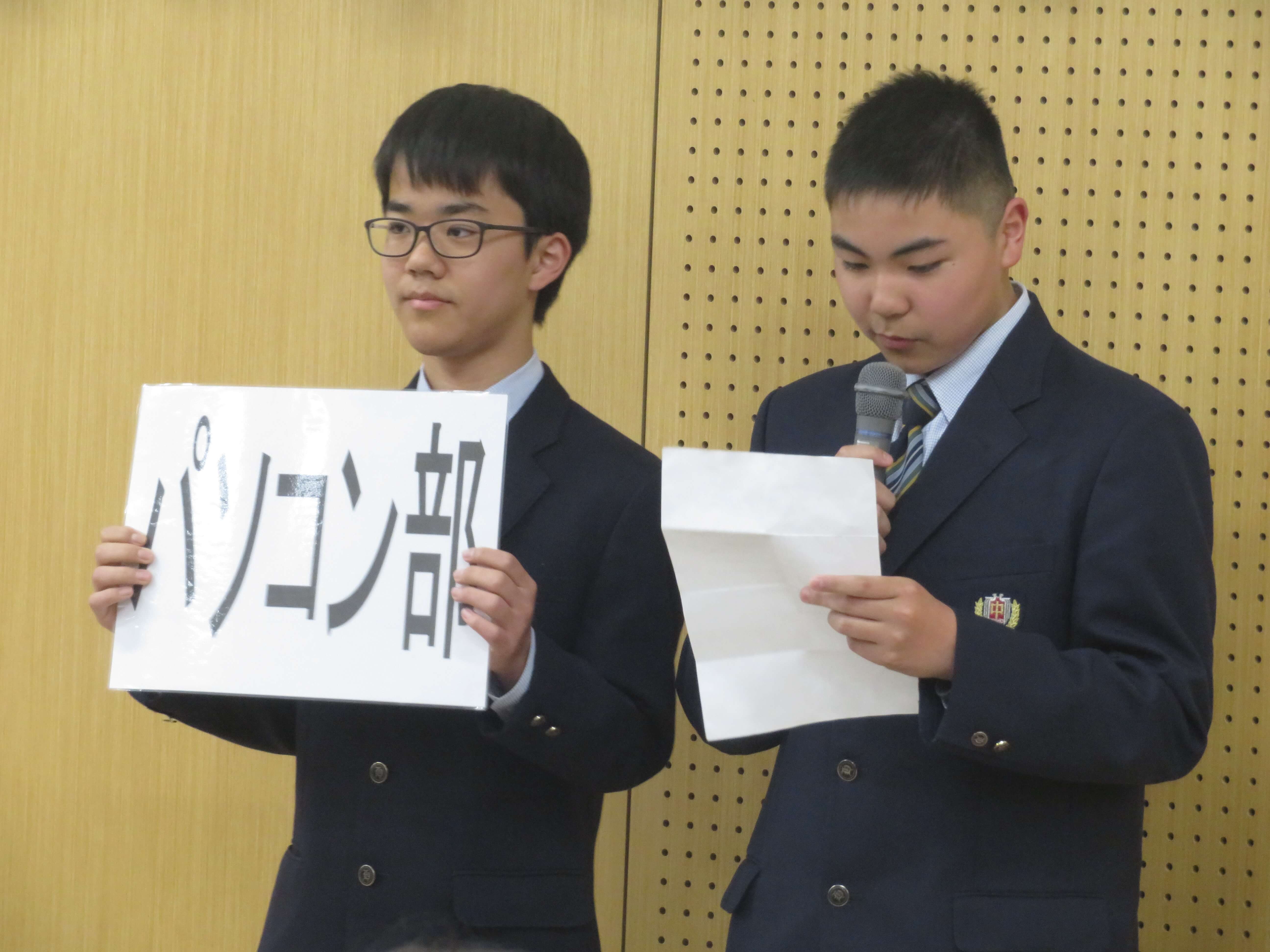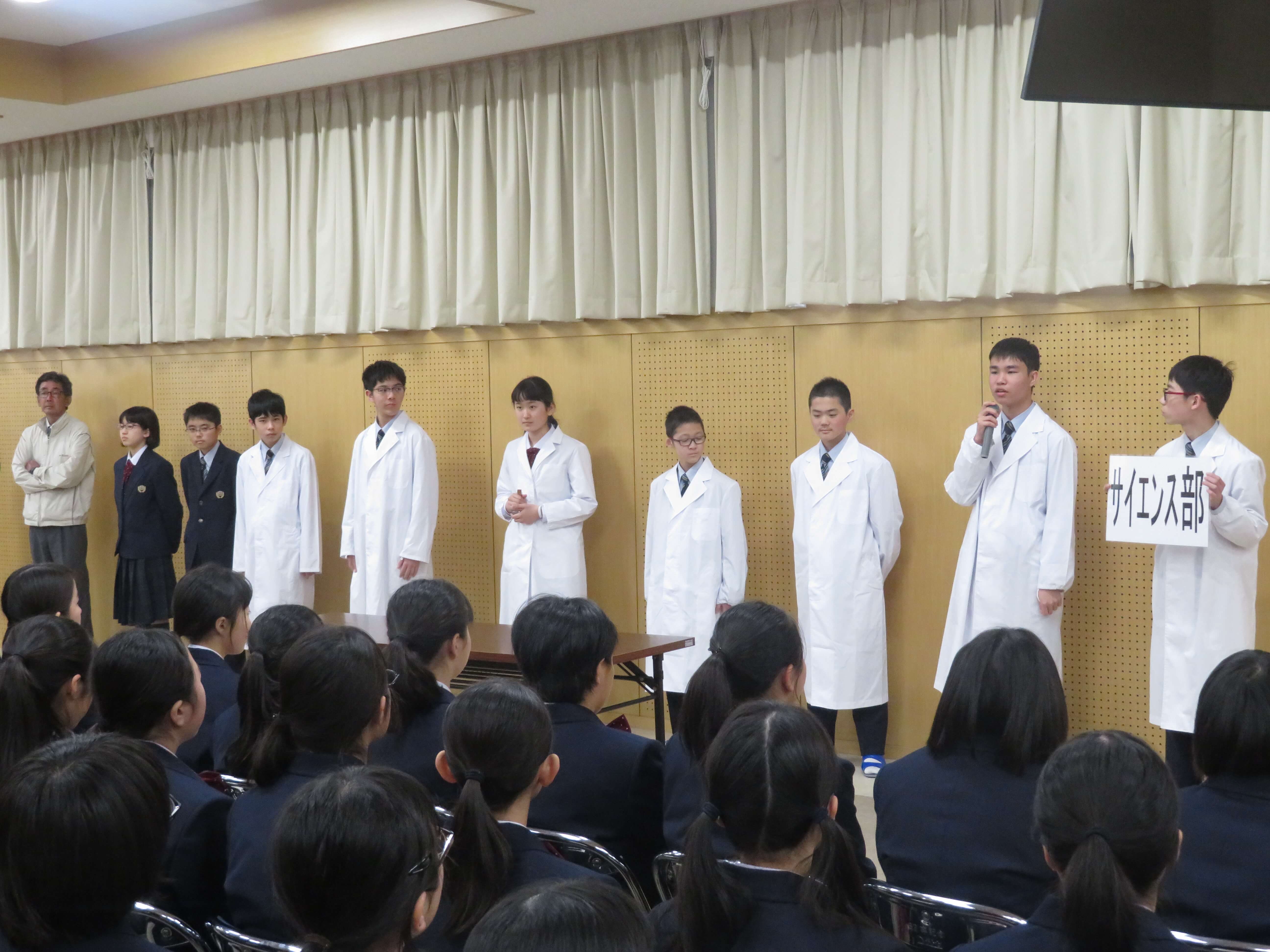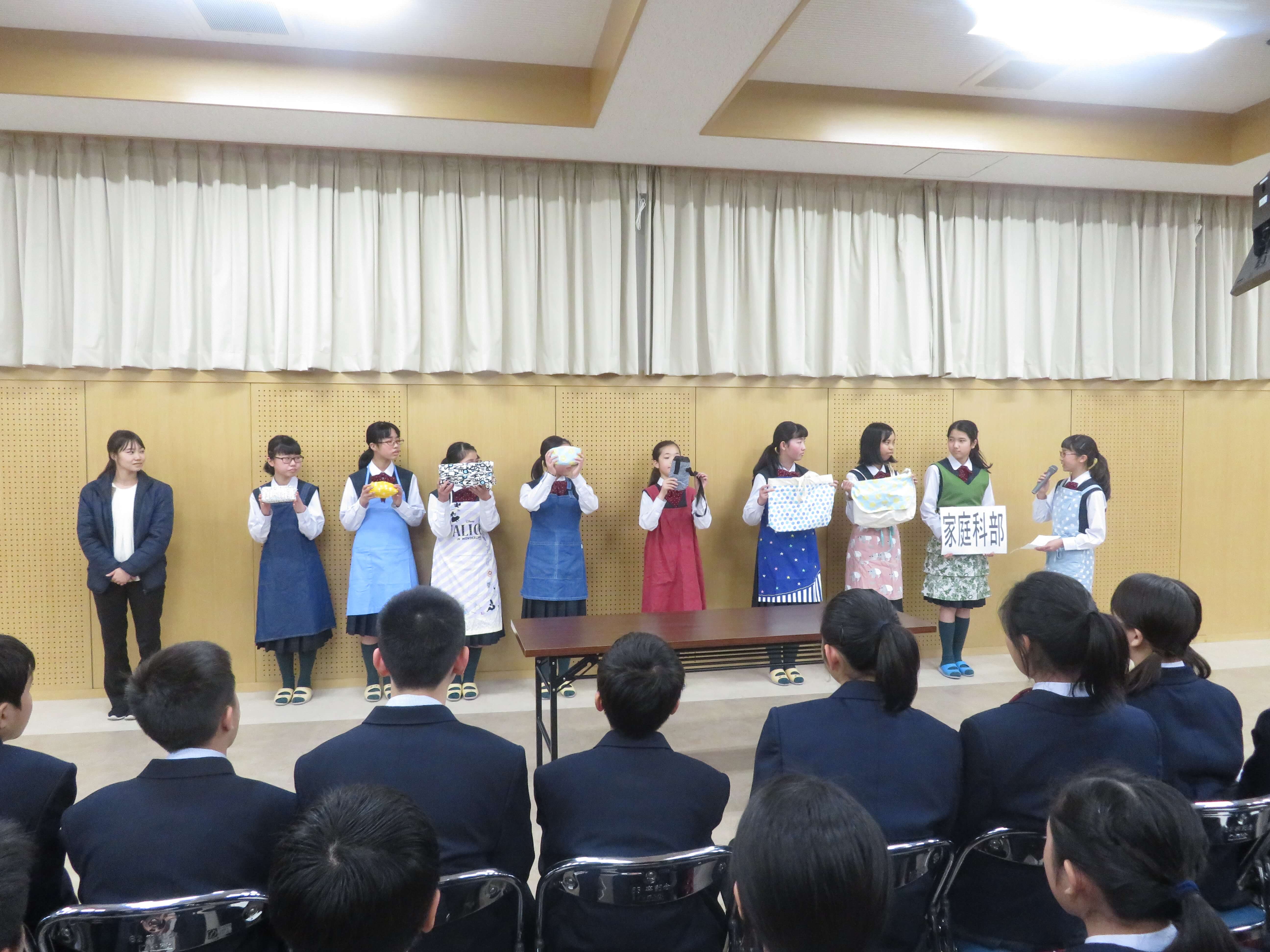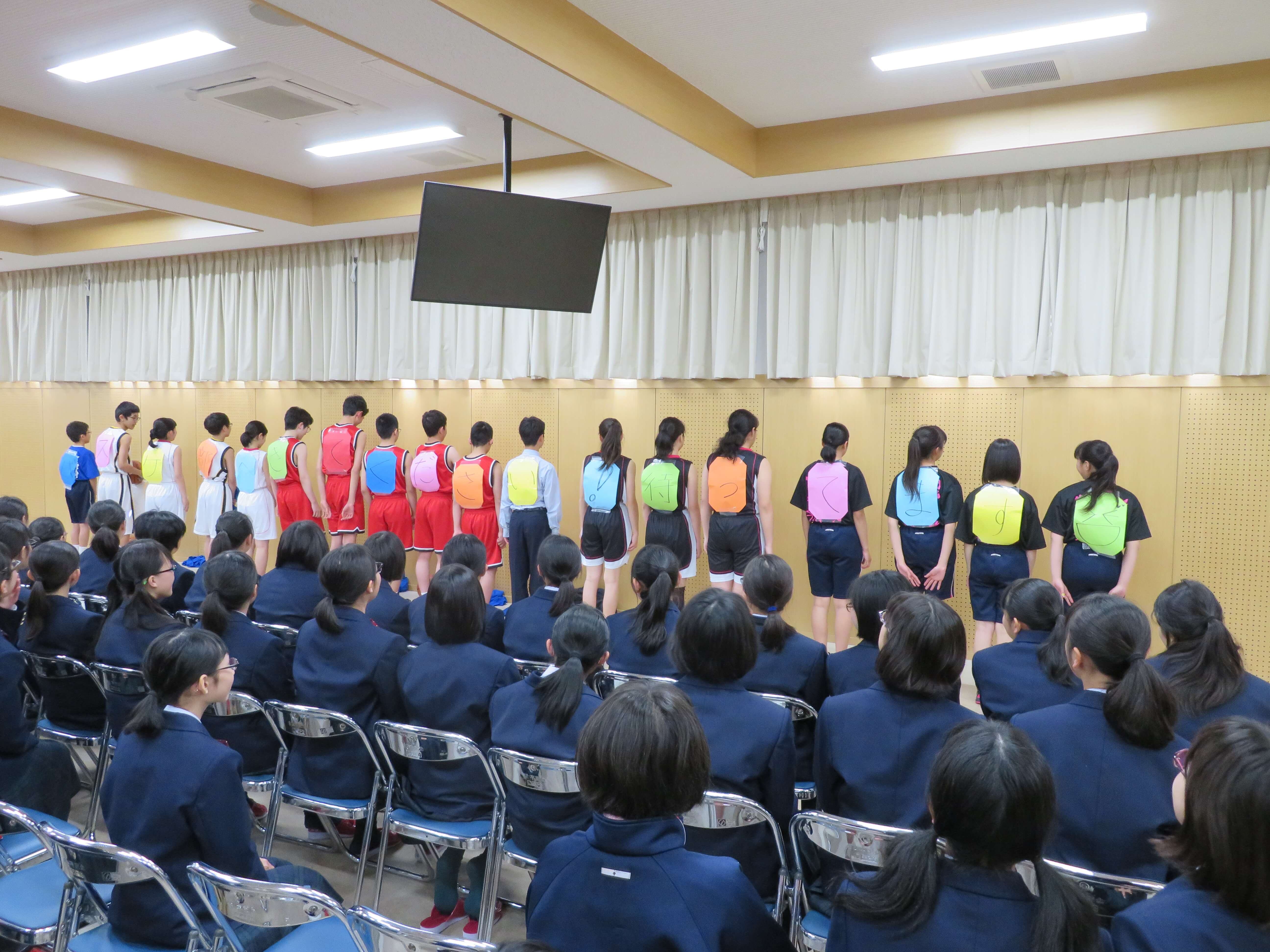 今日は、生徒会企画のファミリー対面式、部活動紹介が午前中行われました。昨日の部活動時間にJ2・J3生の先輩たちがJ1生に楽しんでもらえるよう熱心に打合せしたものを本日お披露目です。