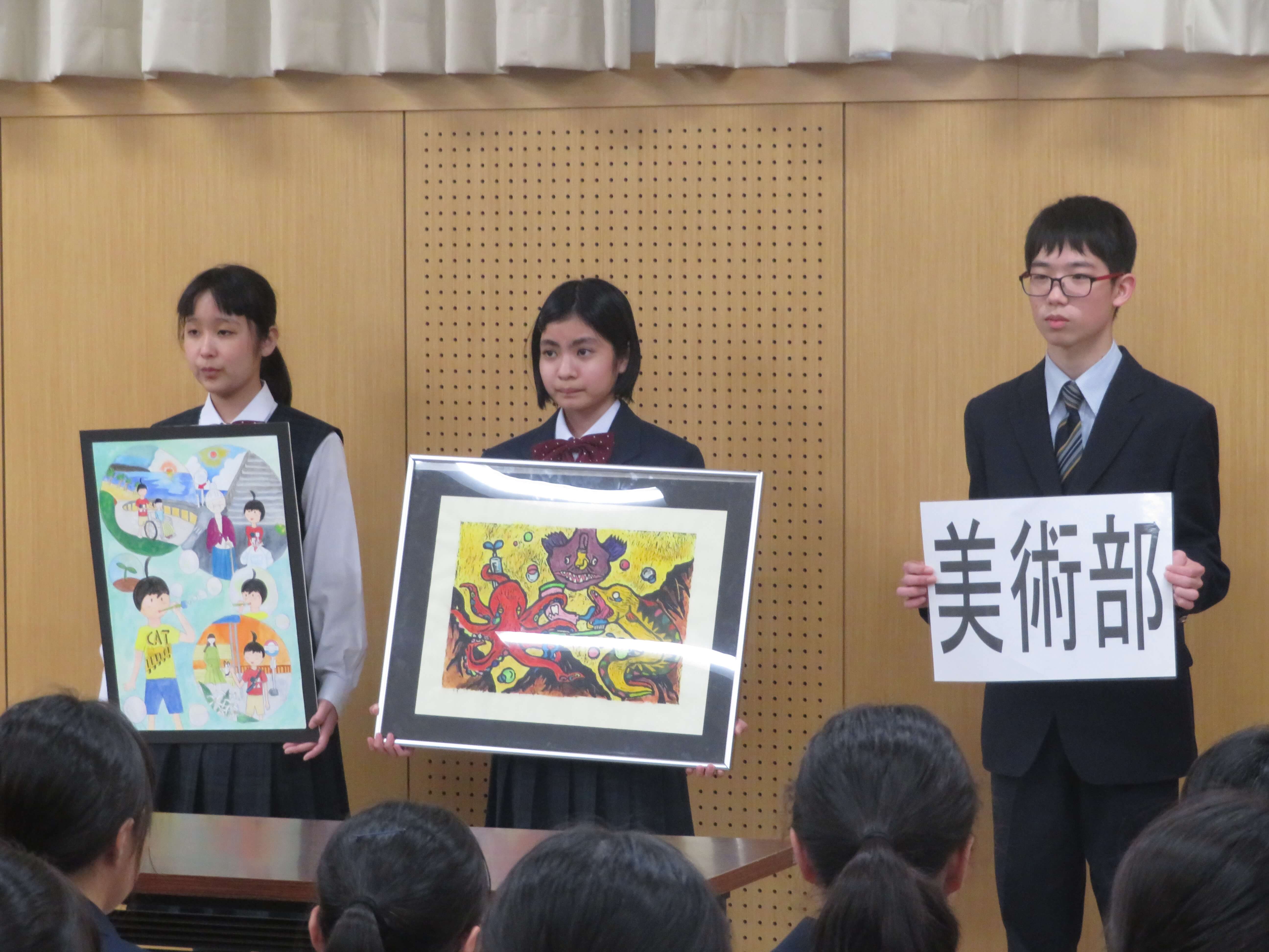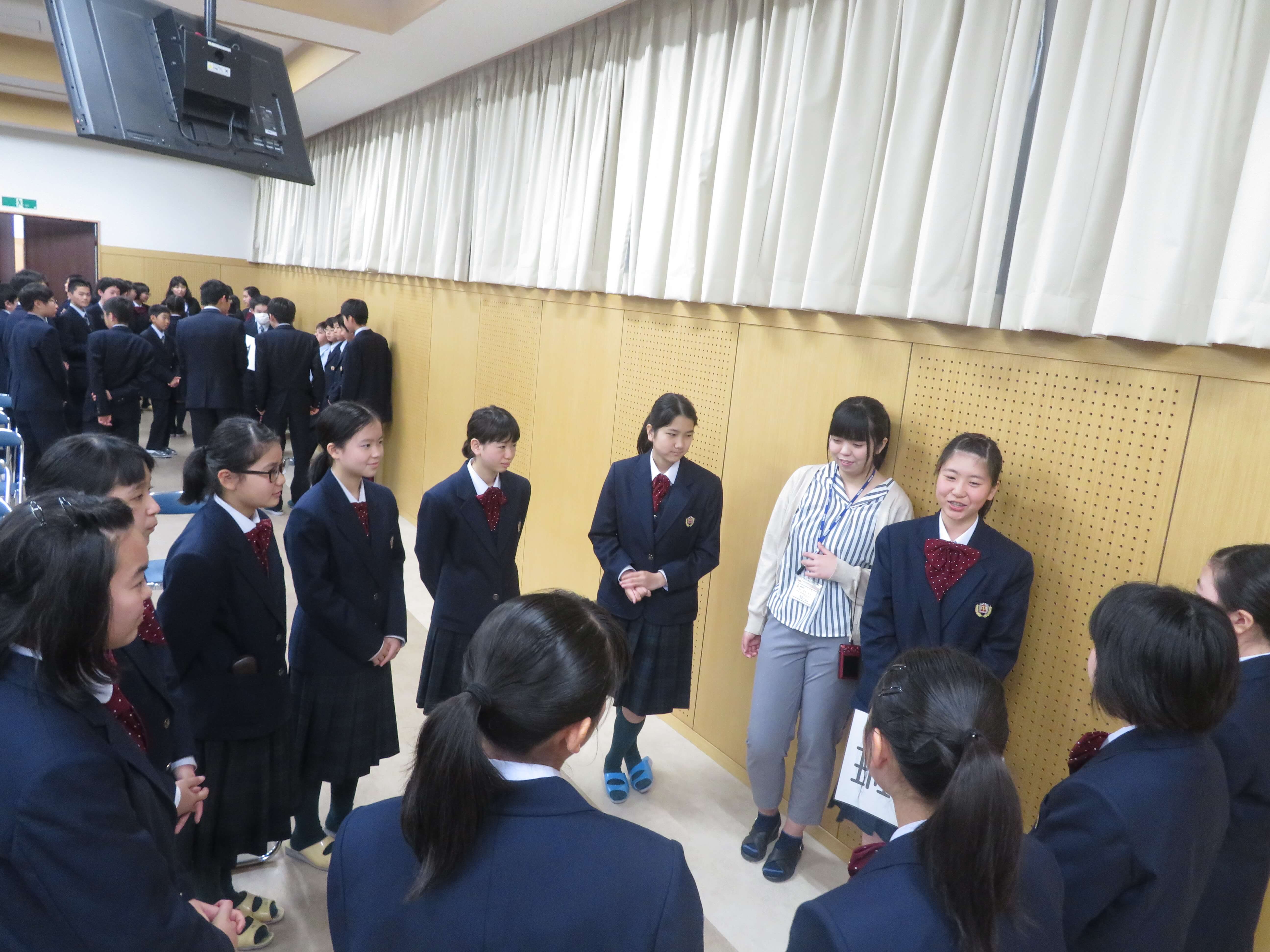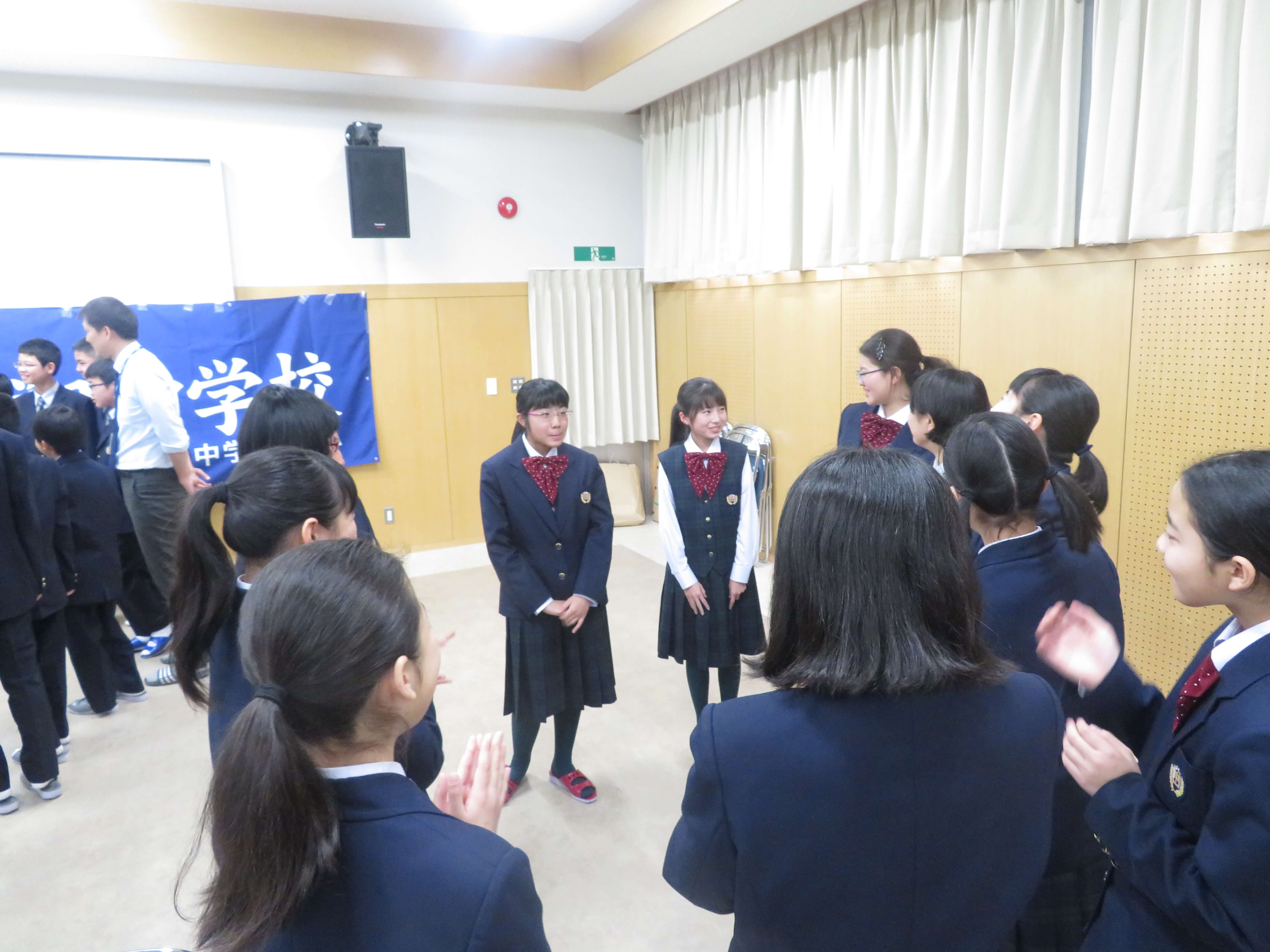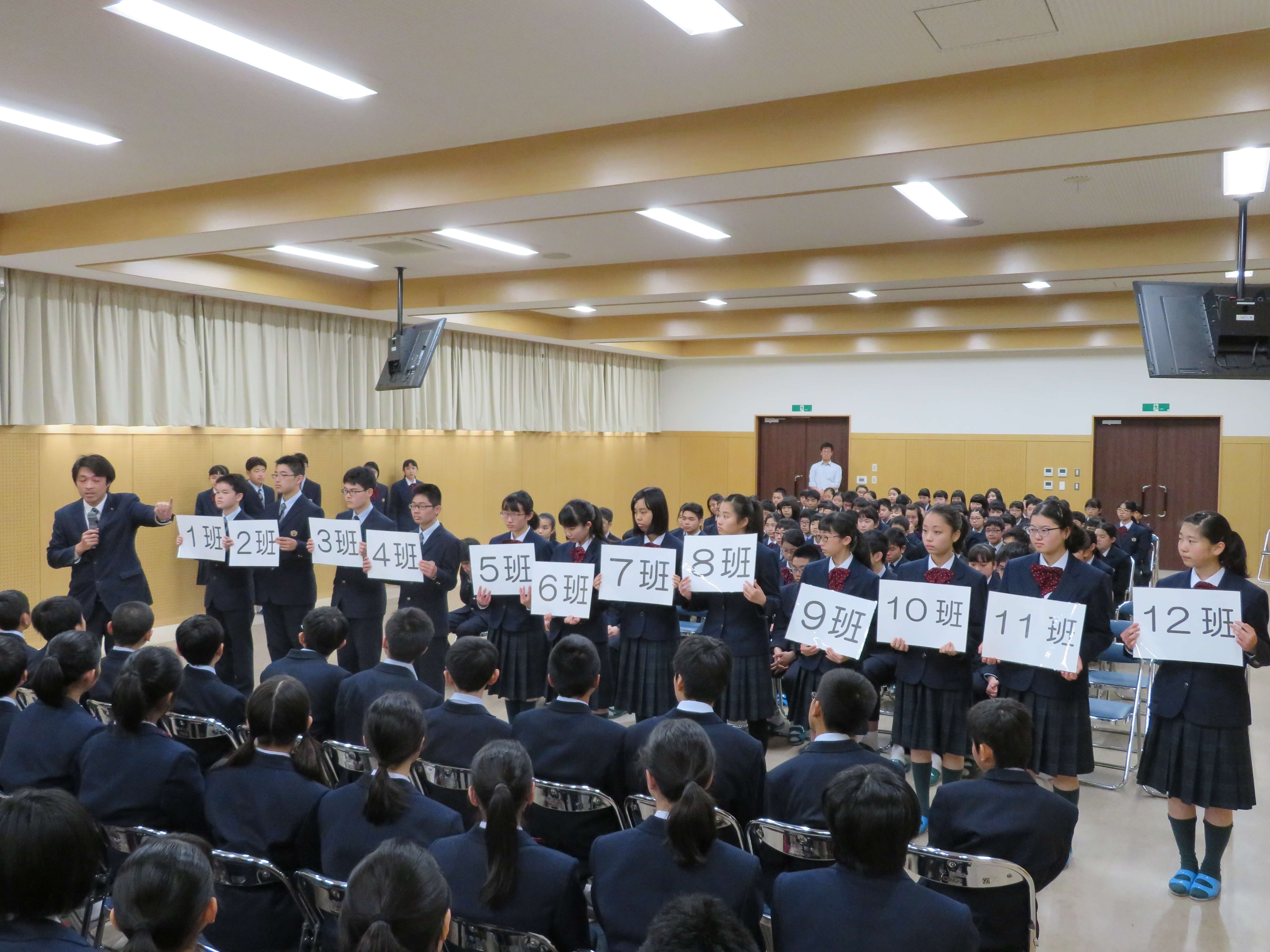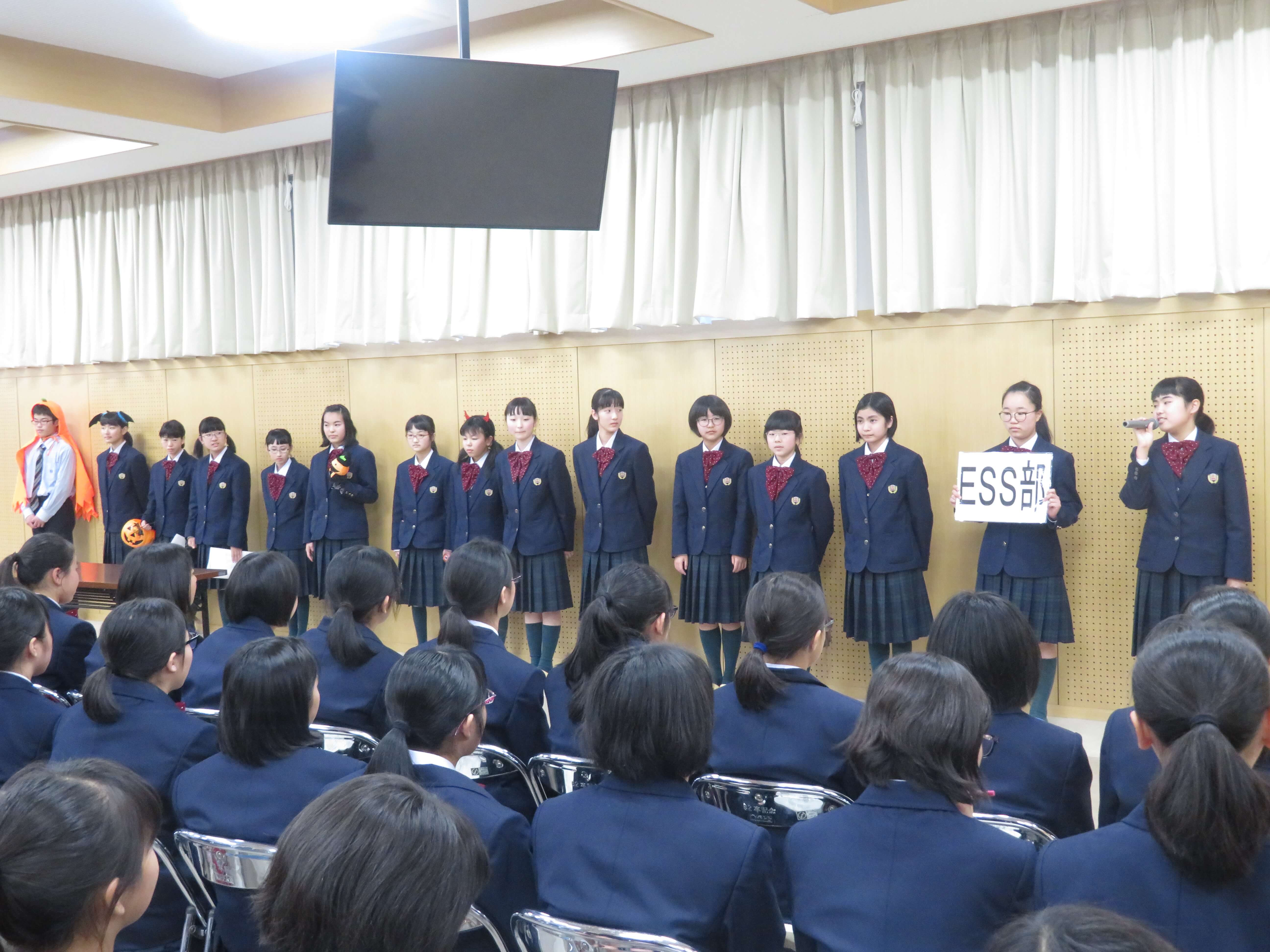 今日は、生徒会企画のファミリー対面式、部活動紹介が午前中行われました。昨日の部活動時間にJ2・J3生の先輩たちがJ1生に楽しんでもらえるよう熱心に打合せしたものを本日お披露目です。