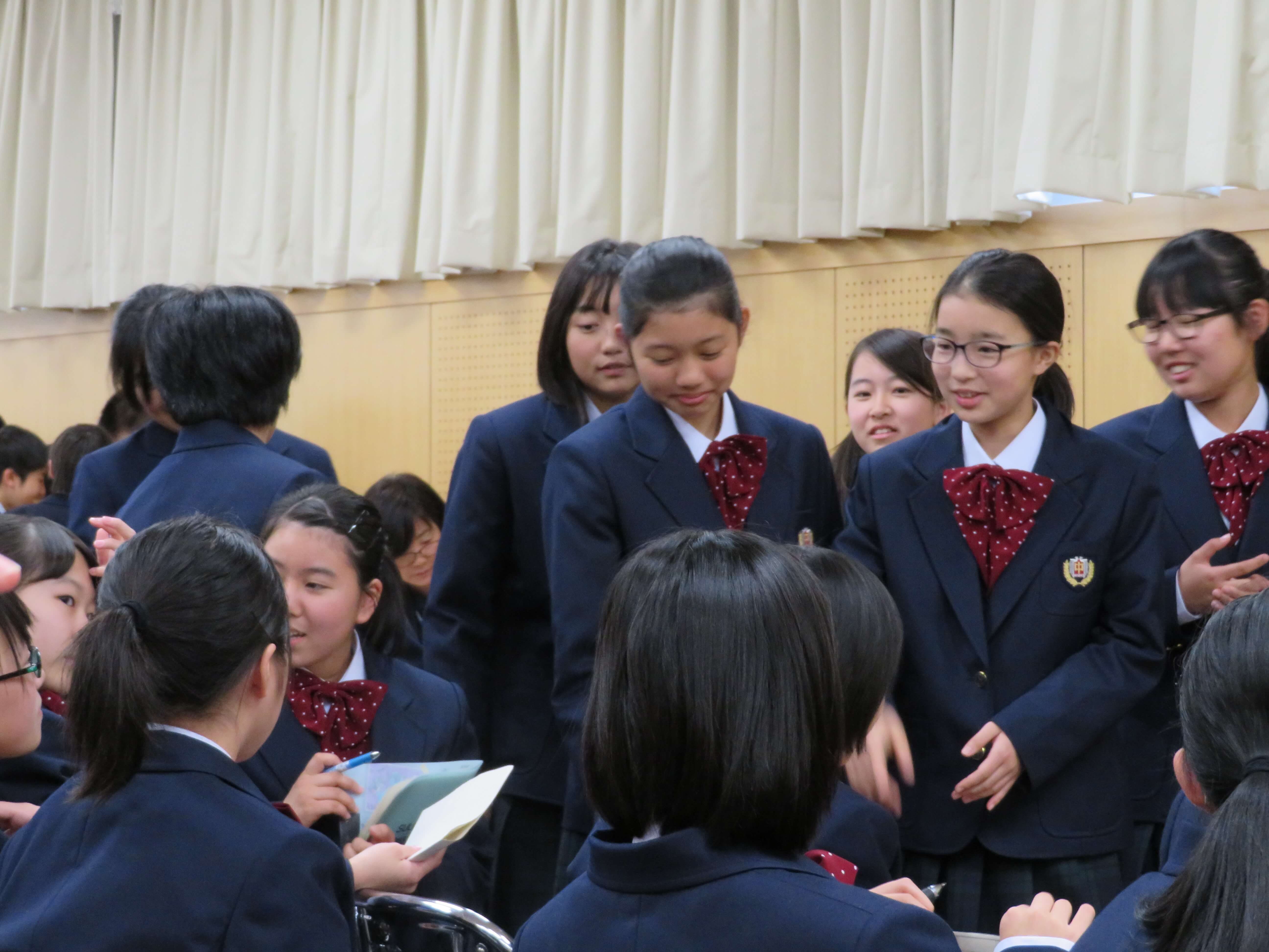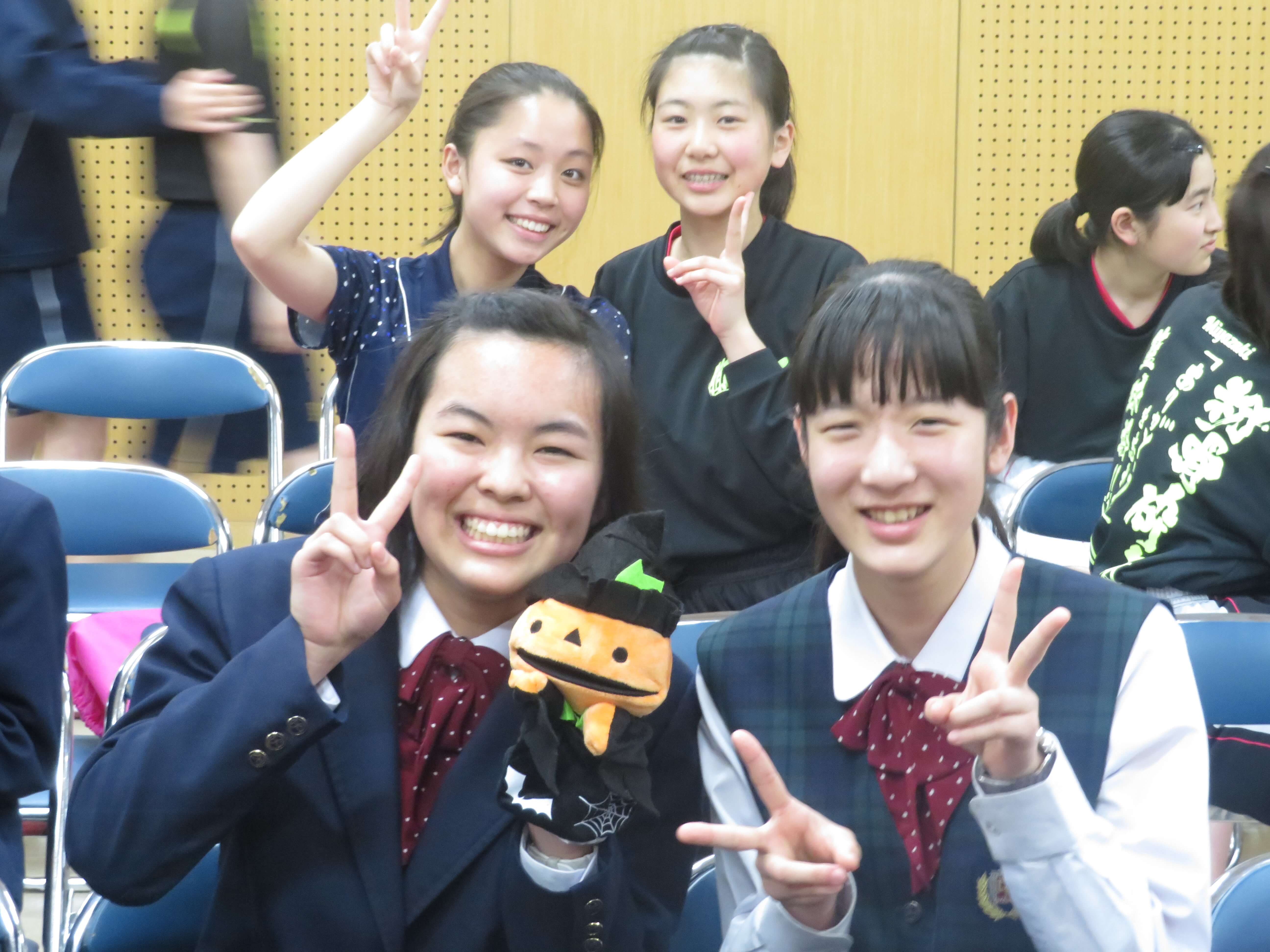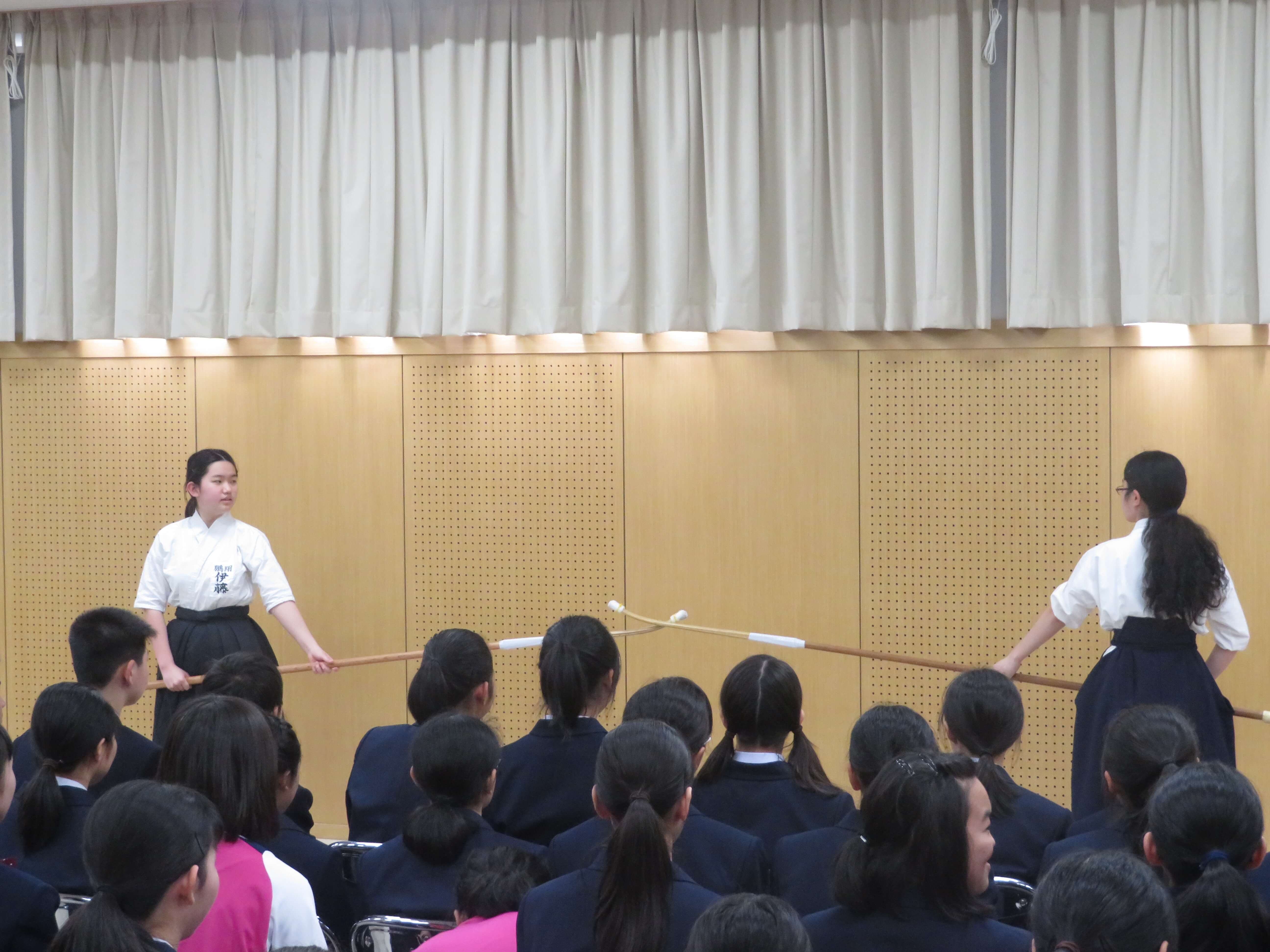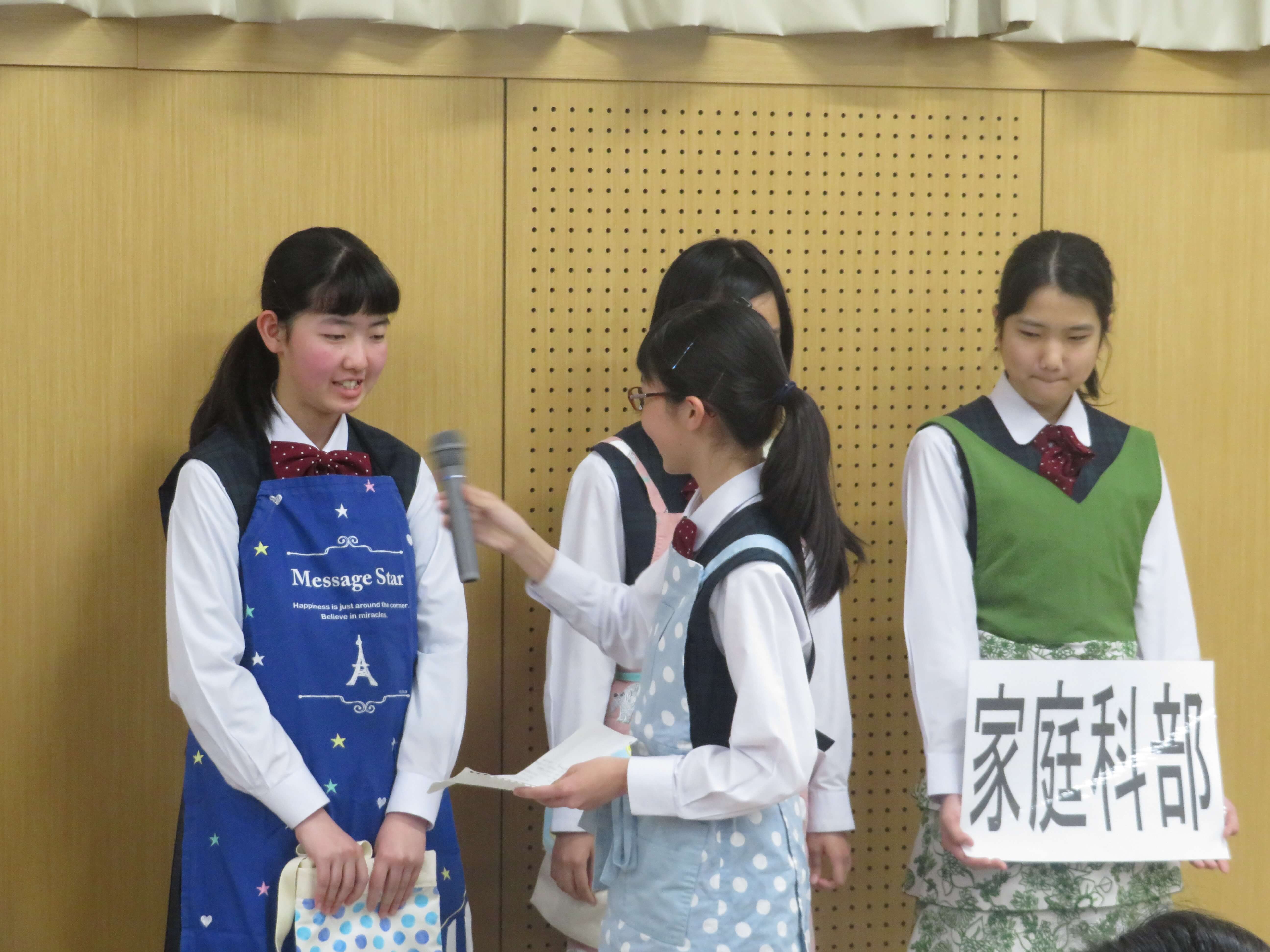 今日は、生徒会企画のファミリー対面式、部活動紹介が午前中行われました。昨日の部活動時間にJ2・J3生の先輩たちがJ1生に楽しんでもらえるよう熱心に打合せしたものを本日お披露目です。