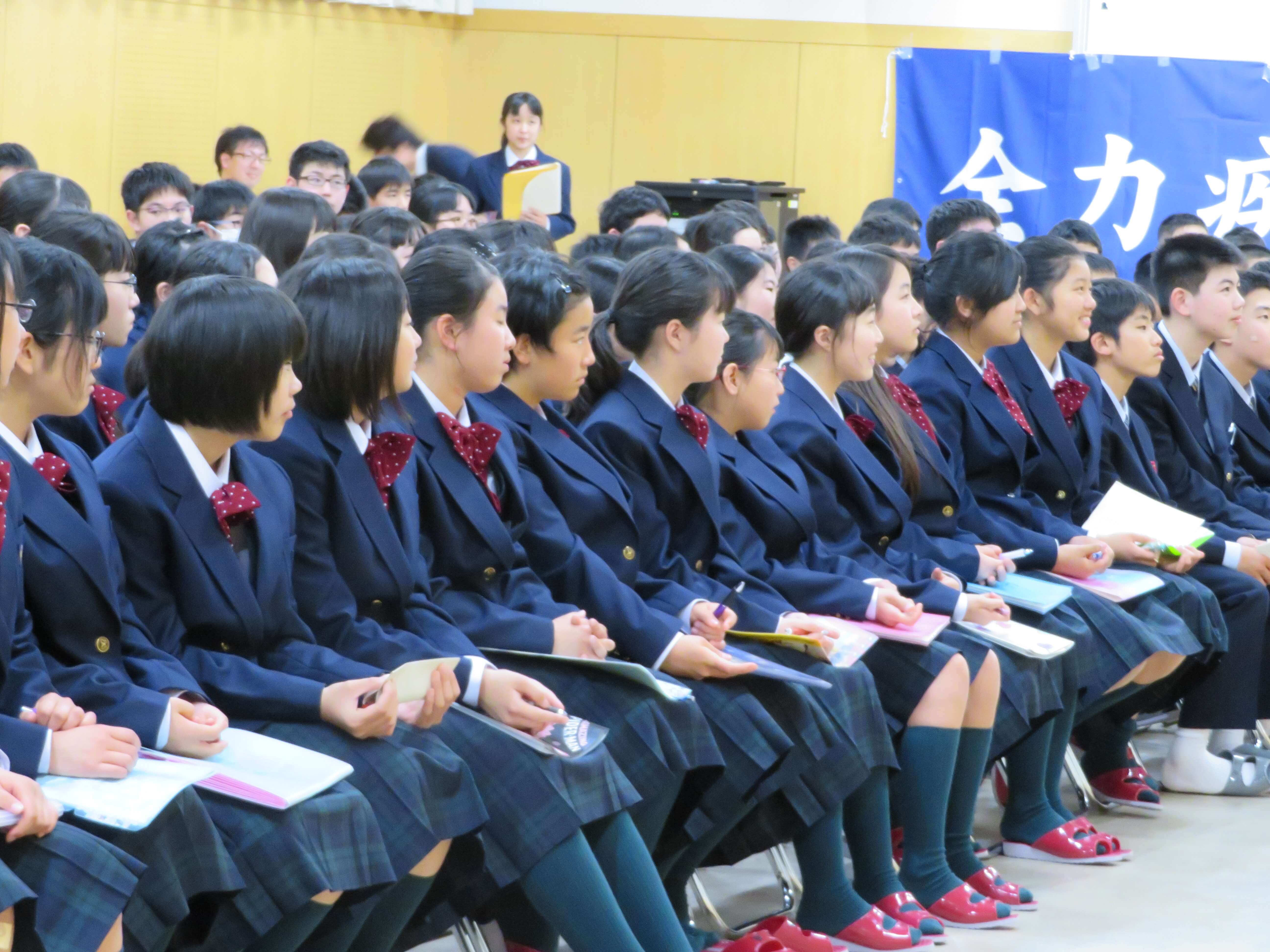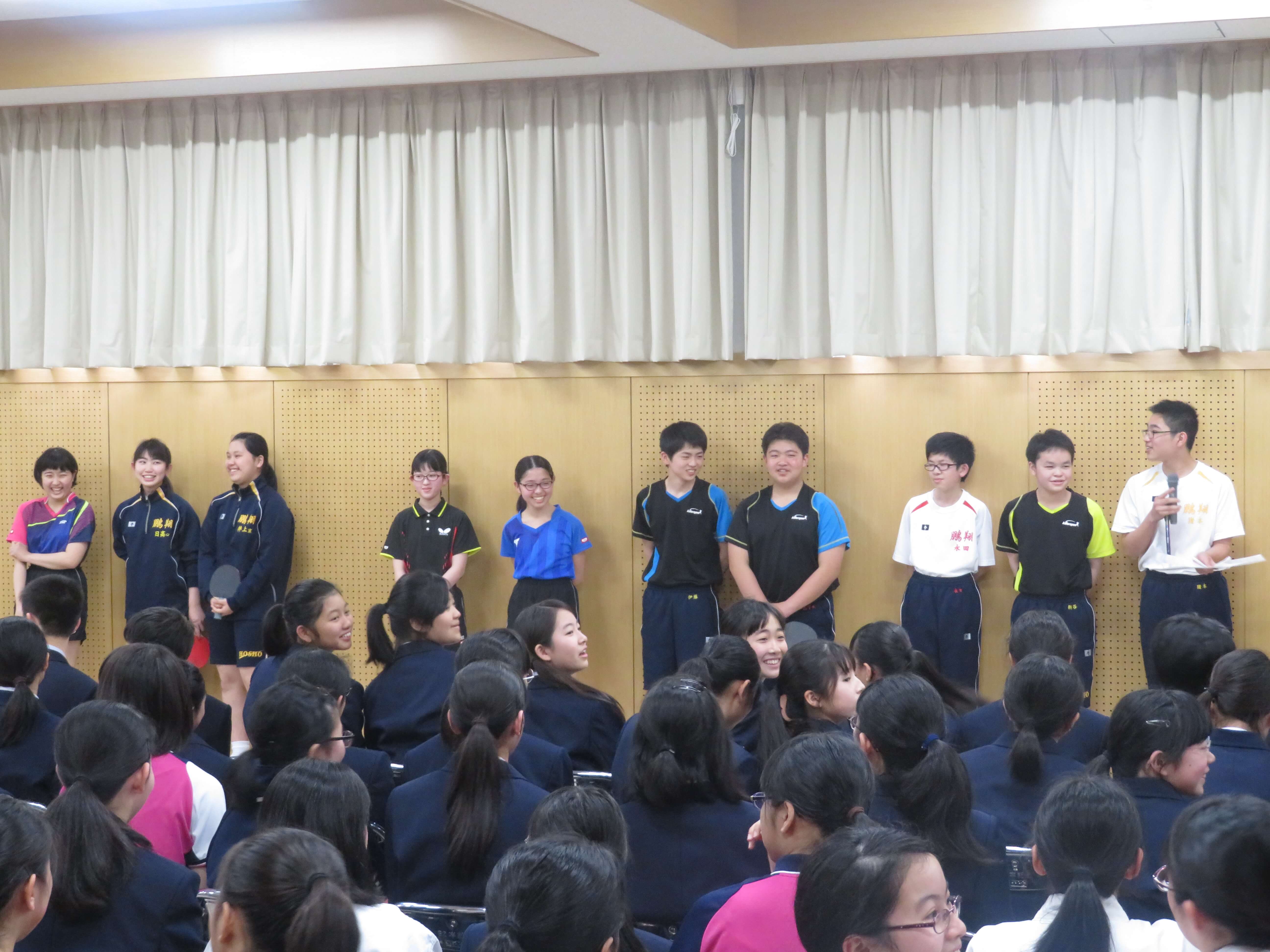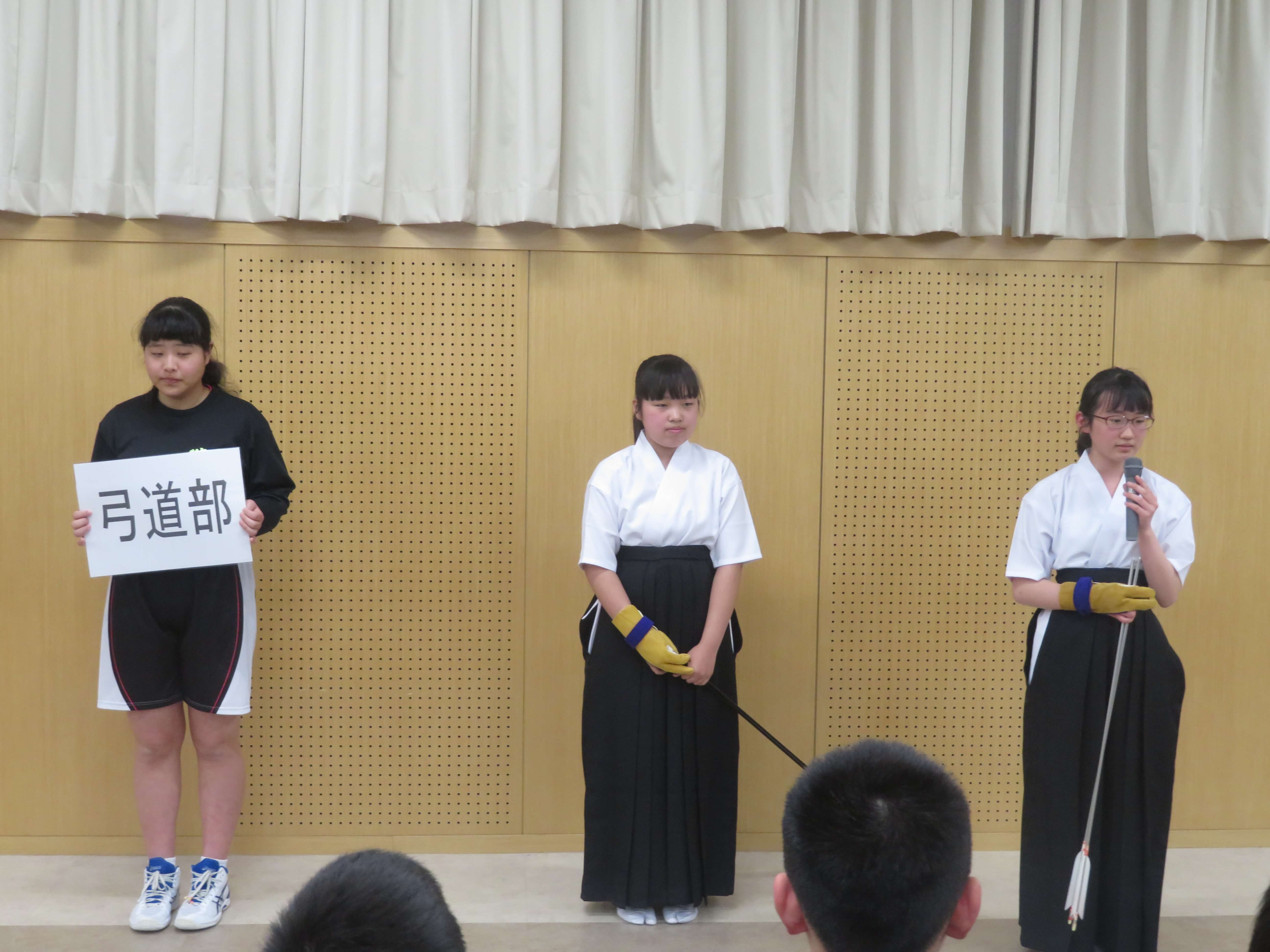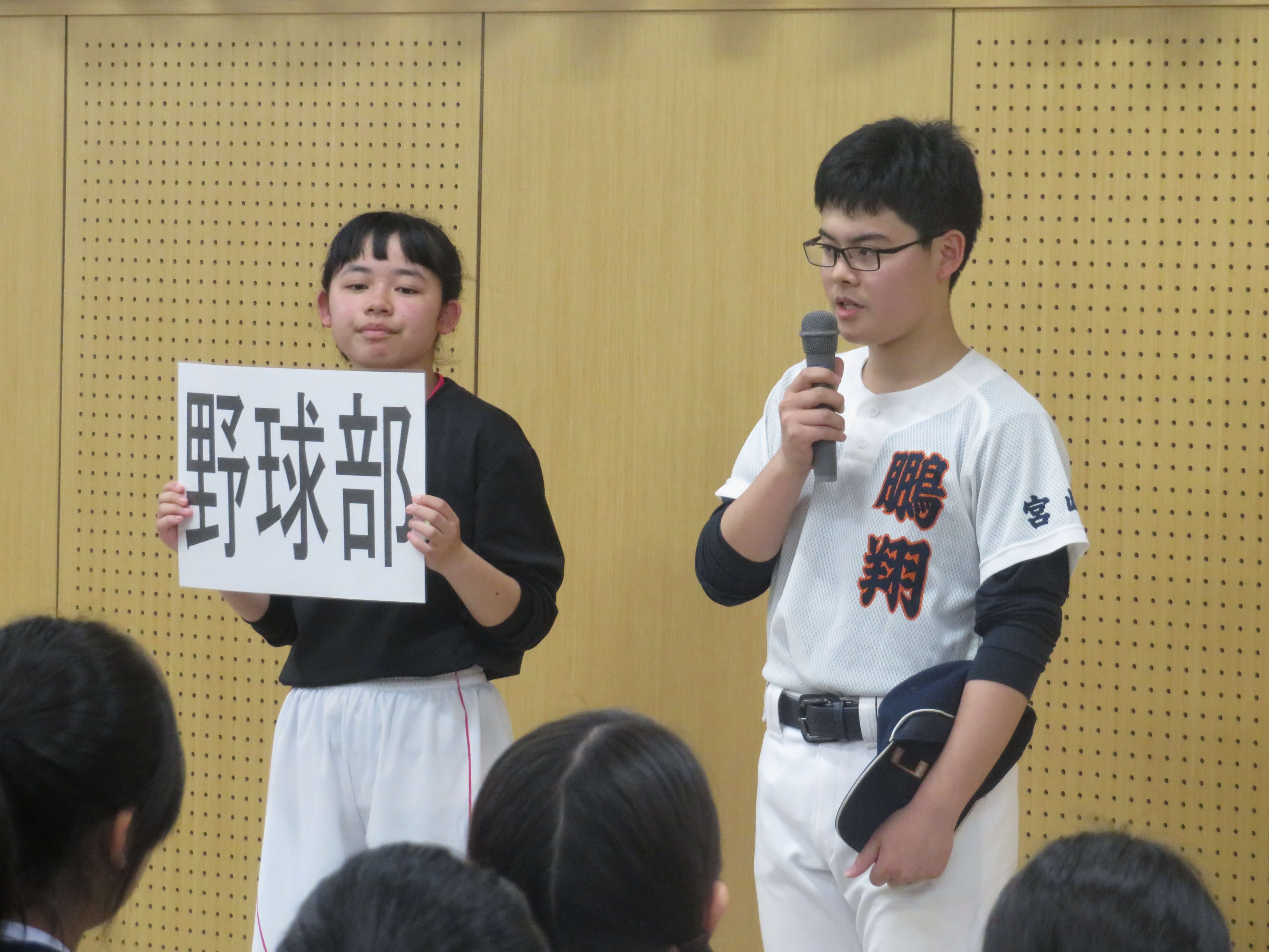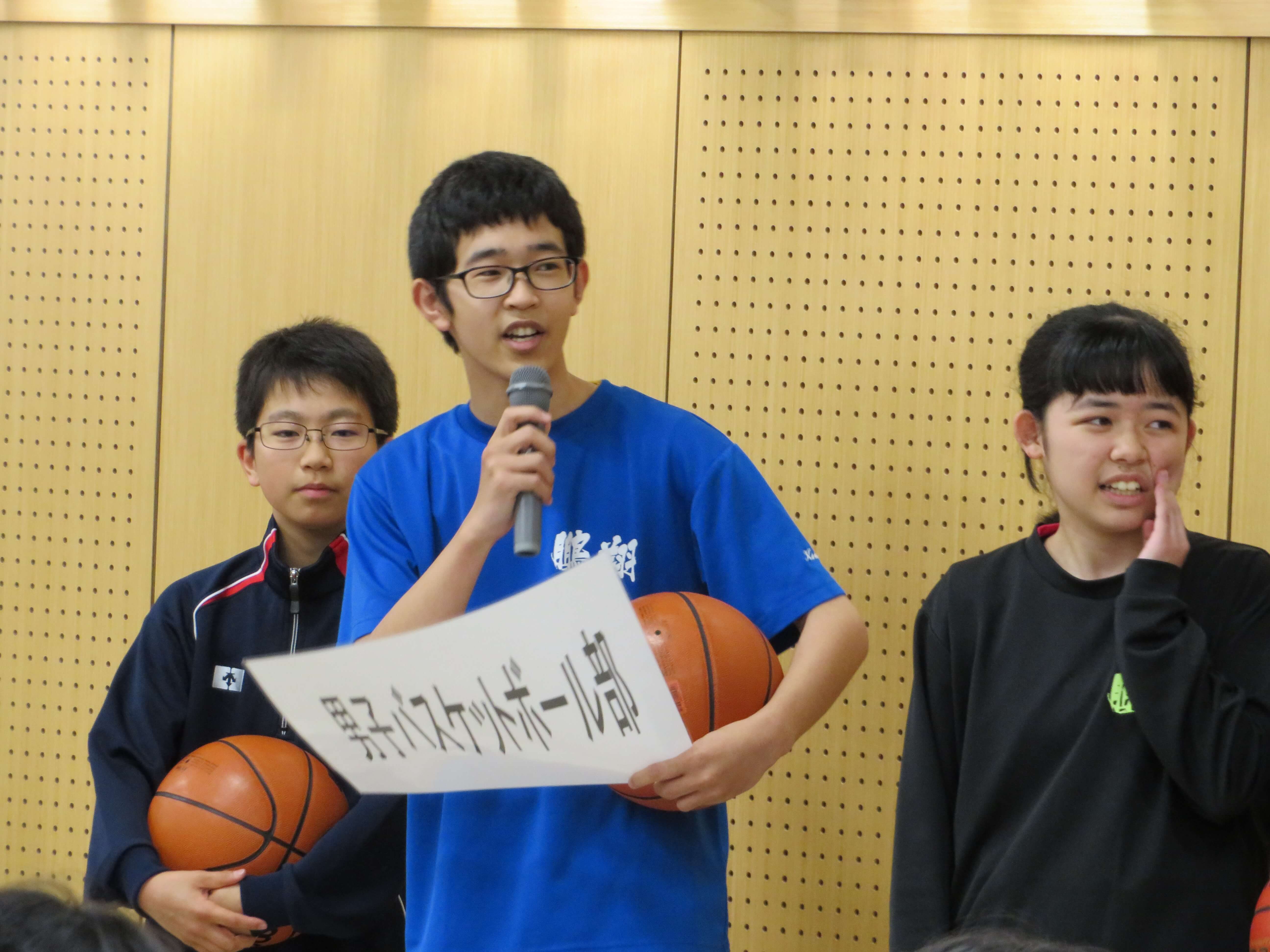 J1生は今日の部活動紹介を見たうえで、宿泊研修後、2回の体験部活動を経て、正式な入部、部活動という流れになります。J2・J3生も中体連や文化発表会に向け、取組む姿勢がより強くなる時期です。精一杯頑張りましょう。