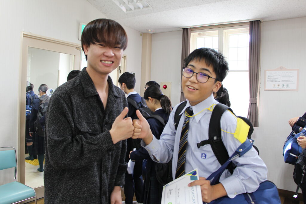 グローバルヴィレッジでの2日目のプログラムのラスト、スピーチの作成、準備を行い、発表を行いました。生徒のみなさんが、今回の研修を通じて学んだことを、今後の学校生活にいかせるよう、そしてこれからの将来について考えることのできるきっかけとなればと思います。生徒のみなさん、積極的にグローバルリーダーのみなさんと会話し、最後の記念撮影、お別れの直前まで大いに盛り上がり、楽しんでいました!