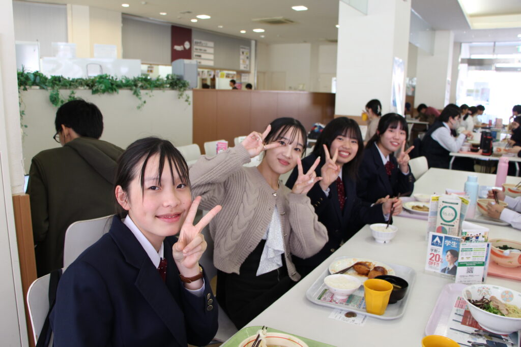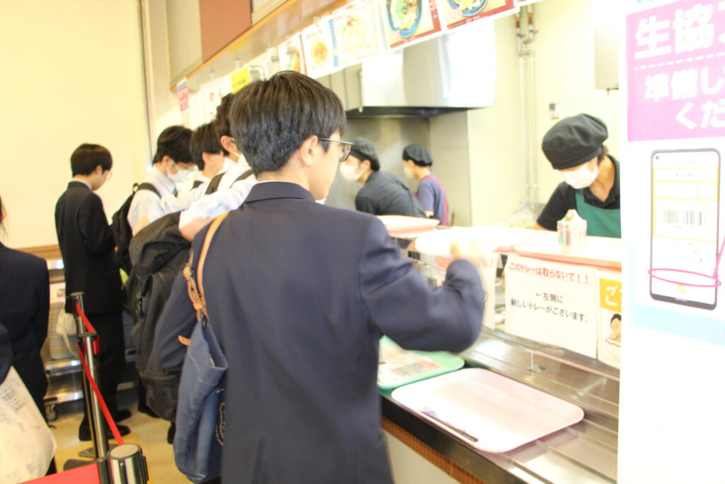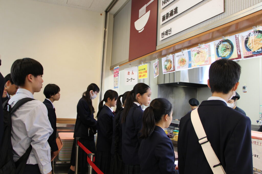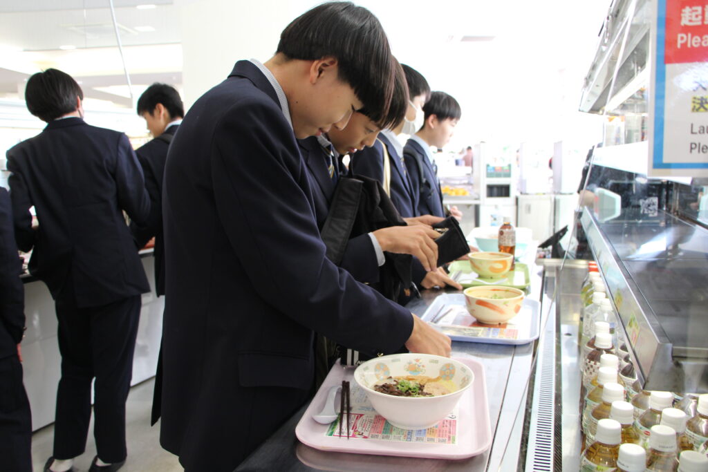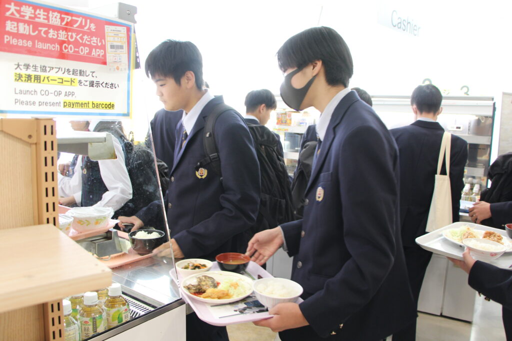 次は九州大学伊都キャンパスの見学です。学食で昼食をとりました。大学生と一緒に並んで注文したりと、緊張したとは思いますが、美味しそうに食べていました。