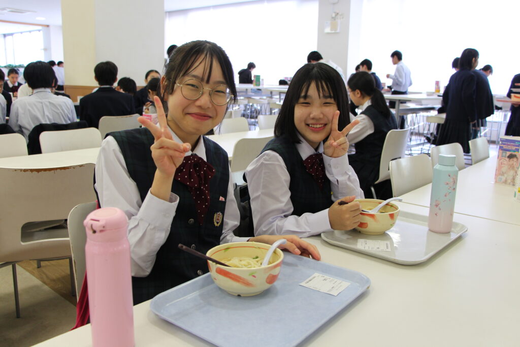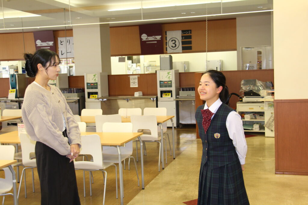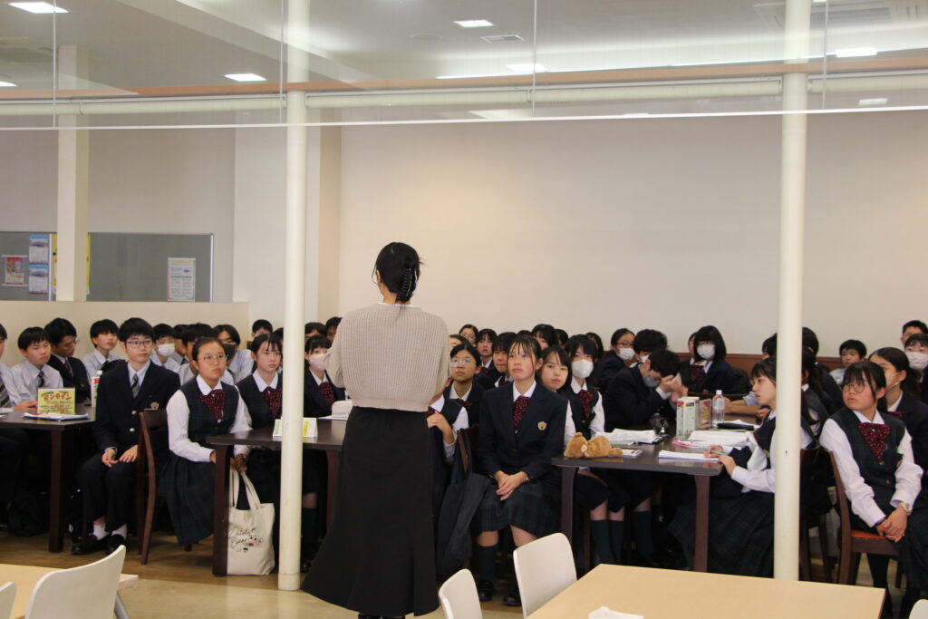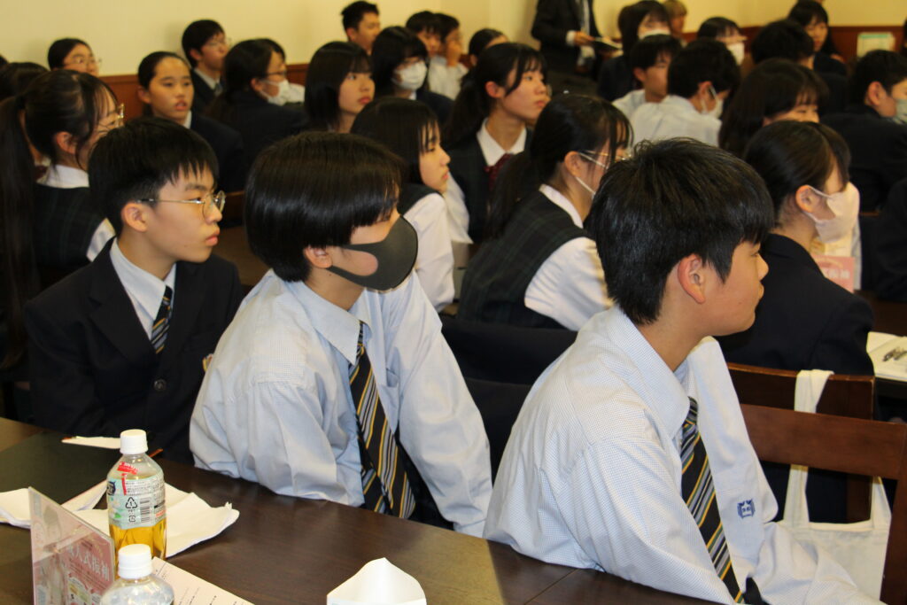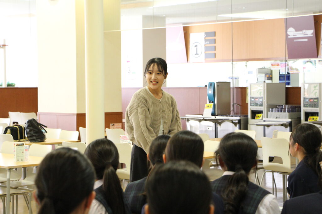 食事のあとは鵬翔中高一貫の14期生で九州大学法学部4年の日高優利さんからJ2生に向けて応援のメッセージを送っていただきました。心温まるメッセージに生徒たちは真剣な眼差しで聞いていました。