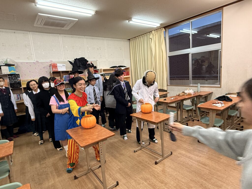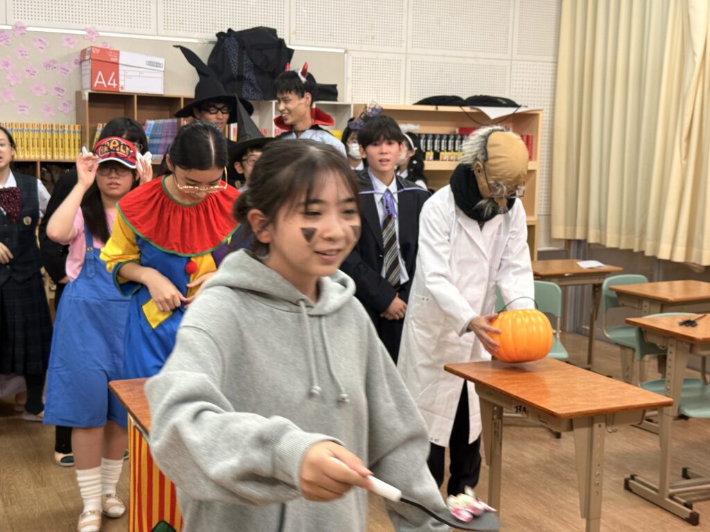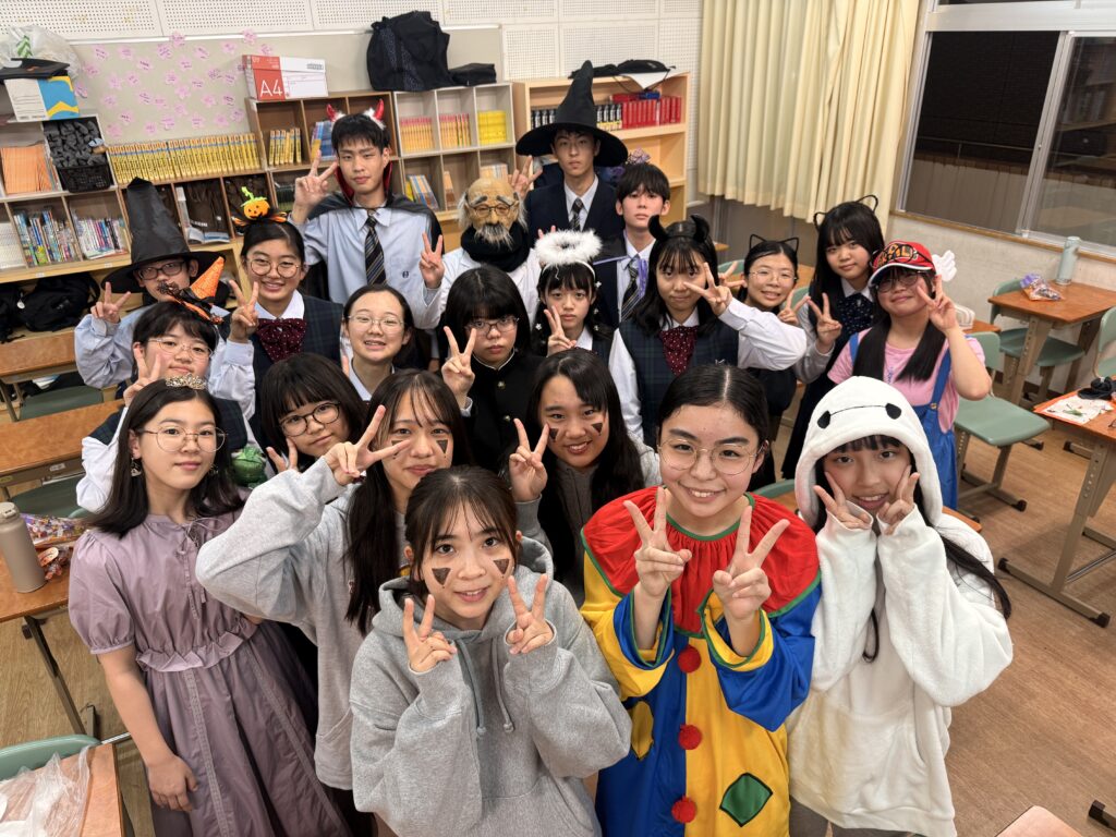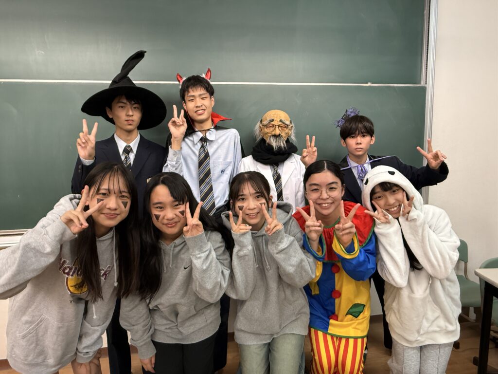 30日(木)に毎年恒例のHalloween PartyをESS部で実施しました。魔法使いやピエロ、アニメキャラクターの仮装をして参加をしました。