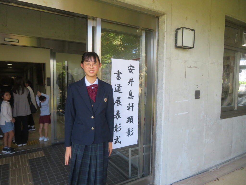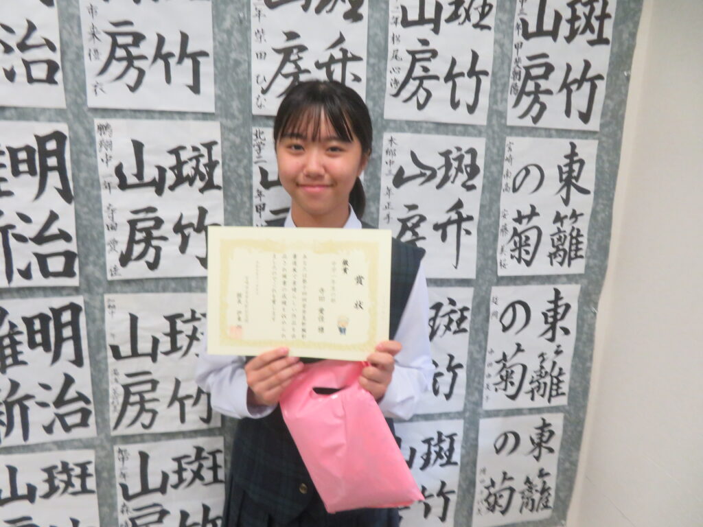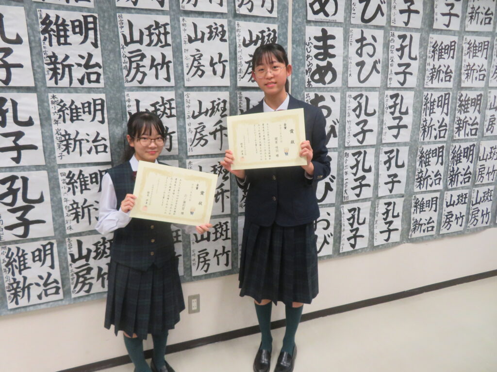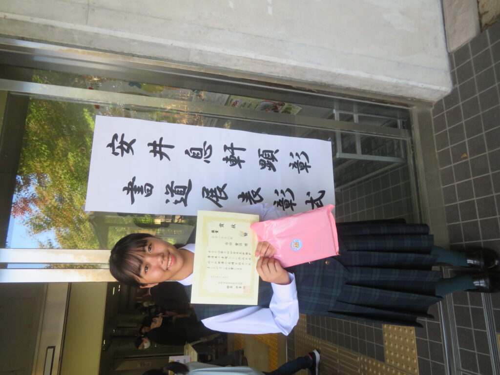 昨日、安井息軒顕彰書道展の表彰式が、安井息軒記念館(清武町)にて行われました。未就学児、小学生、中学生、高校生、一般のそれぞれの部に、合計で870点ほどの応募があったようですが、それに本校から13名の皆さんが入賞しました。以下に紹介します。