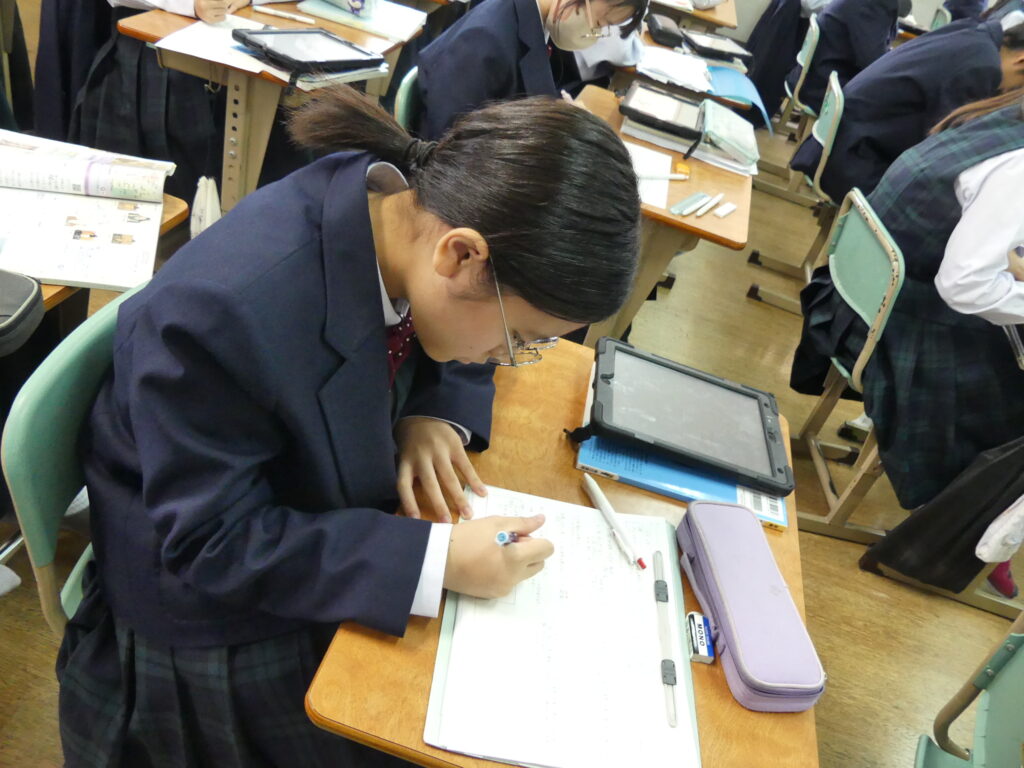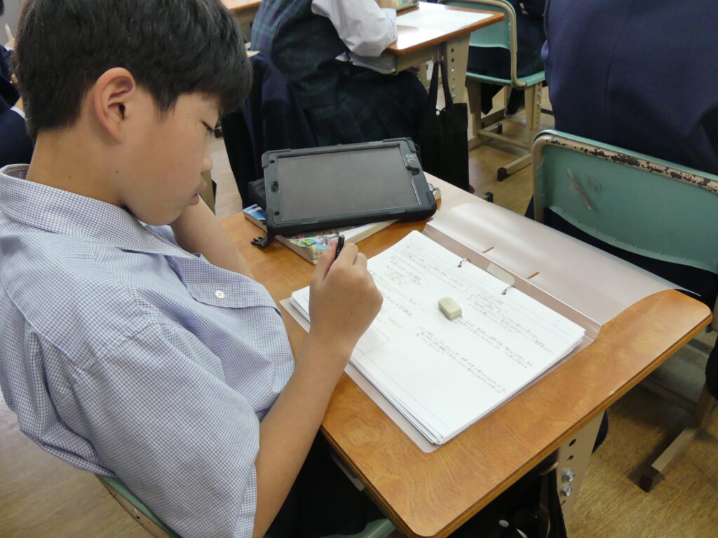 「なぜ、足利義視(実弟)VS足利義尚(息子)の戦いになったのか?」「自分ならどちらに将軍の座をわたすだろうか?」など教科書やタブレットを使い、調べ学習をし、意見交換をしていました。