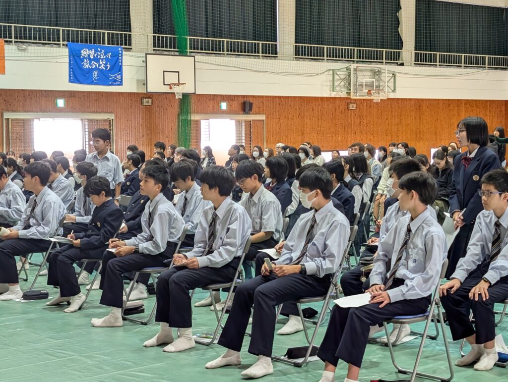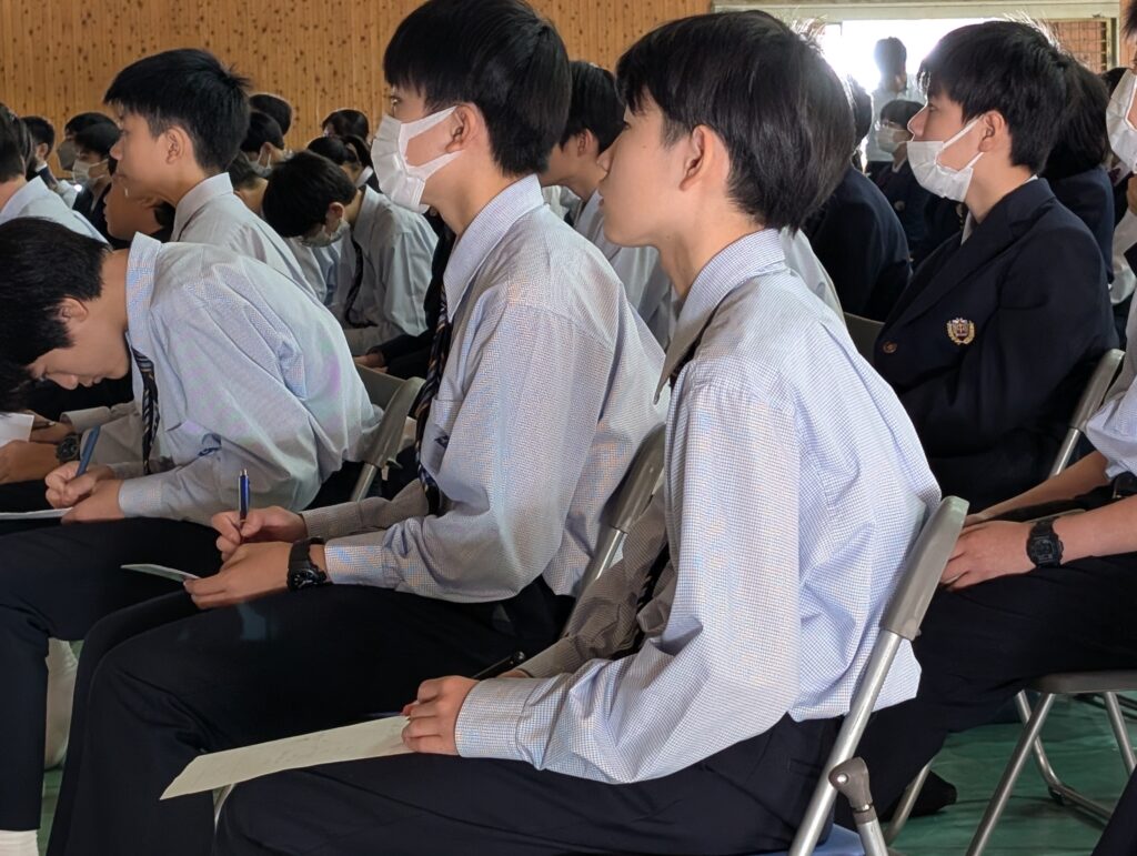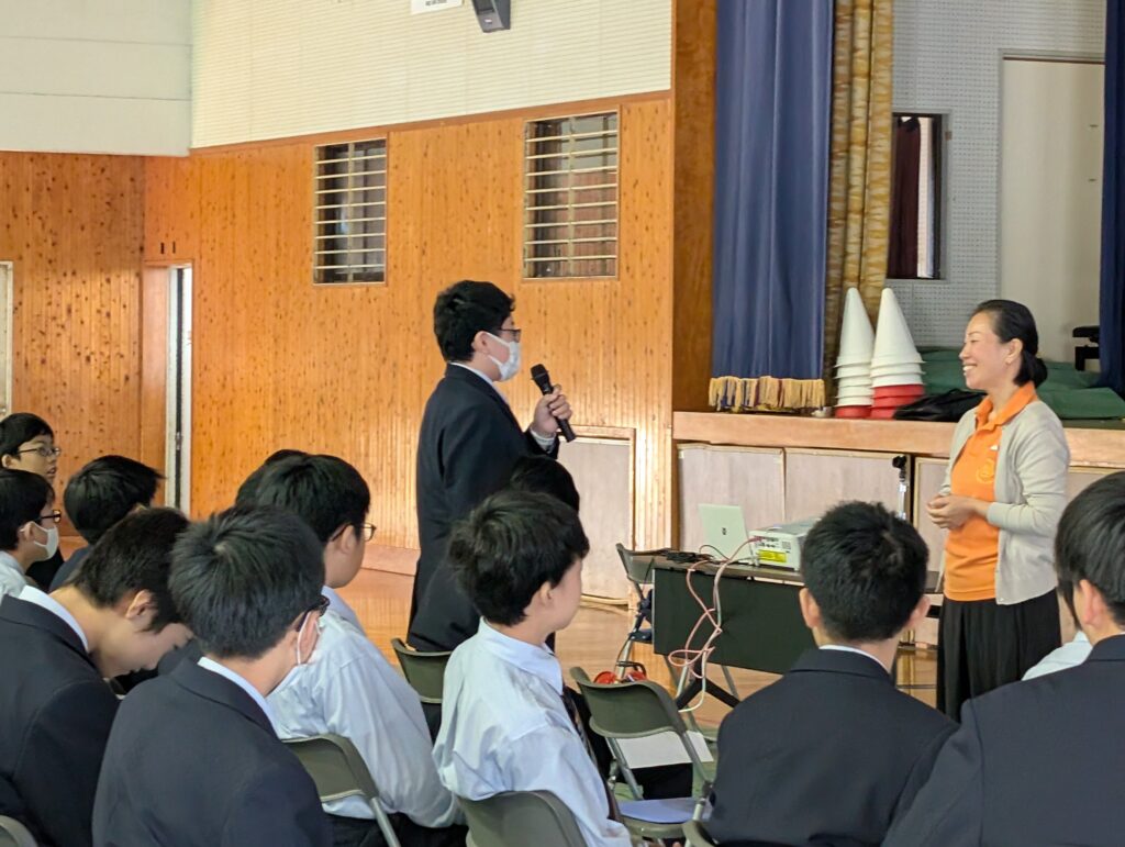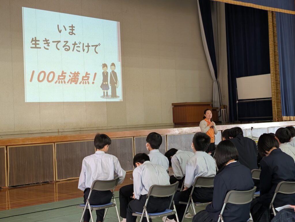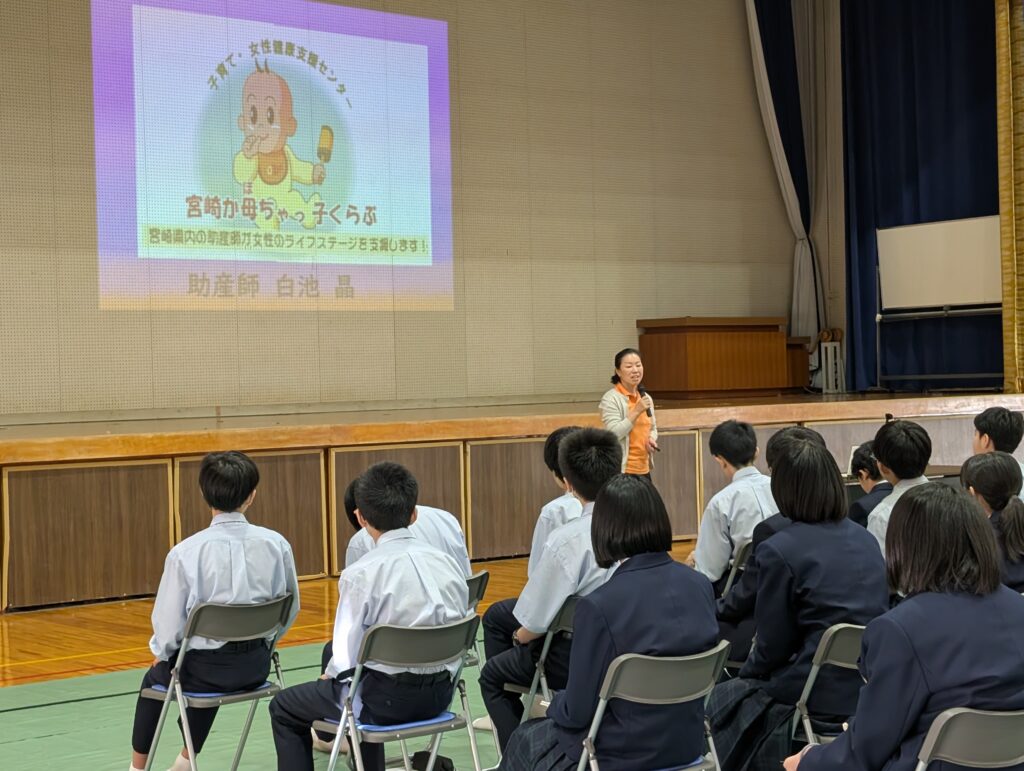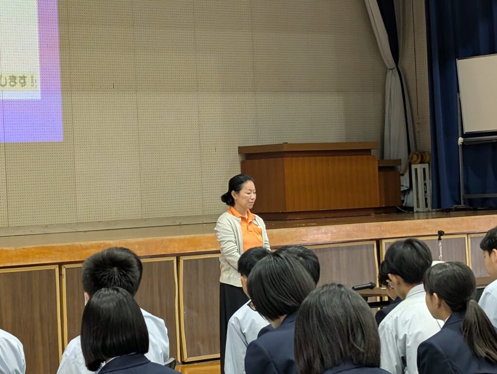 今日は、先週行われた保健講話のJ1生の様子をお届けします。 宮崎か母ちゃっ子くらぶの白池先生が講話をしてくださいました。