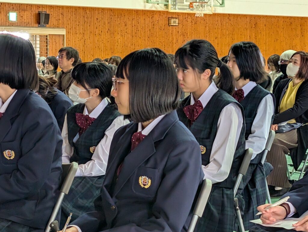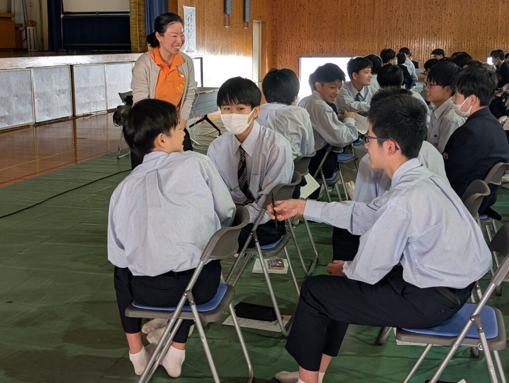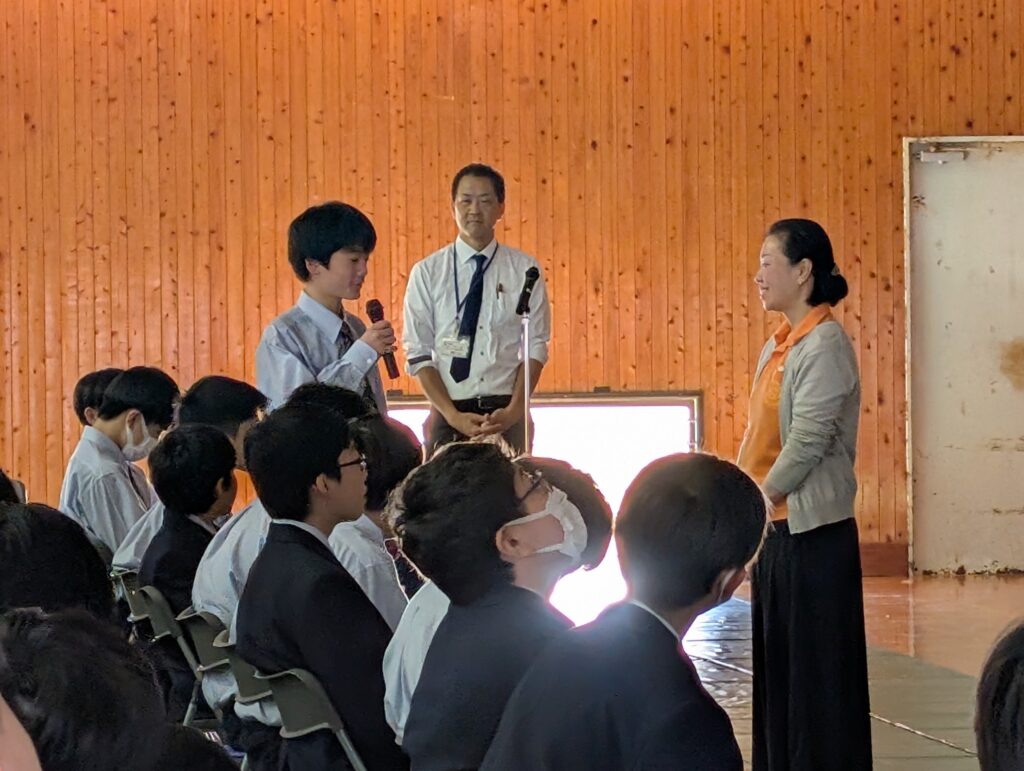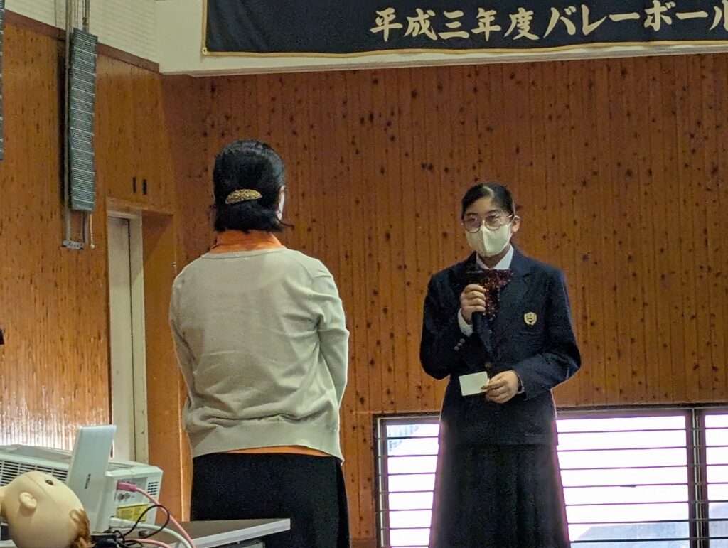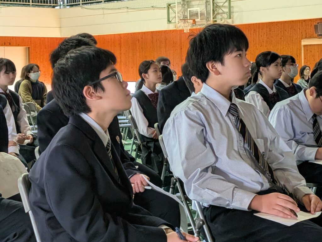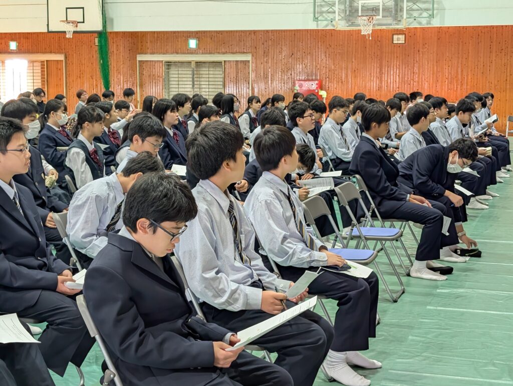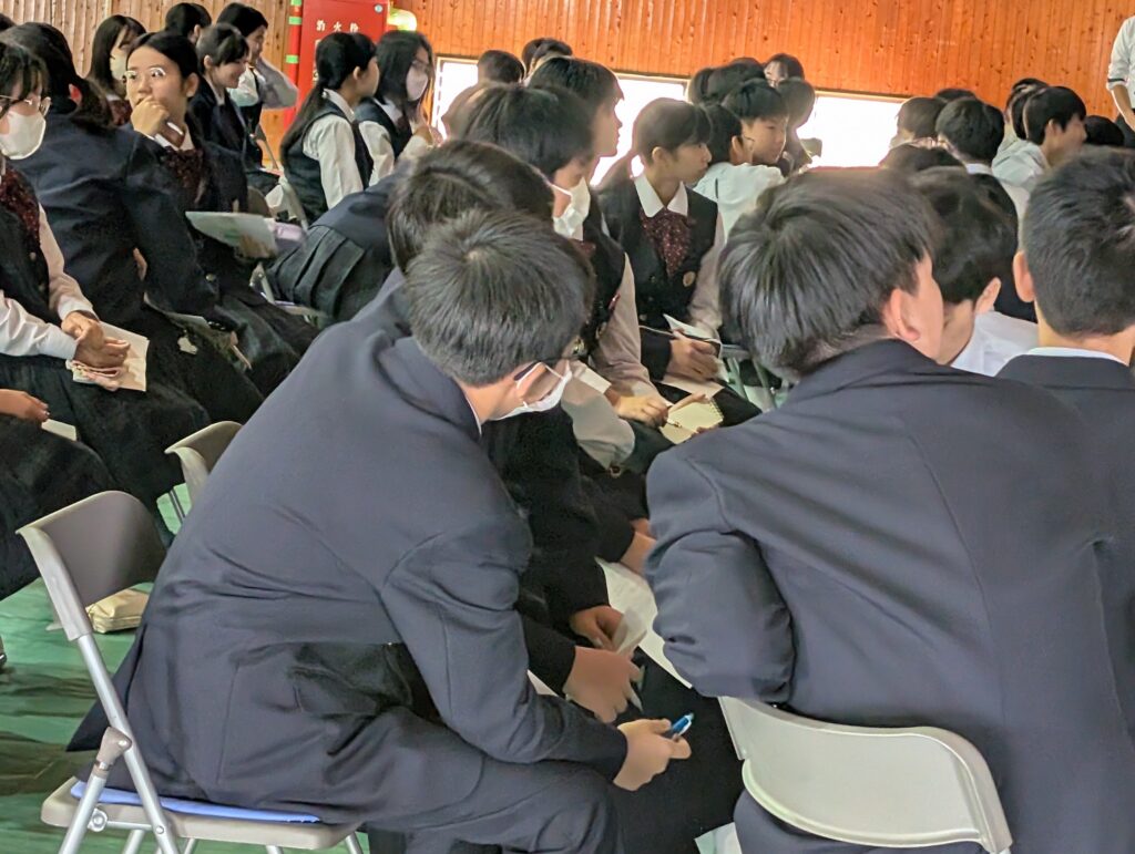 今日は、先週行われた保健講話のJ1生の様子をお届けします。 宮崎か母ちゃっ子くらぶの白池先生が講話をしてくださいました。