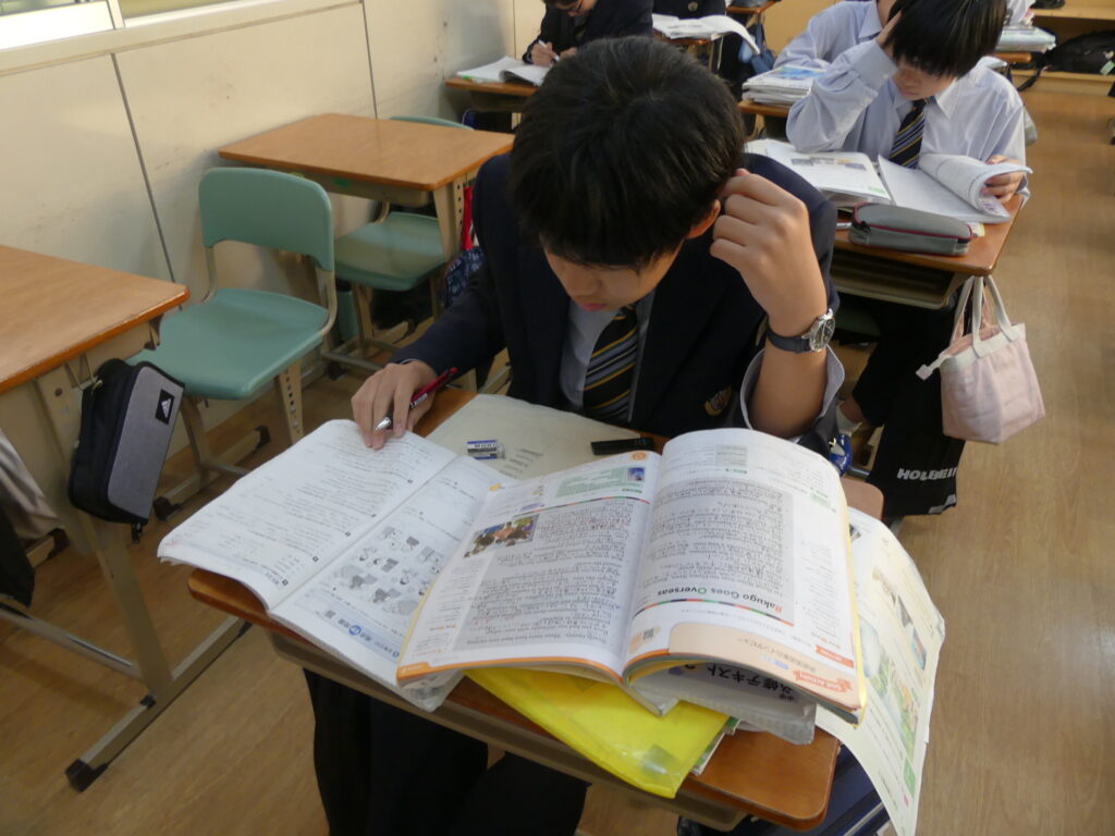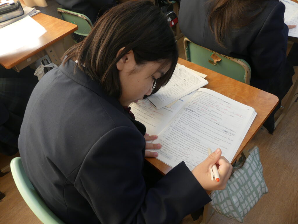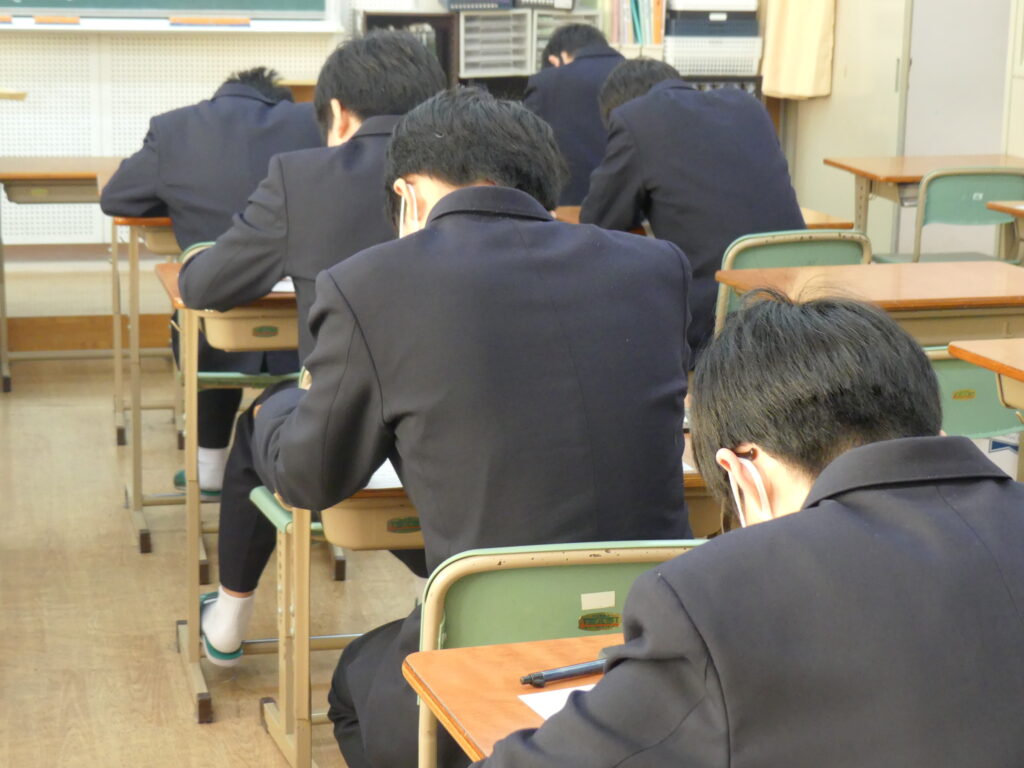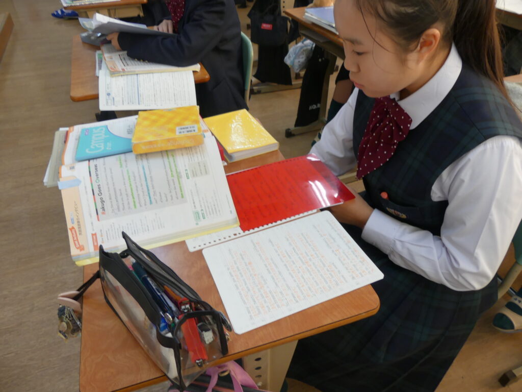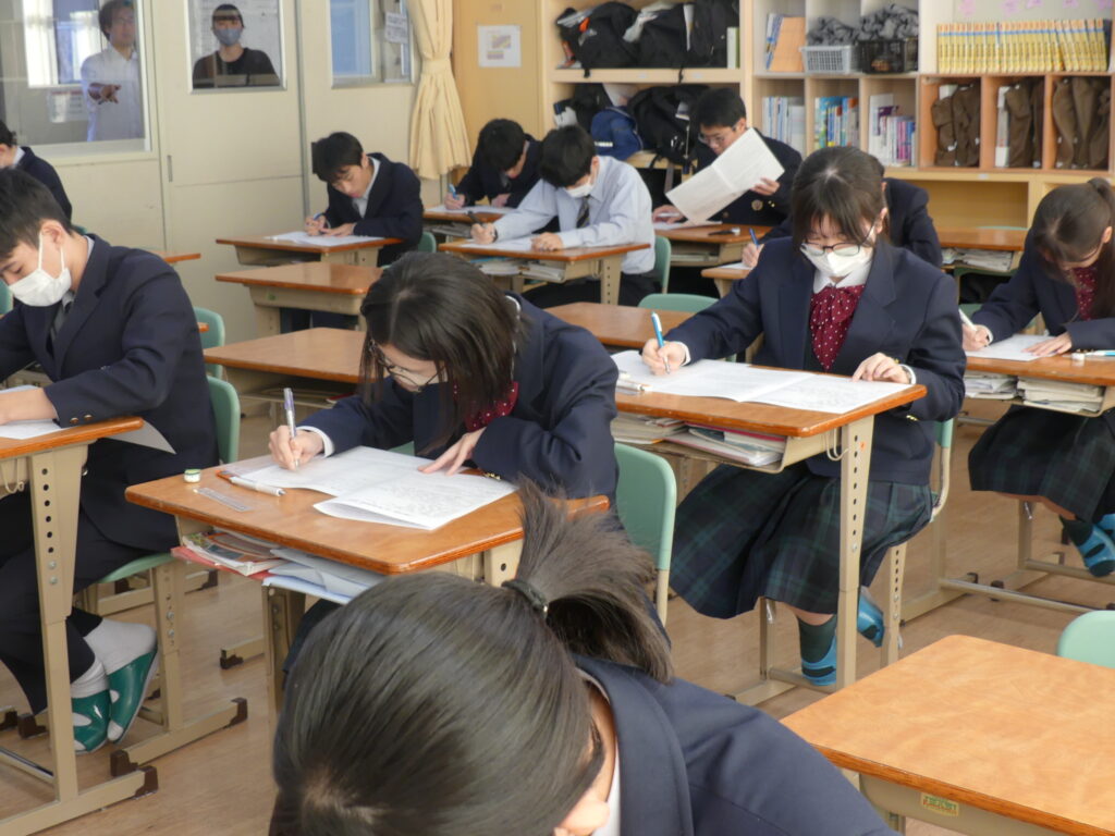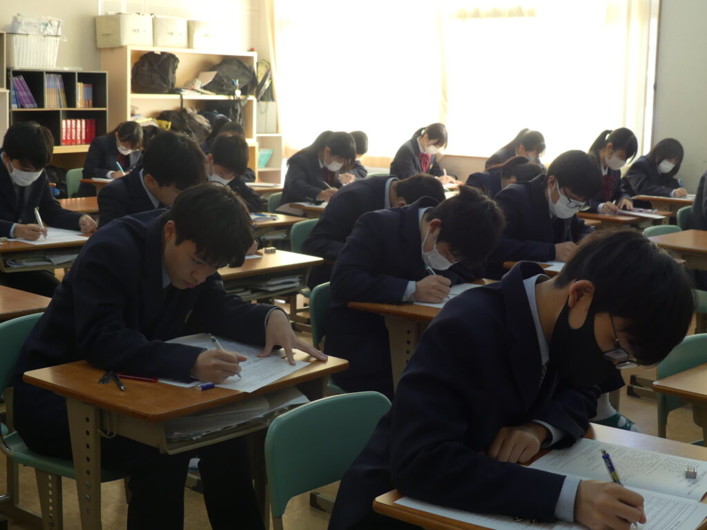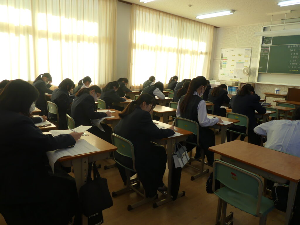 第4回定期考査2日目です。昨日より気温が下がった朝でしたが、感染症予防のため窓を開け喚起を十分に行っています。自学の時間に教室を回ってみると、ノートにたくさんの書き込みをしていたり、シートで答えを確認したりと、定期考査に向き合っている姿がとてもたくましく感じました。