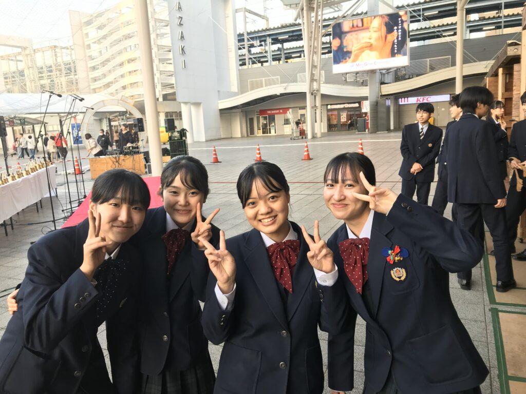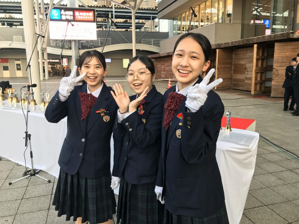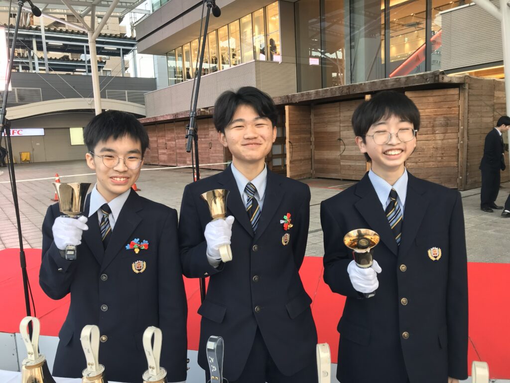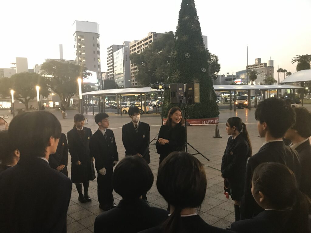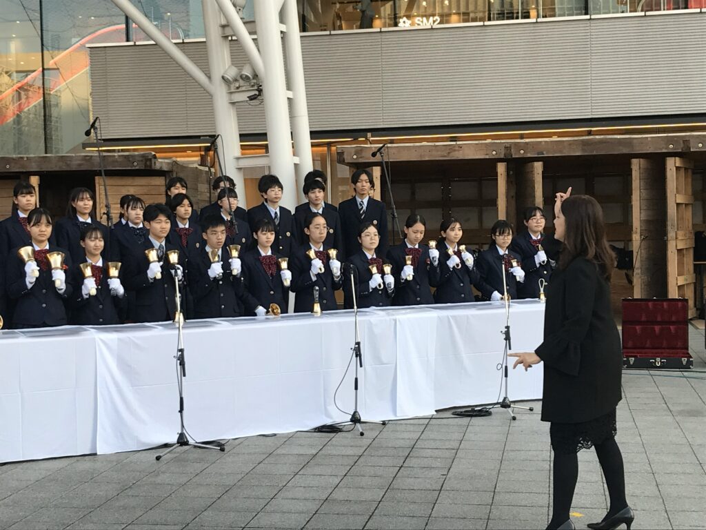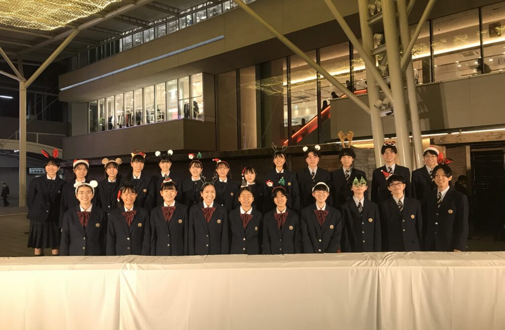 本日は、【鵬翔中学校高等学校の合唱部】と【鵬翔中ハンドベルチーム】が11月29日(土)にアミュ広場イルミネーション点灯式に参加した一部の様子を紹介します。