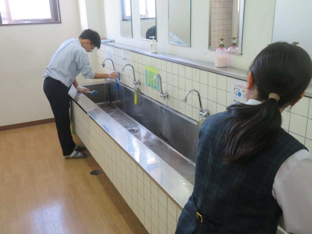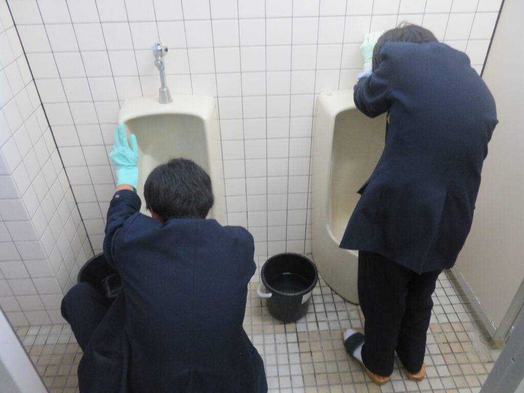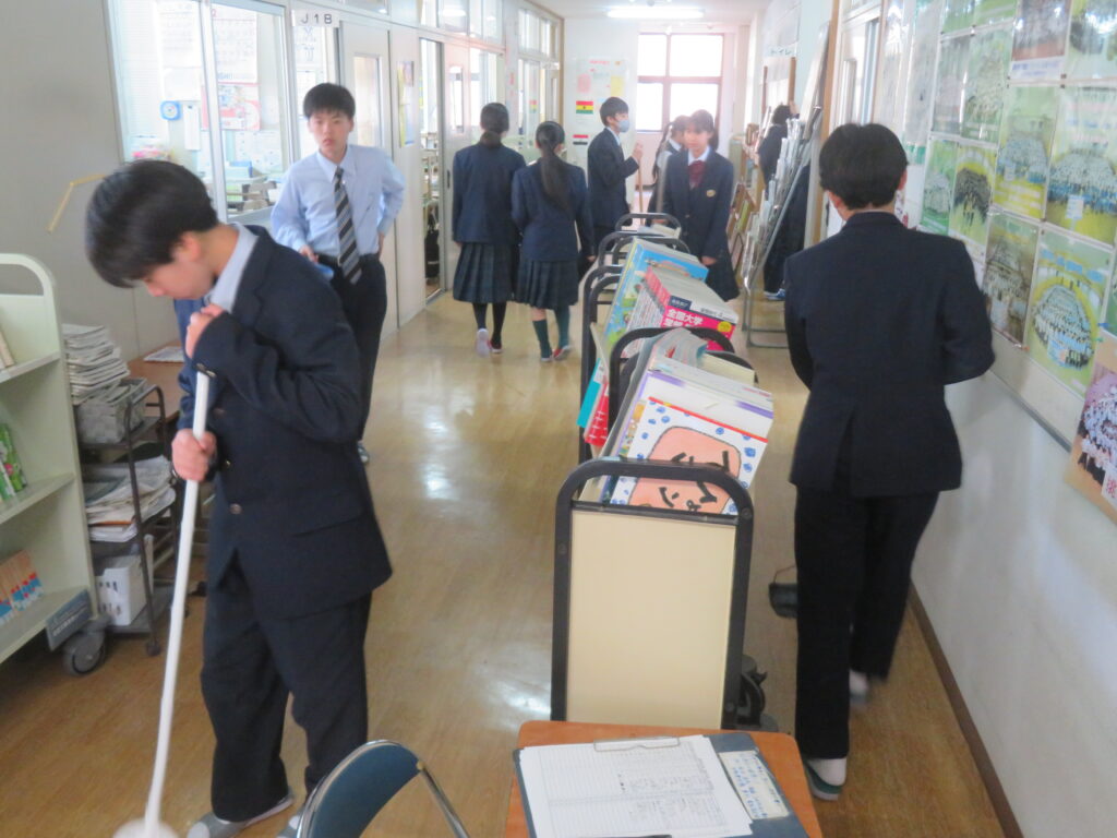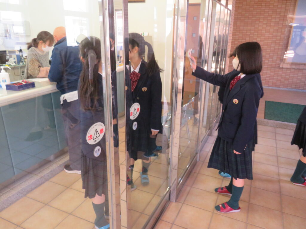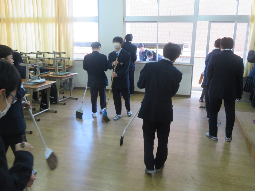 日差しがある日はまだ暖かいですが、曇りの日や風が強い日はやはり冬の寒さを痛感しますね。今日は、毎日の掃除の様子です。鵬翔では、昼休みの後の15分間が清掃の時間です。清掃の後はファミリーで集まり、ファミリーのチューターの先生からお話があり解散します。今日も外回り担当の生徒たちは寒そうにしながら自分たちに割り当てられた場所を丁寧に掃除していました。