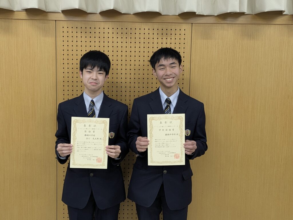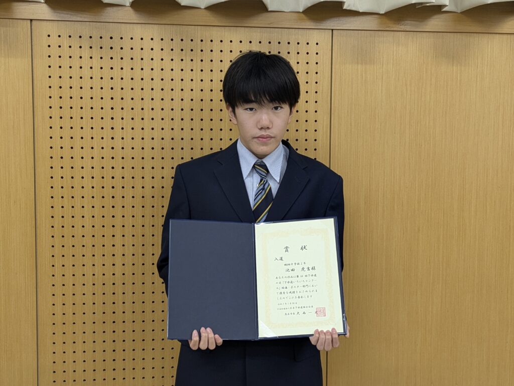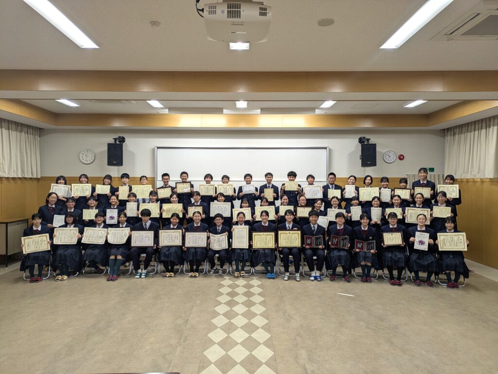 さて、本日のタイトル「よくやった!鵬翔生🏆」ですが、夏休みに多くの作品を出品してきました。9月以降出品作品の結果通知を受け、ようやくお披露目できましたが、実に86名の受賞がありました。本当によくやってくれました!