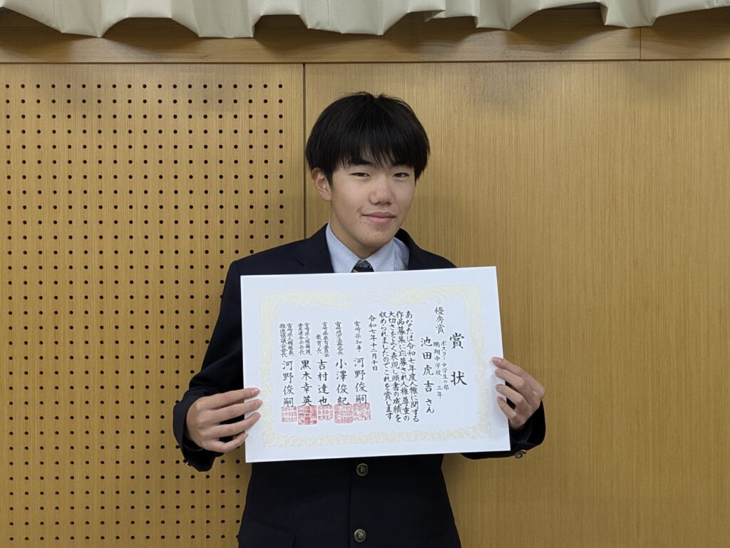 〇 宮崎市佳作 J1A 蕨野 瑞季さん(恒久小出身)