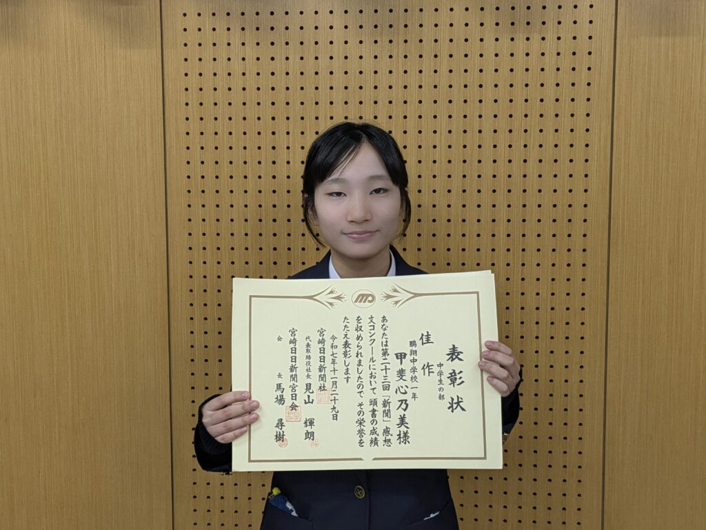 〇 佳作 J1B 甲斐 心乃美さん(都城南小出身)